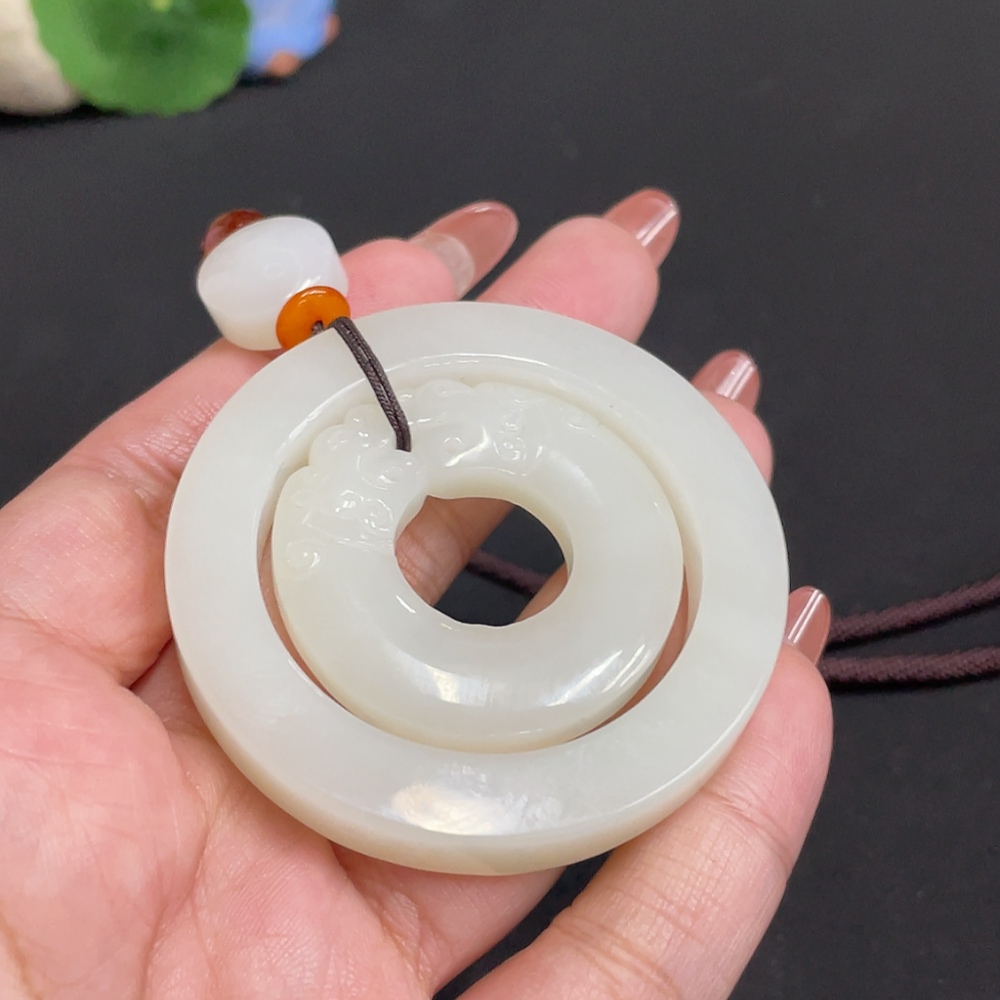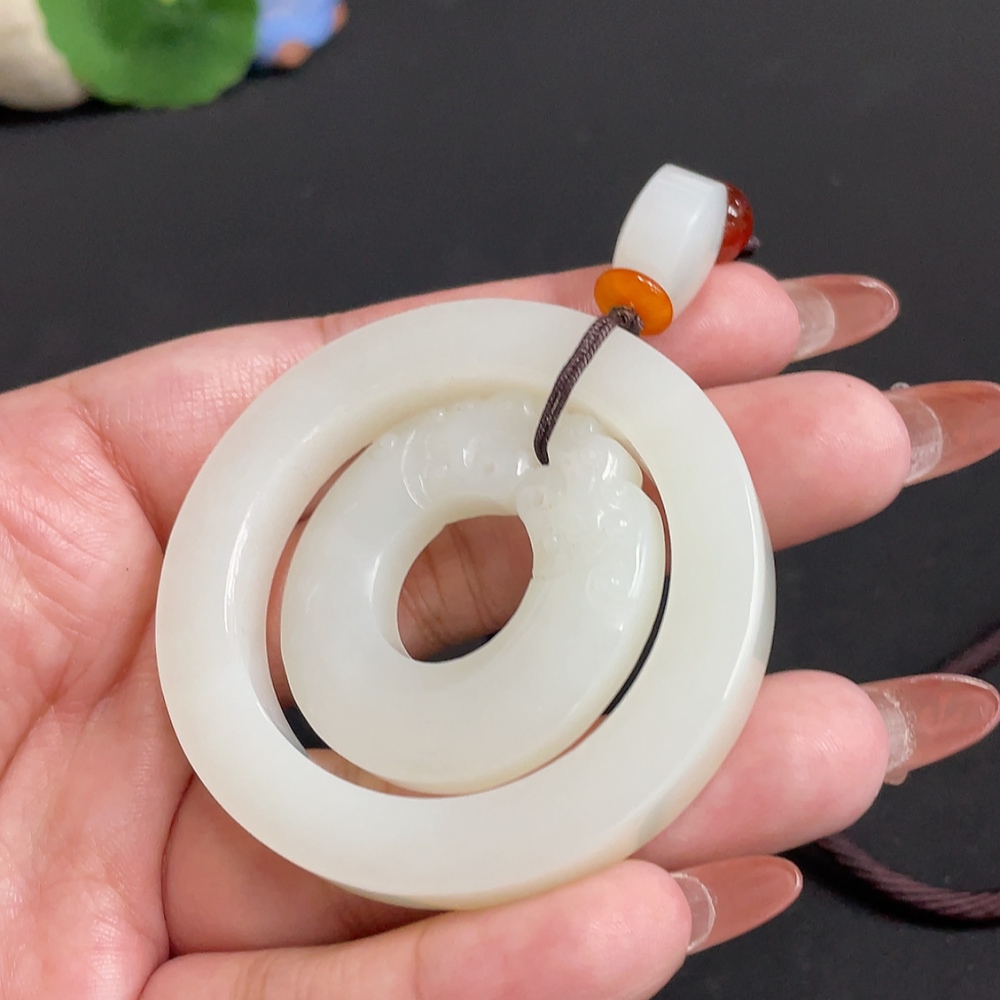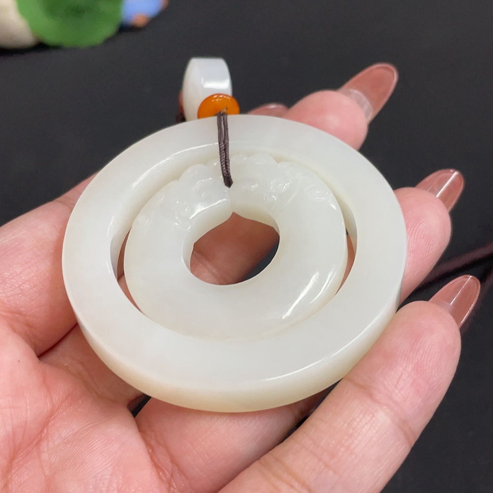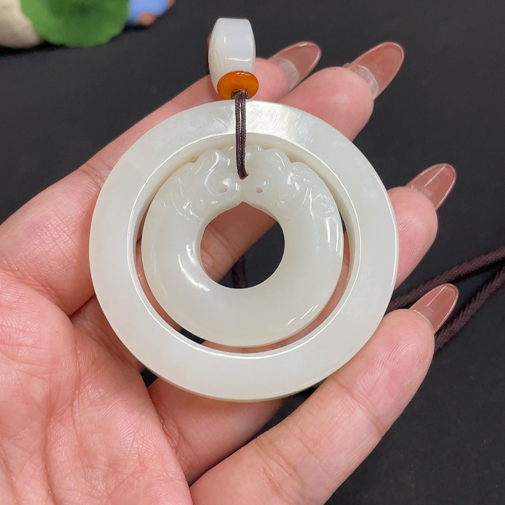 Hetian Jade Pendant Antique Style Total Weight Approx. [Including Rope] 55.4g Beads Not Hetian Jade