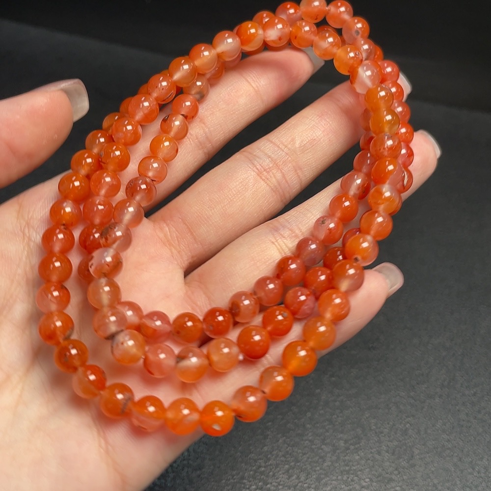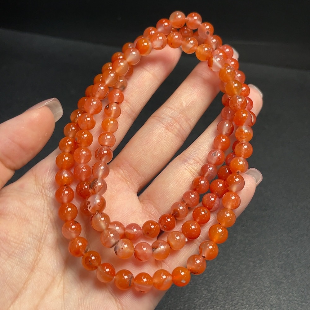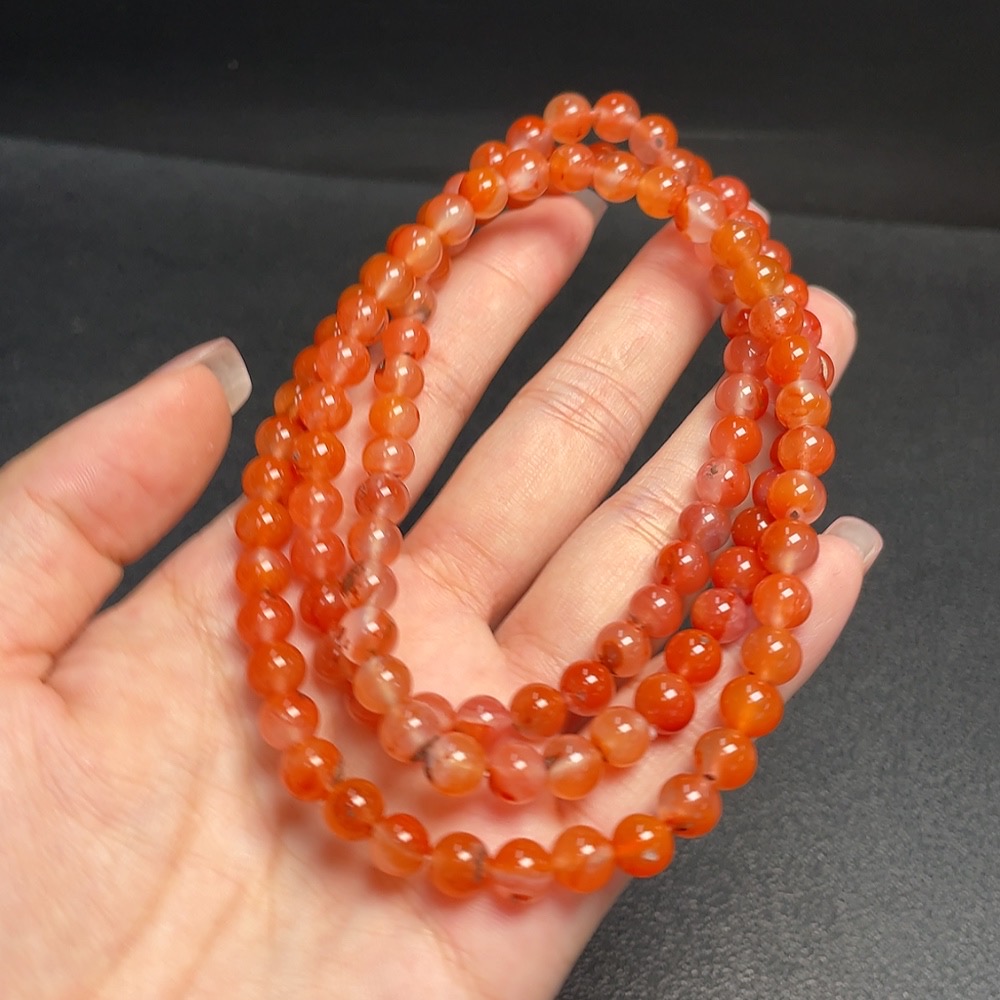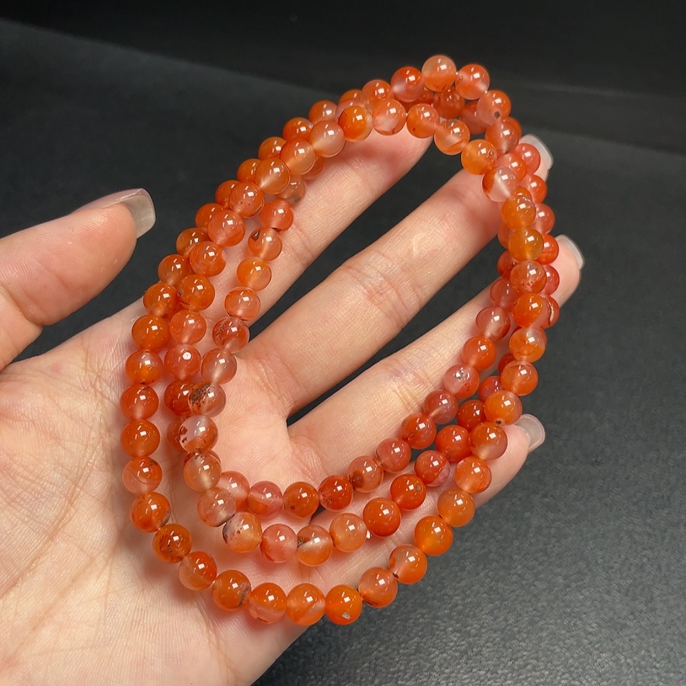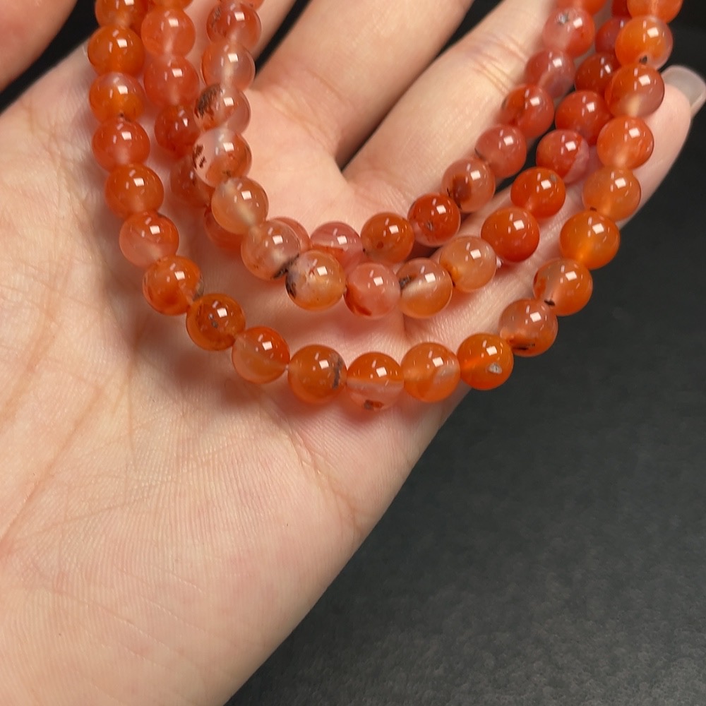 South Red Agate Bead Strand with Visible Organic Matter, Total Weight Approx. 45g, Size About 6.8mm