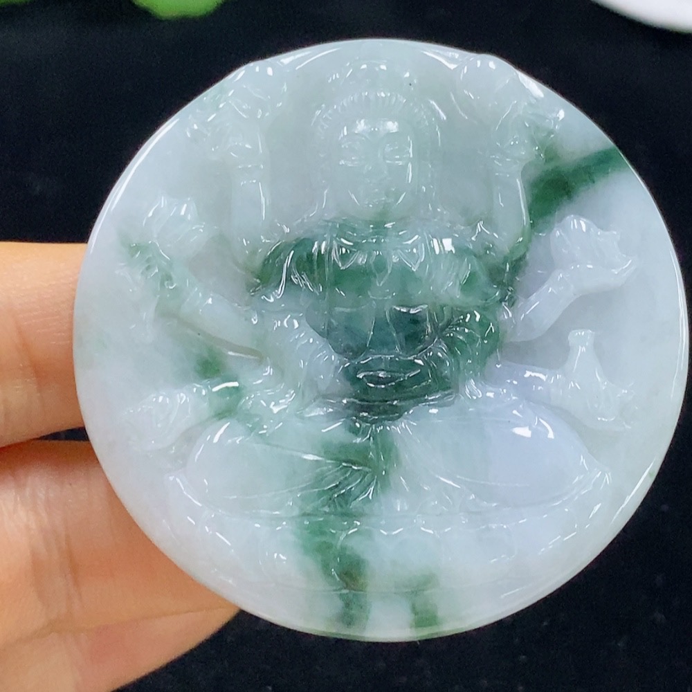 Jadeite Thousand-Hand Guanyin Pendant Total weight approximately 26g