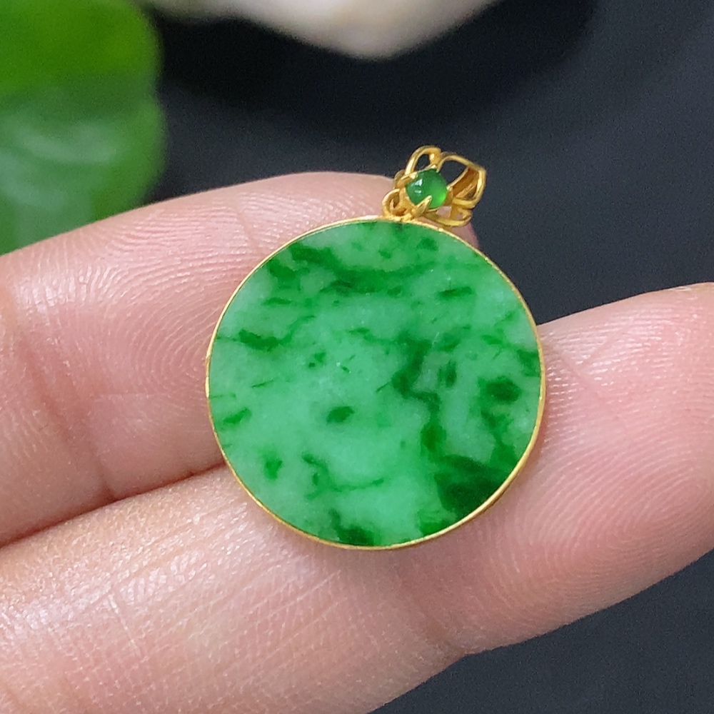 Jadeite Inlaid Plain Pendant 18k with Other Mineral Components Total Weight Approximately 0.89g