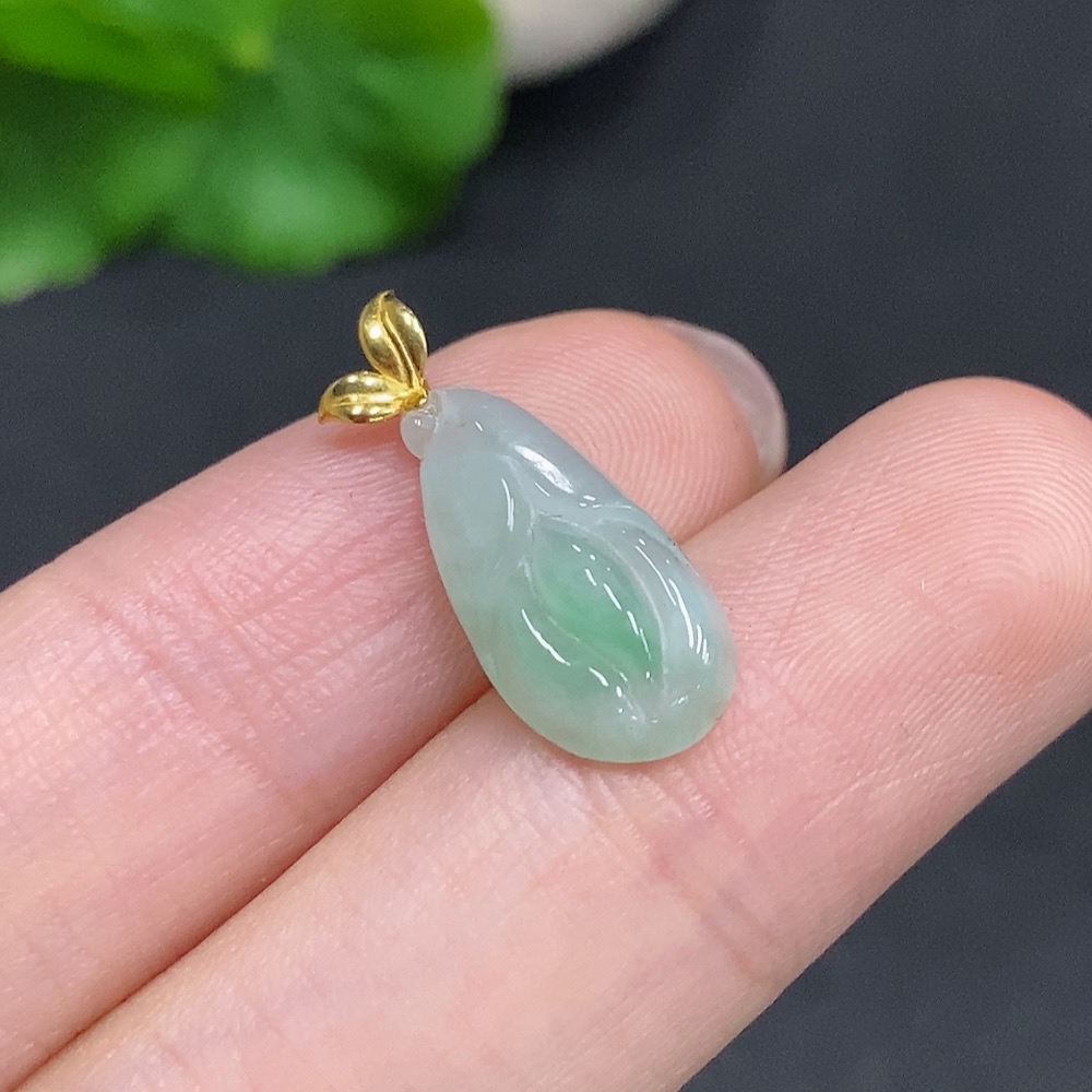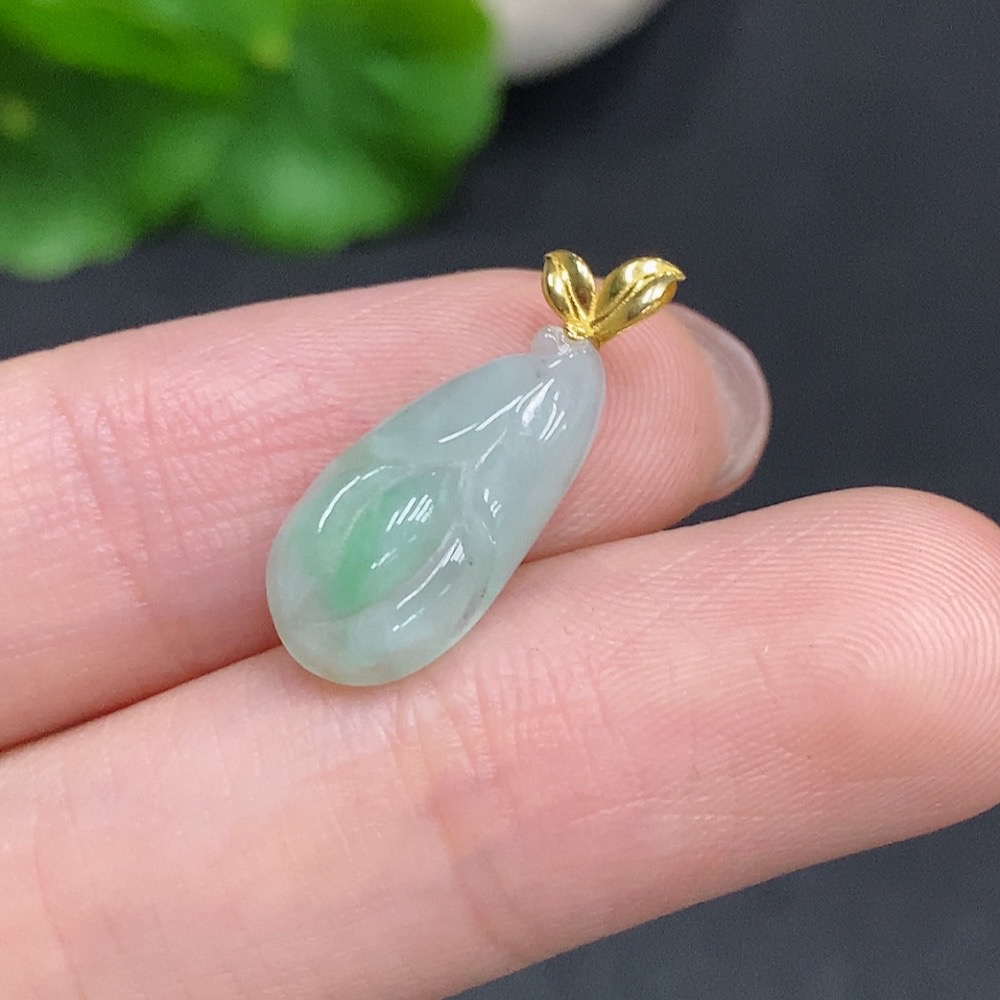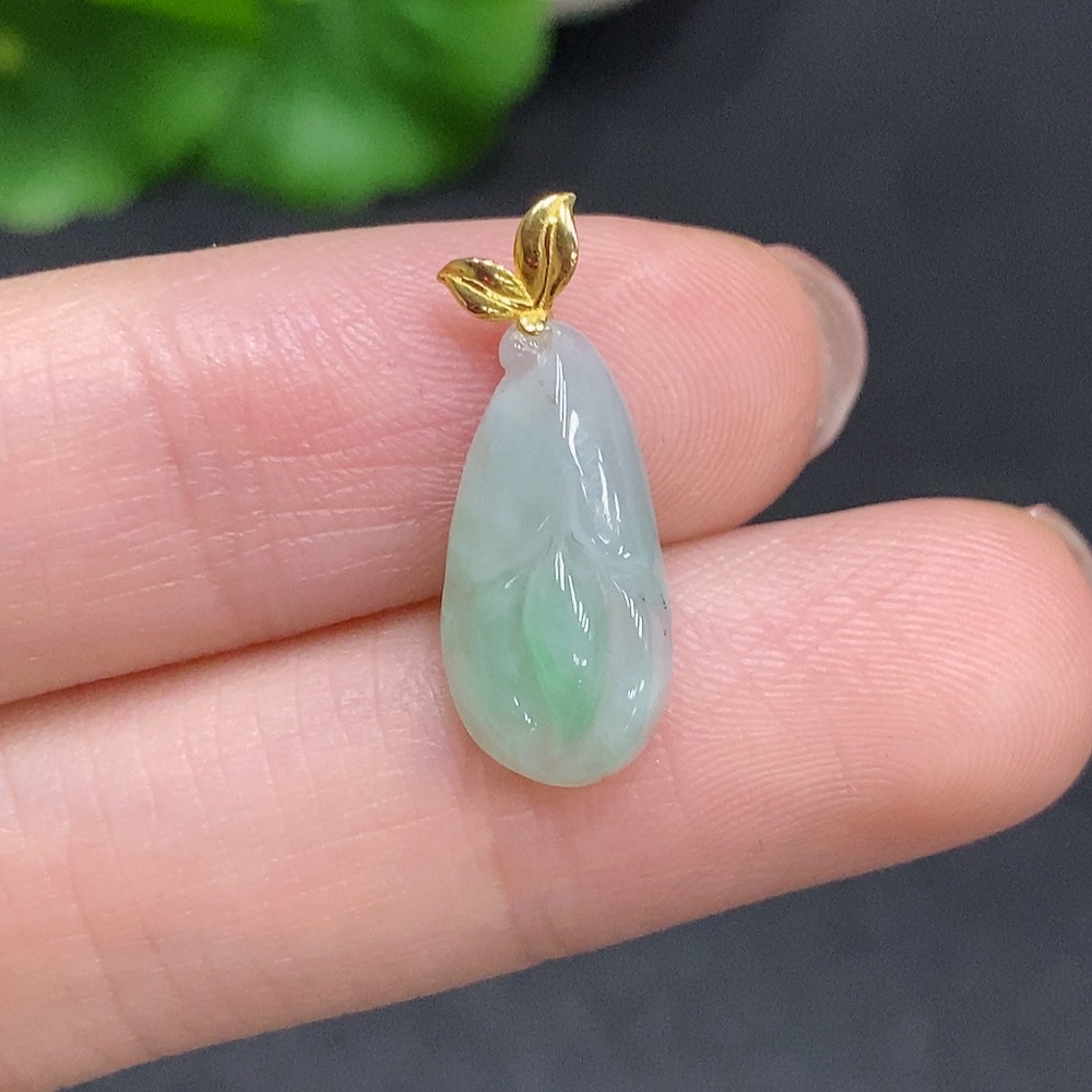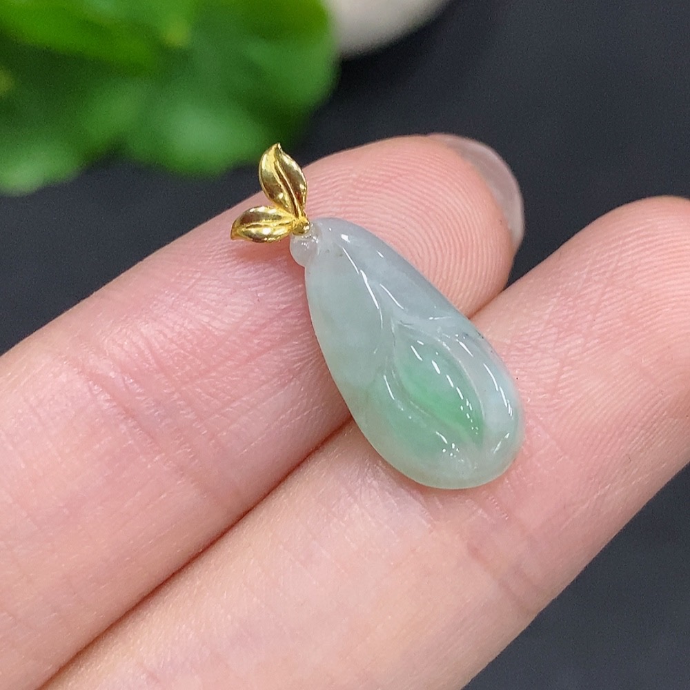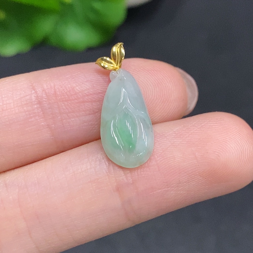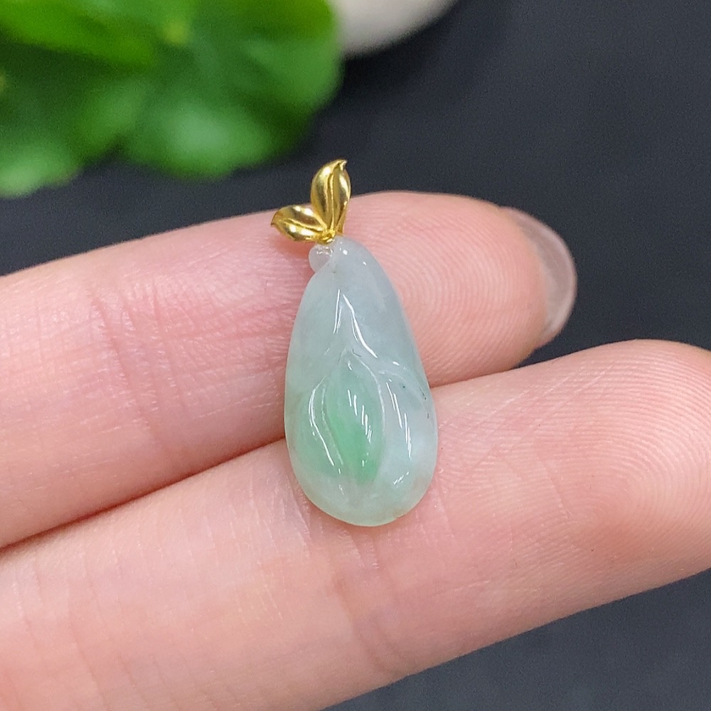 Jadeite Magnolia Pendant with 18K Gold Bail, Total Weight Approx. 1g