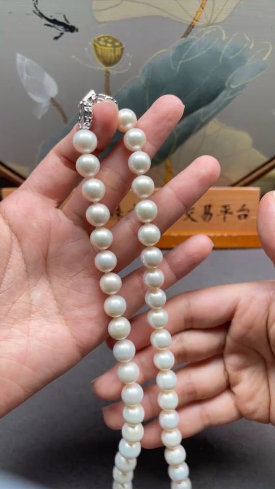 Pearl bead necklace, non-gold, total weight approximately 57.22g, bead diameter about 9.5mm