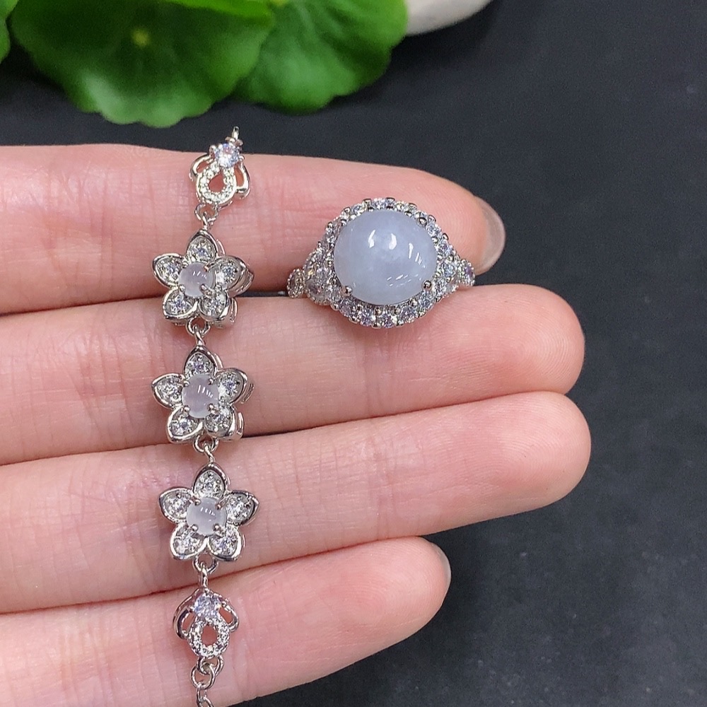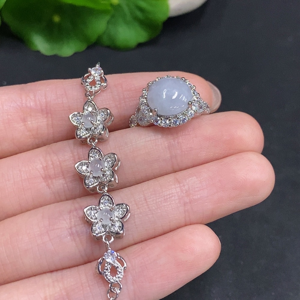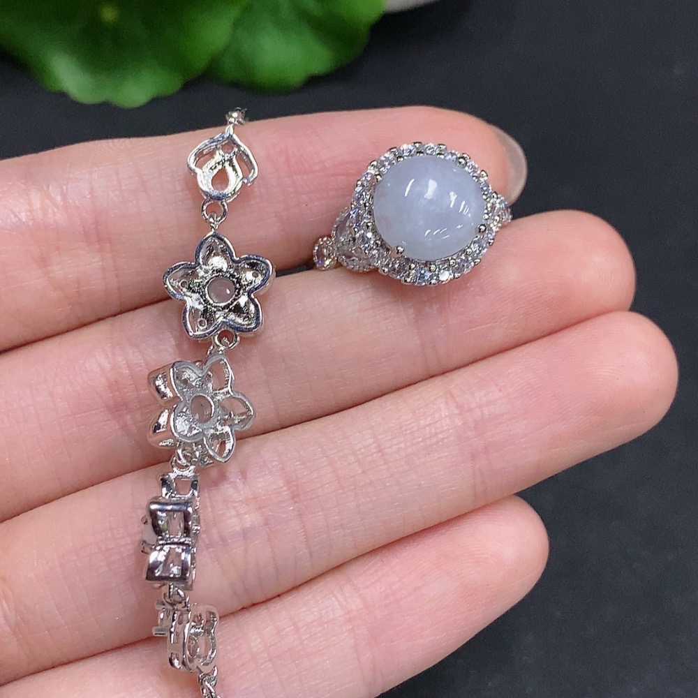 Jadeite Cabochon Set Sell as a Lot Non-Metal Inlaid Adjustable Size
