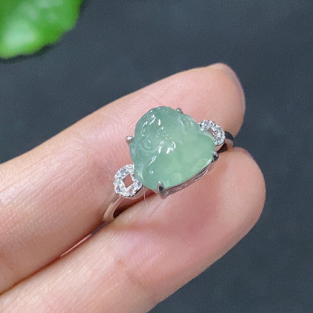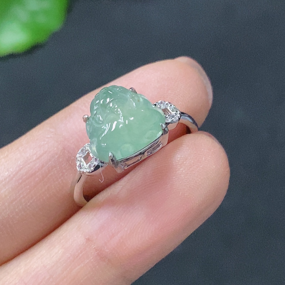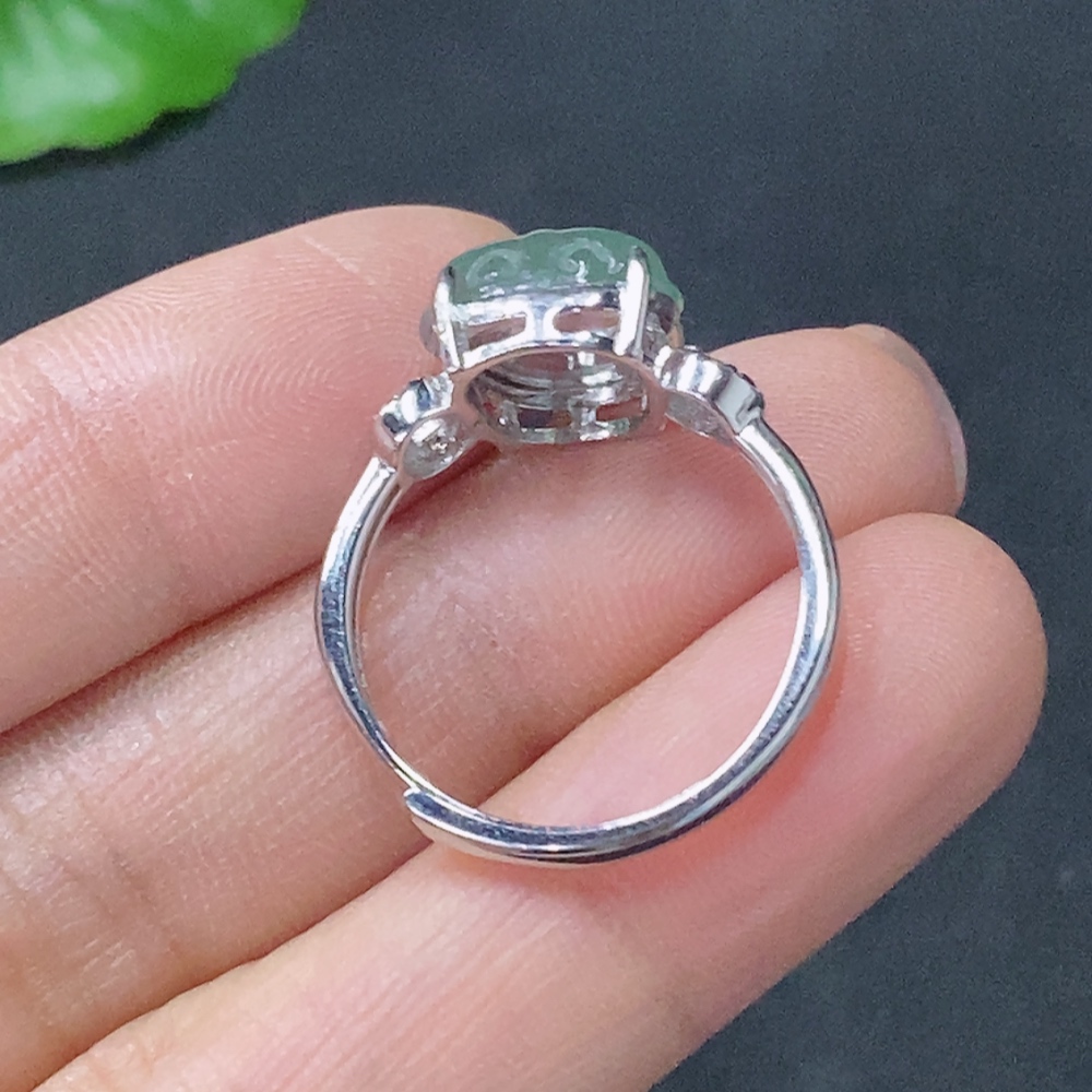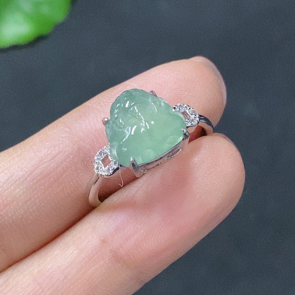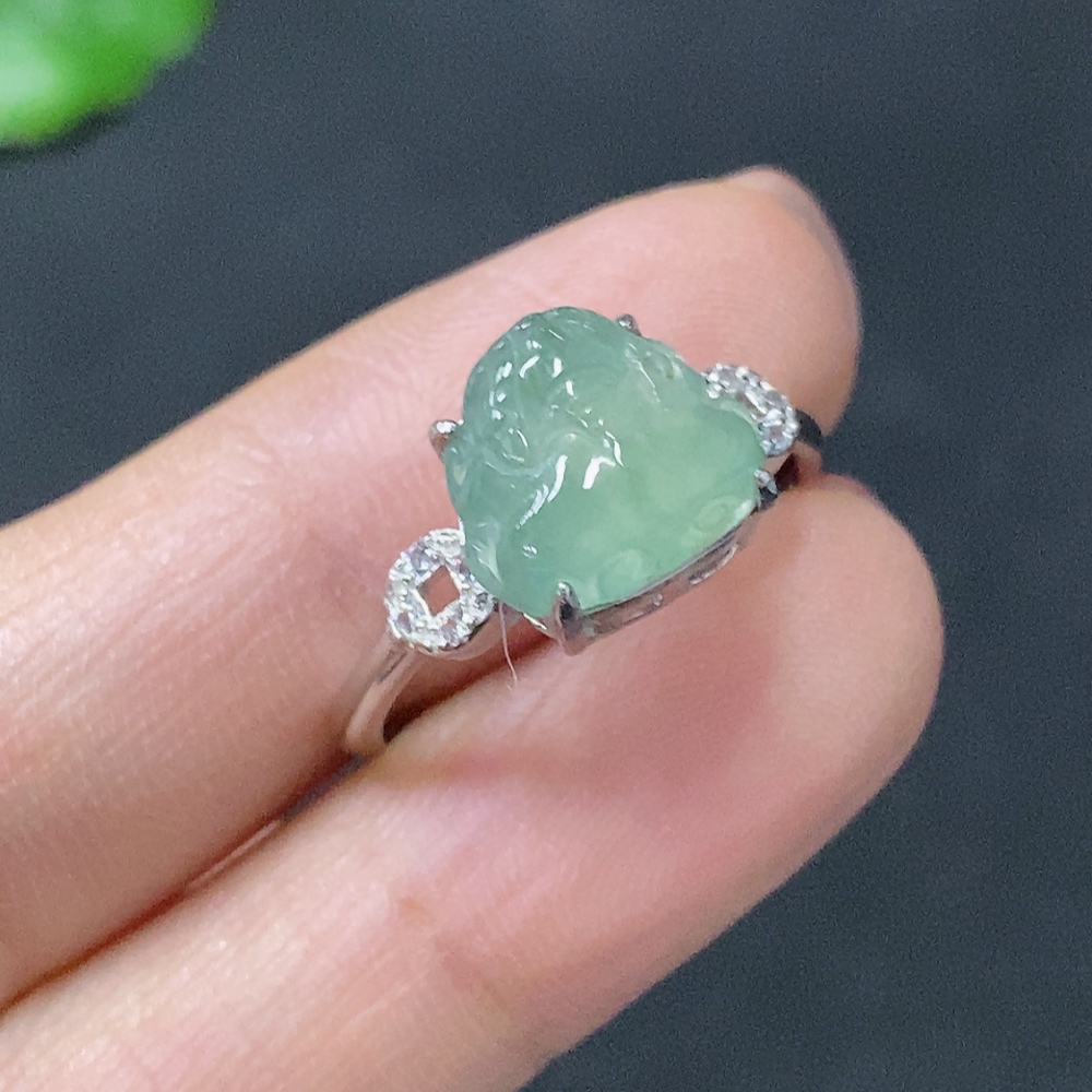 Jadeite Buddha Inlaid Ring Non-Gold Inlaid Adjustable Size Total Weight Approx.2.31g