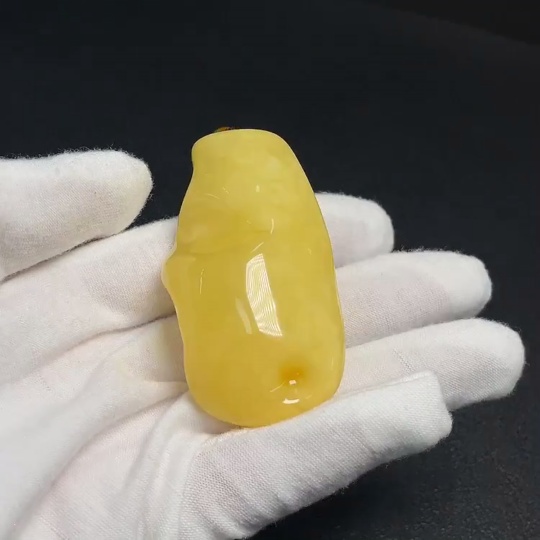 Amber Beeswax Pendant with Non-Natural Accent Stones, Total Weight Approx. 25.21g Including Cord