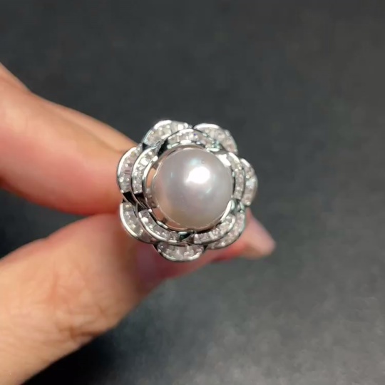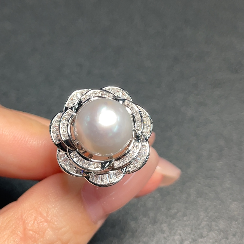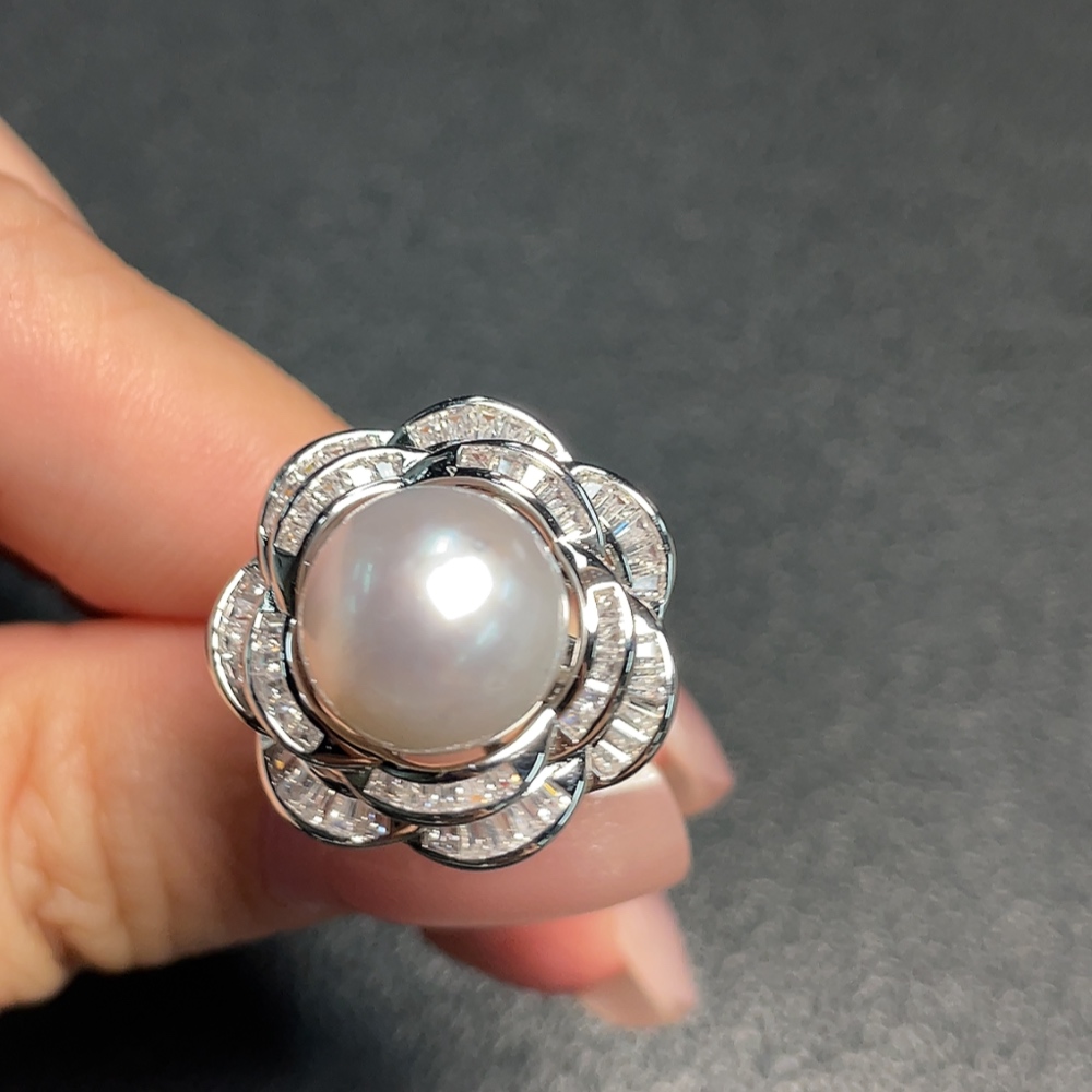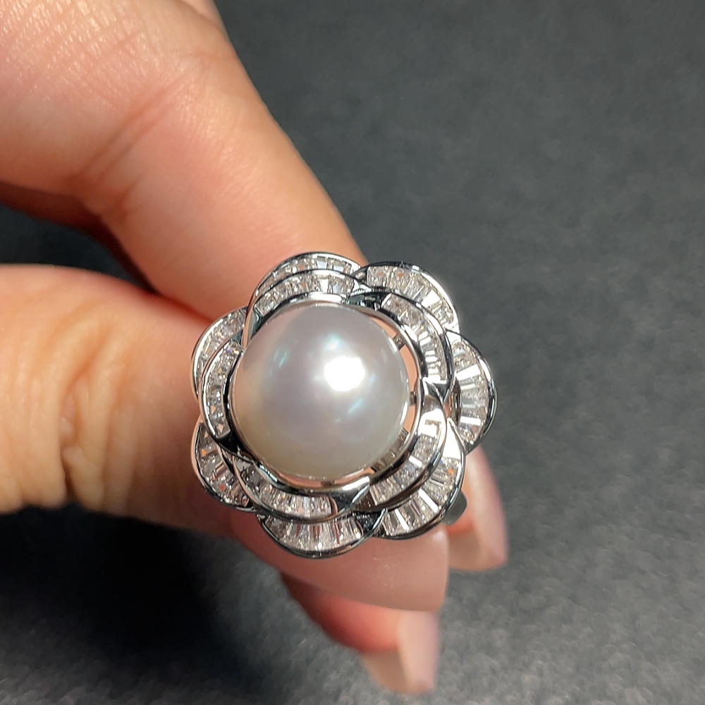 Seawater Pearl Ring Non-Gold Adjustable Color Origin Undetermined Total Weight Approx. 6.74g Size About 10.8mm