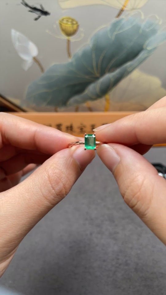 Emerald Ring Clarity Enhanced Adjustable Non-Gold Total Weight Approx.1.75g Size 6.7*4.8mm