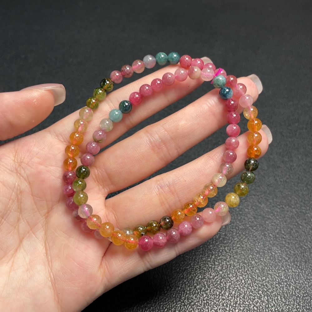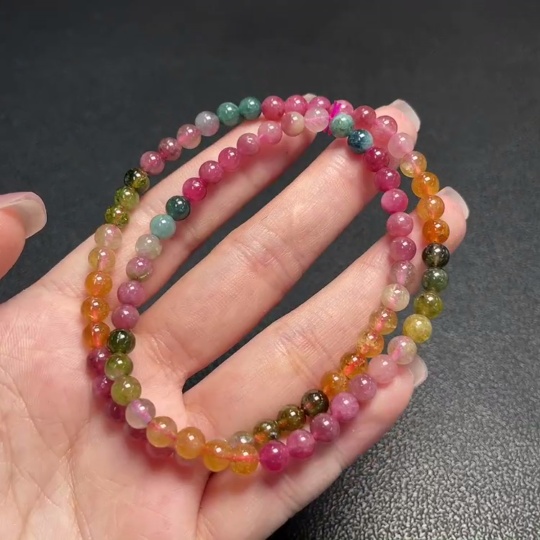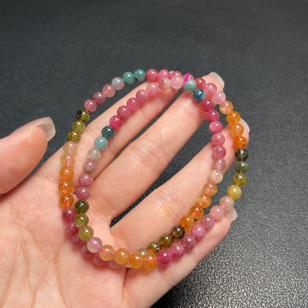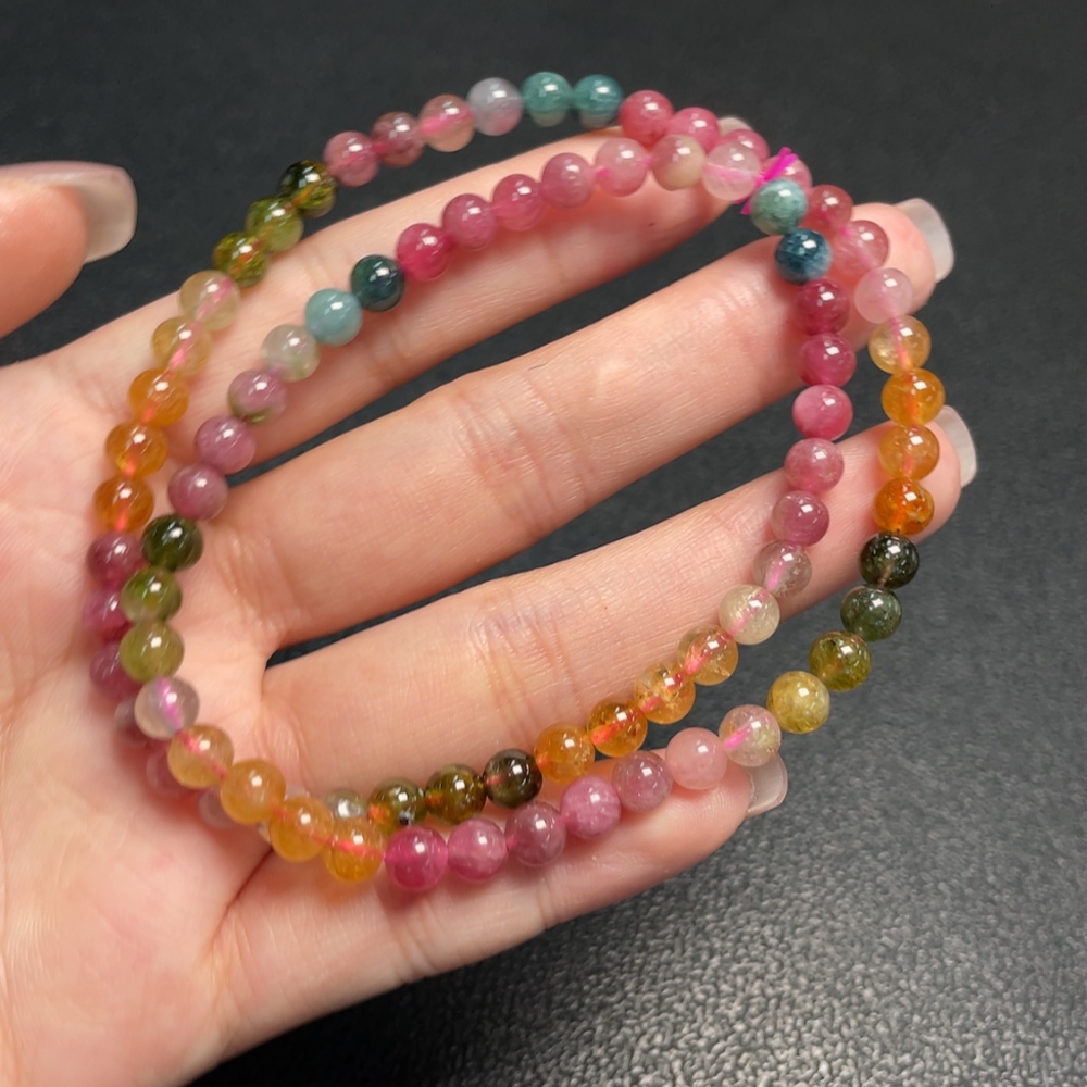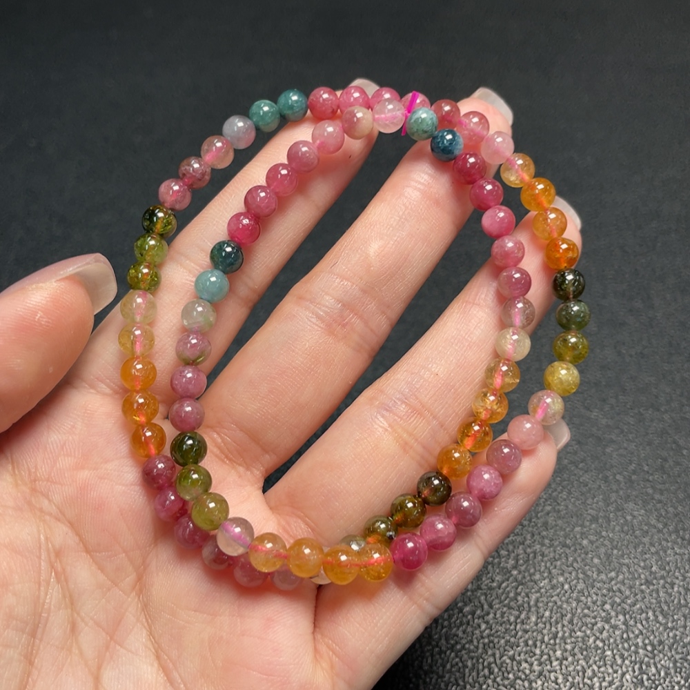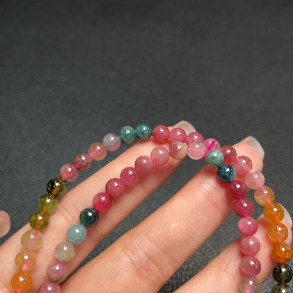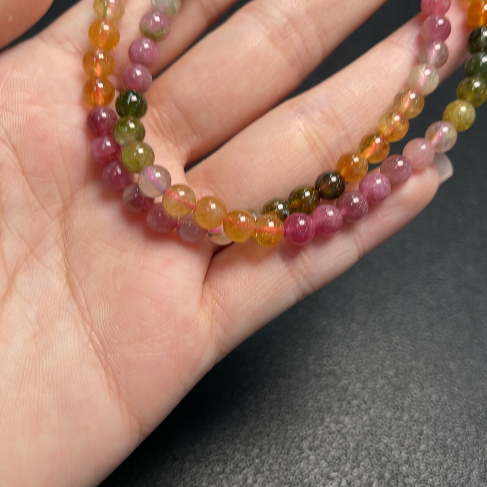 Tourmaline bead strand with other mineral components, visible organic matter, total weight approx. 18.14g, ~5.3mm (inclusion)