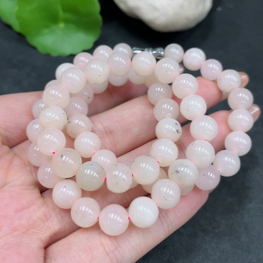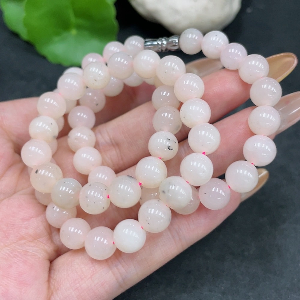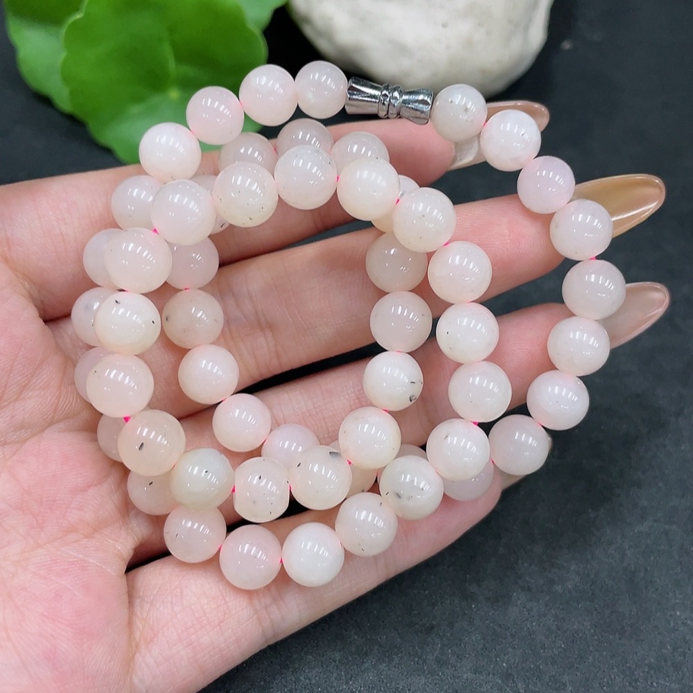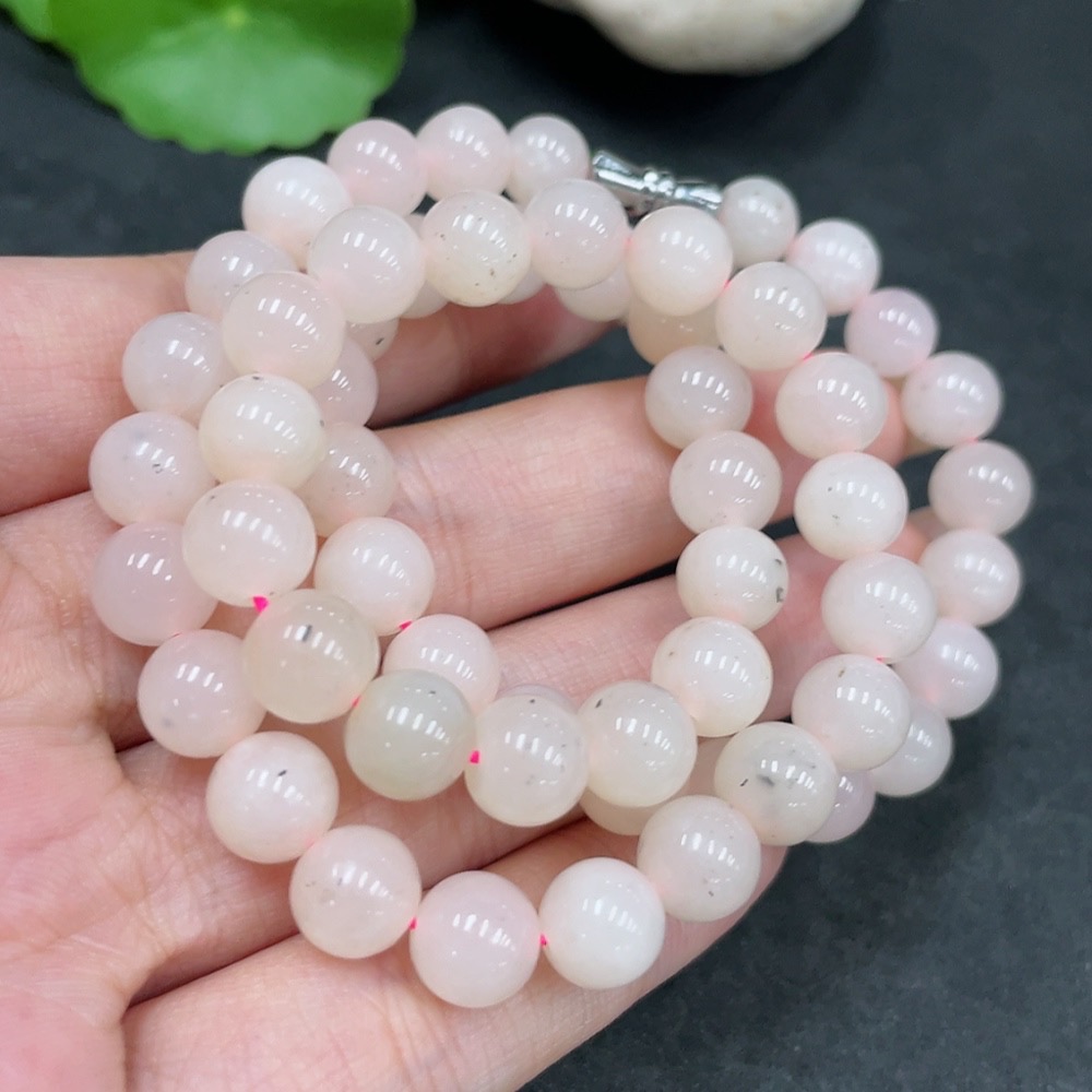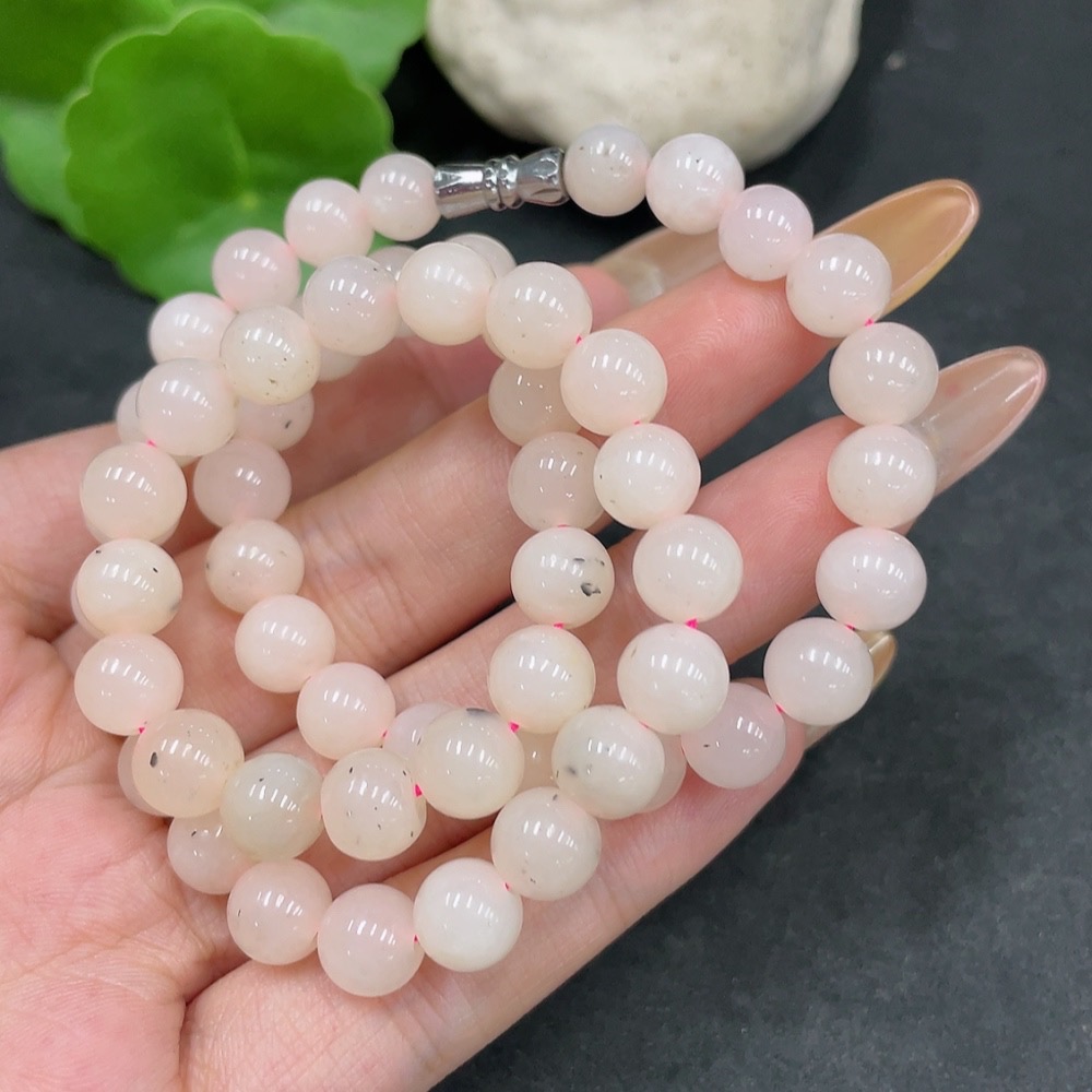 Hetian Jade Bead Necklace Approx. 8mm Non-Gold Total Weight About 44.8g