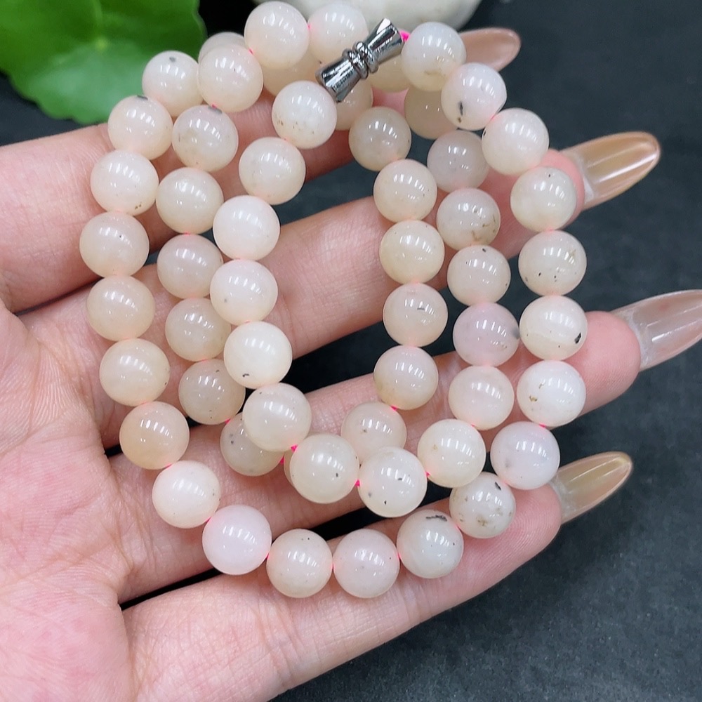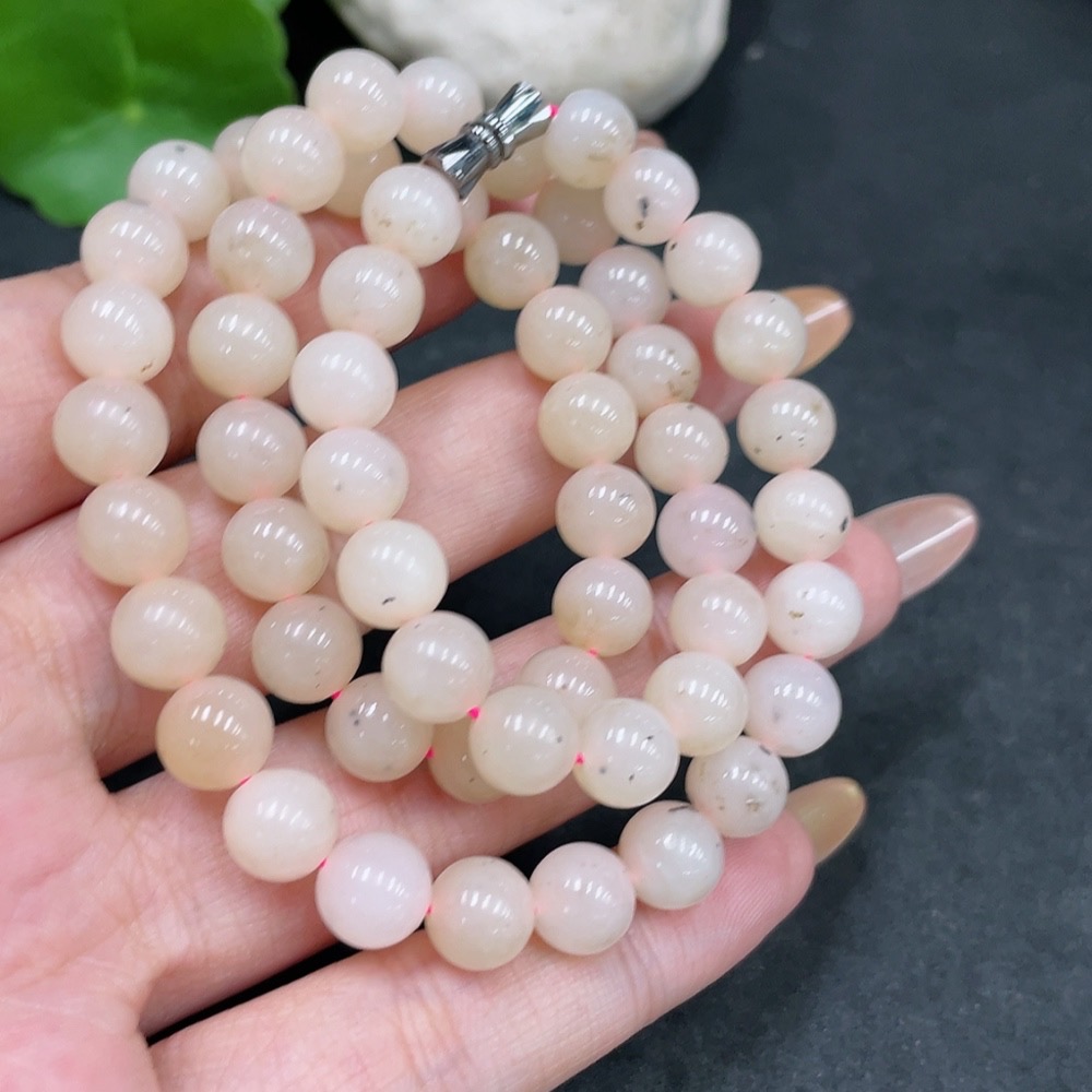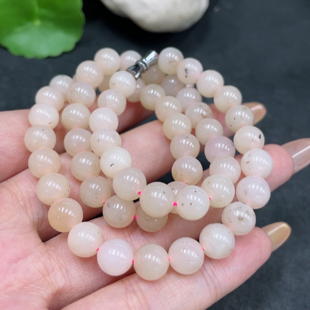 Hetian Jade Bead Necklace Approx. 7.8mm Non-Gold Total Weight About 43.3g