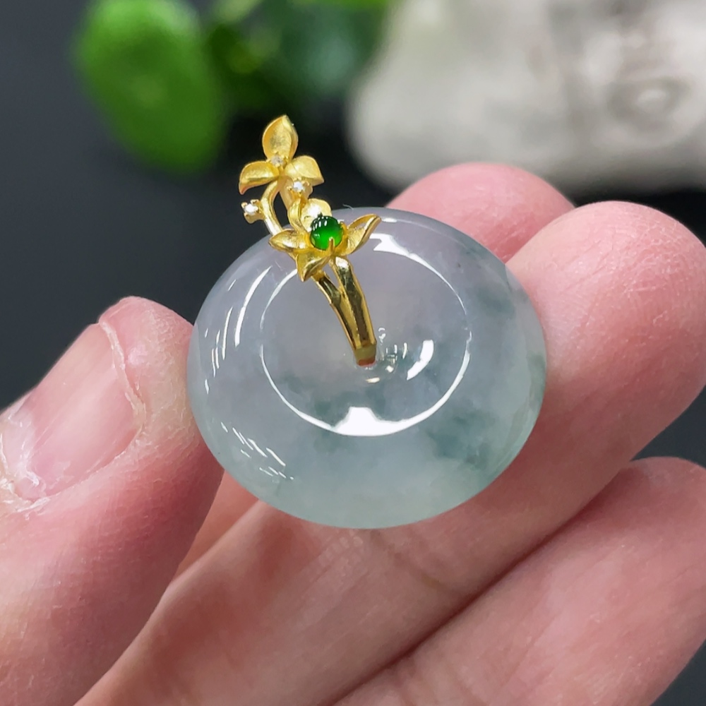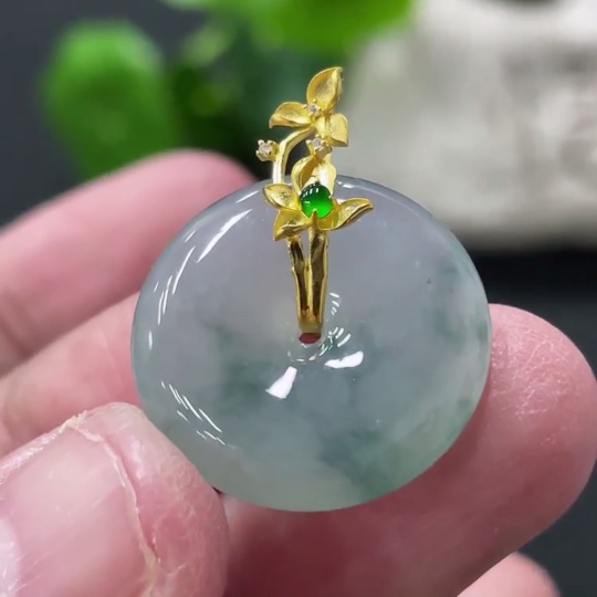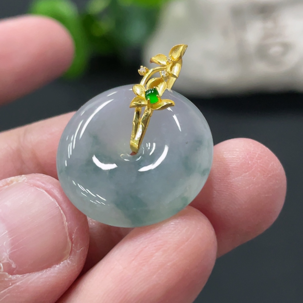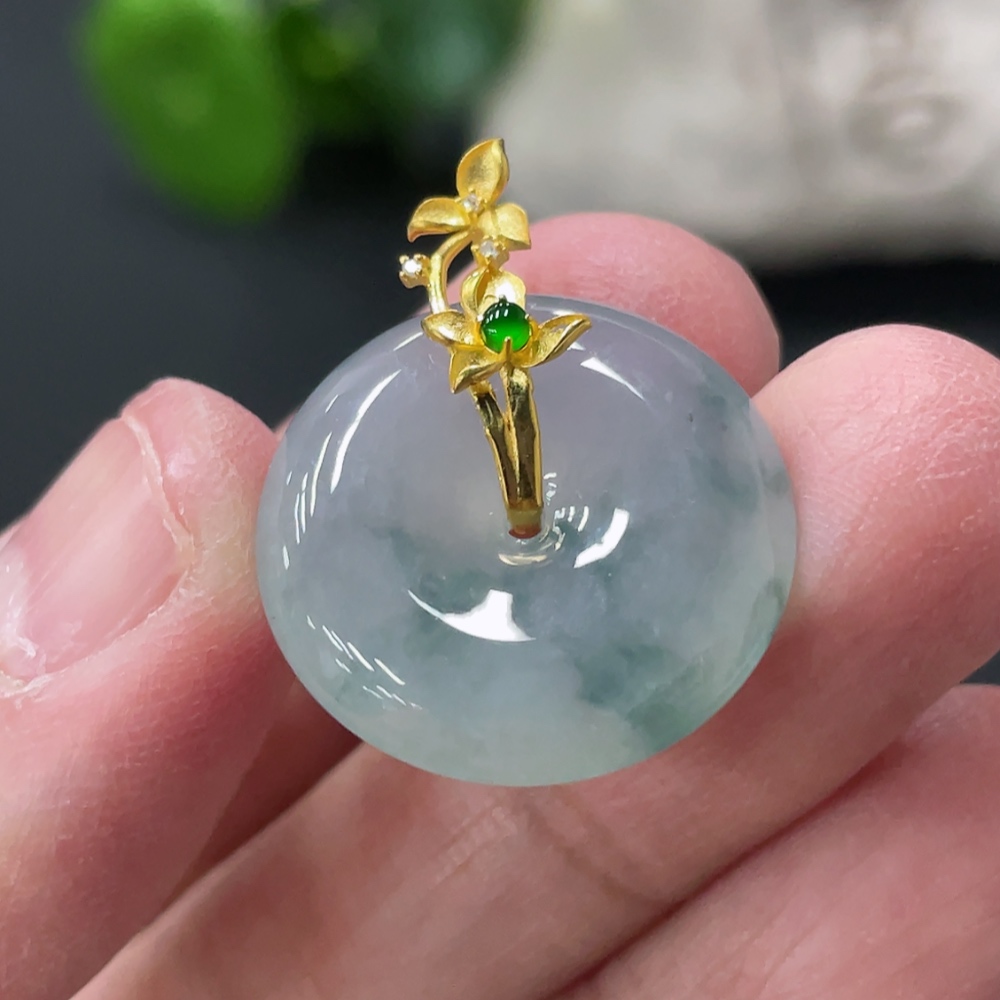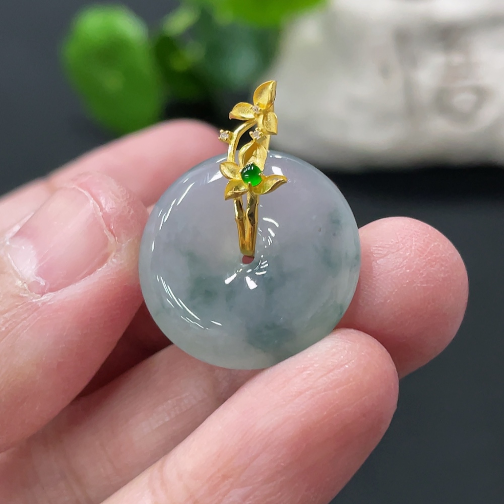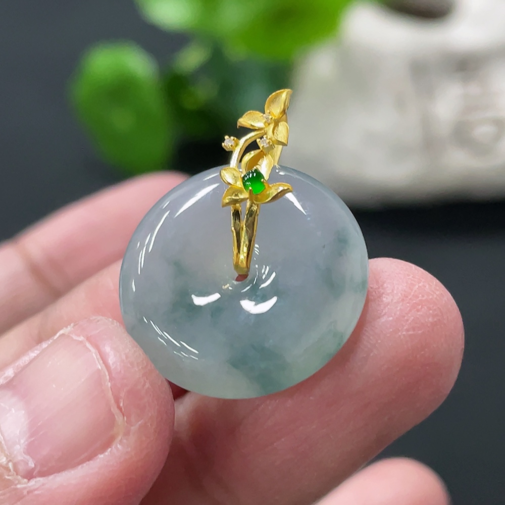 Jadeite Safety Pendant with 18k Gold Clasp, Total Weight Approx. 4.58g