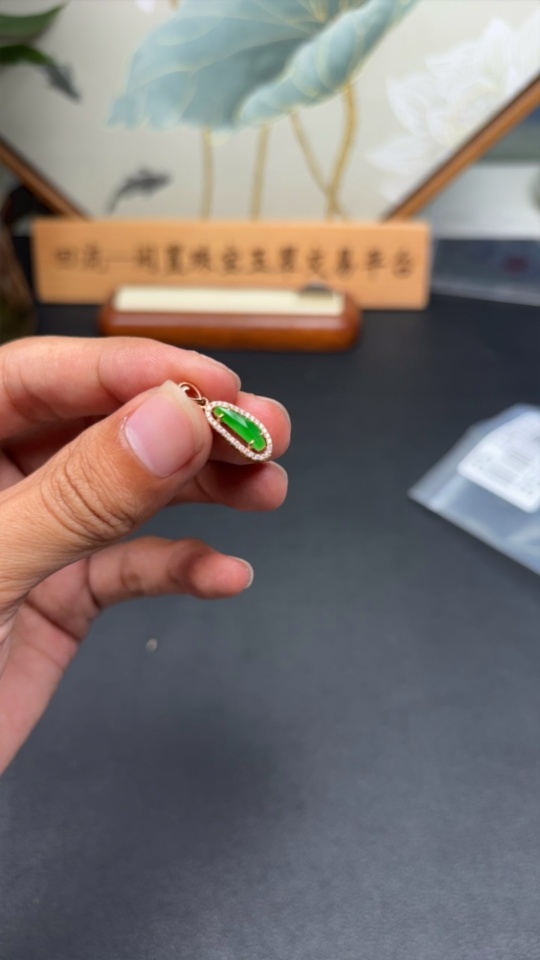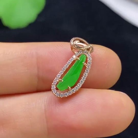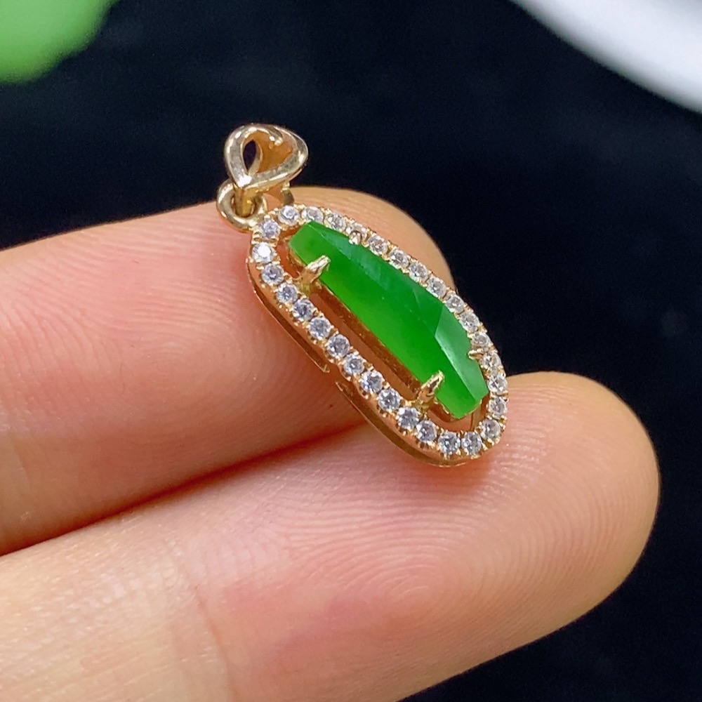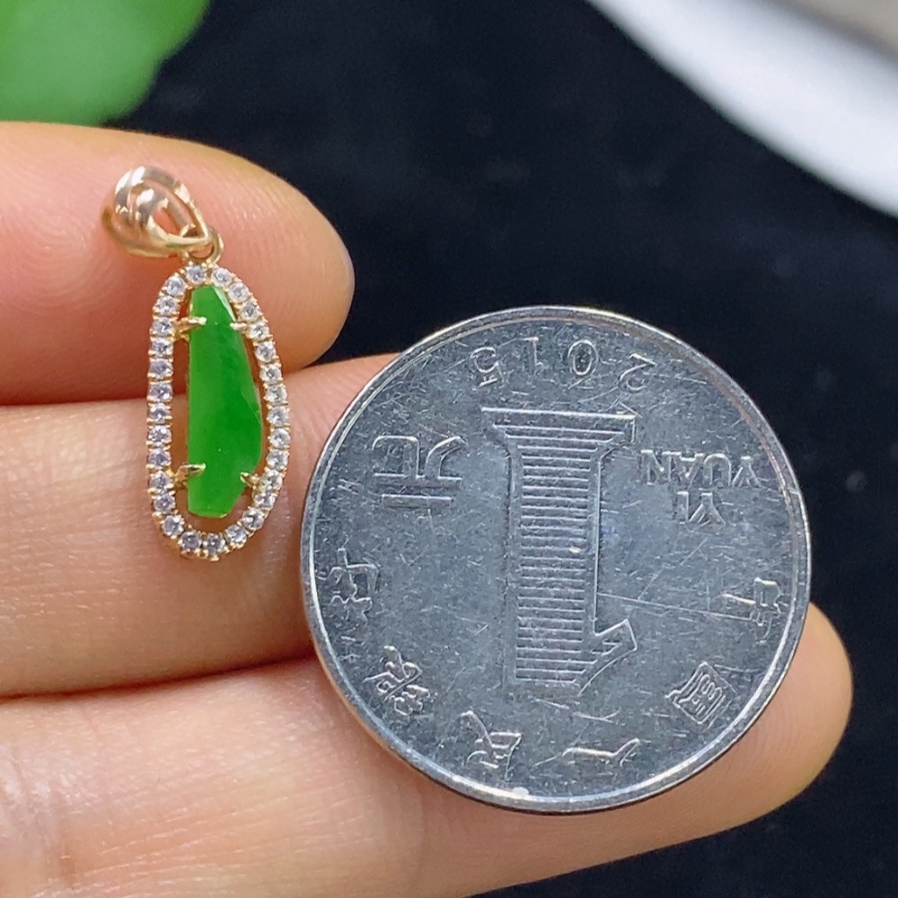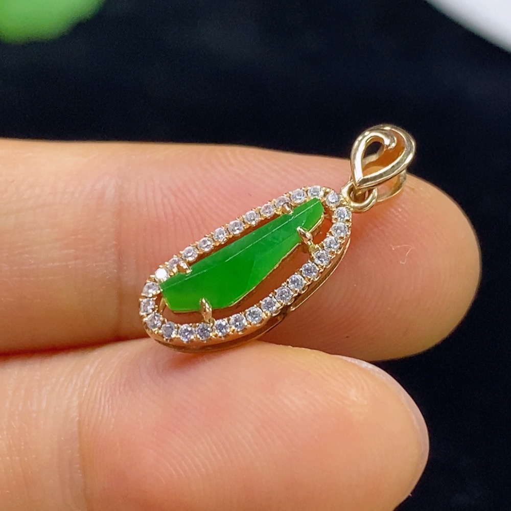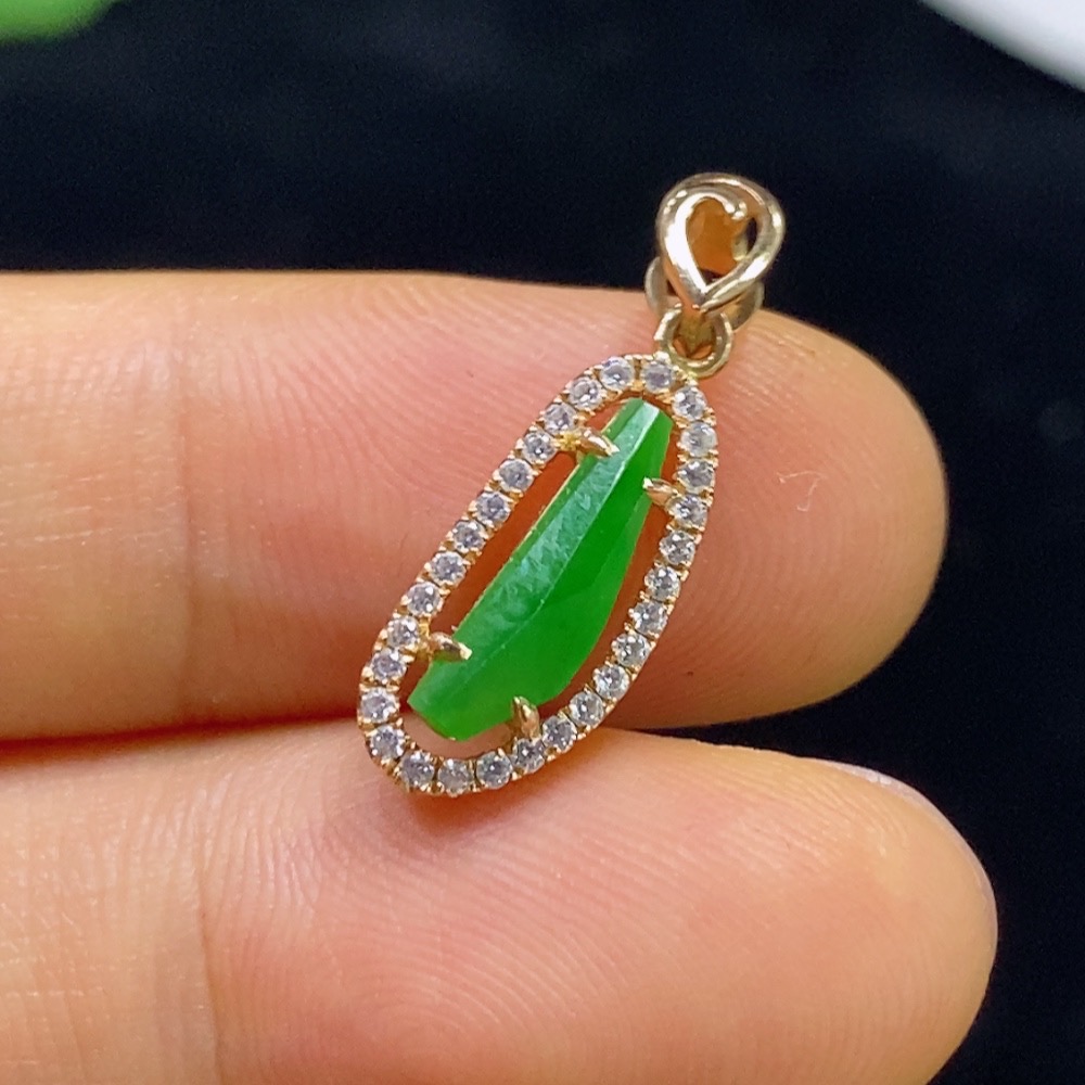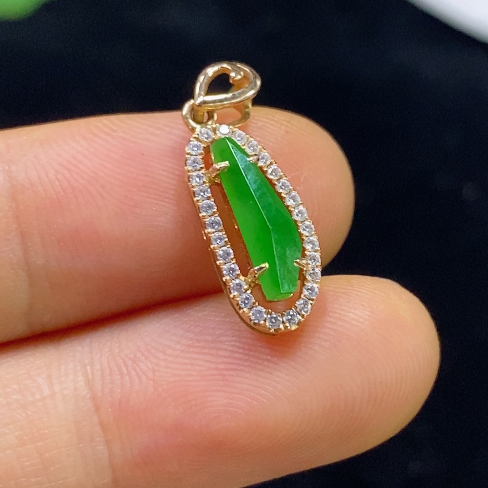 Jadeite Freeform Inlaid Pendant No Hallmark 18K Gold Tested Non-Diamond Total Weight Approx. 1.42g