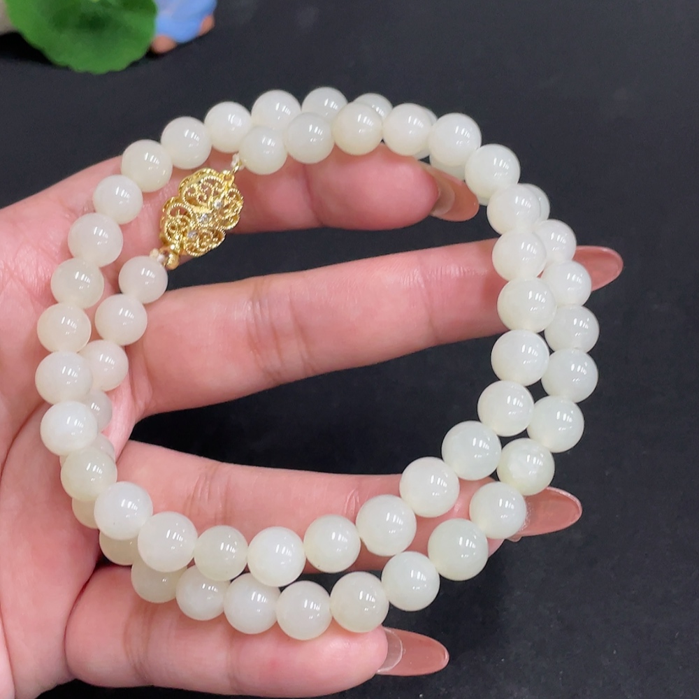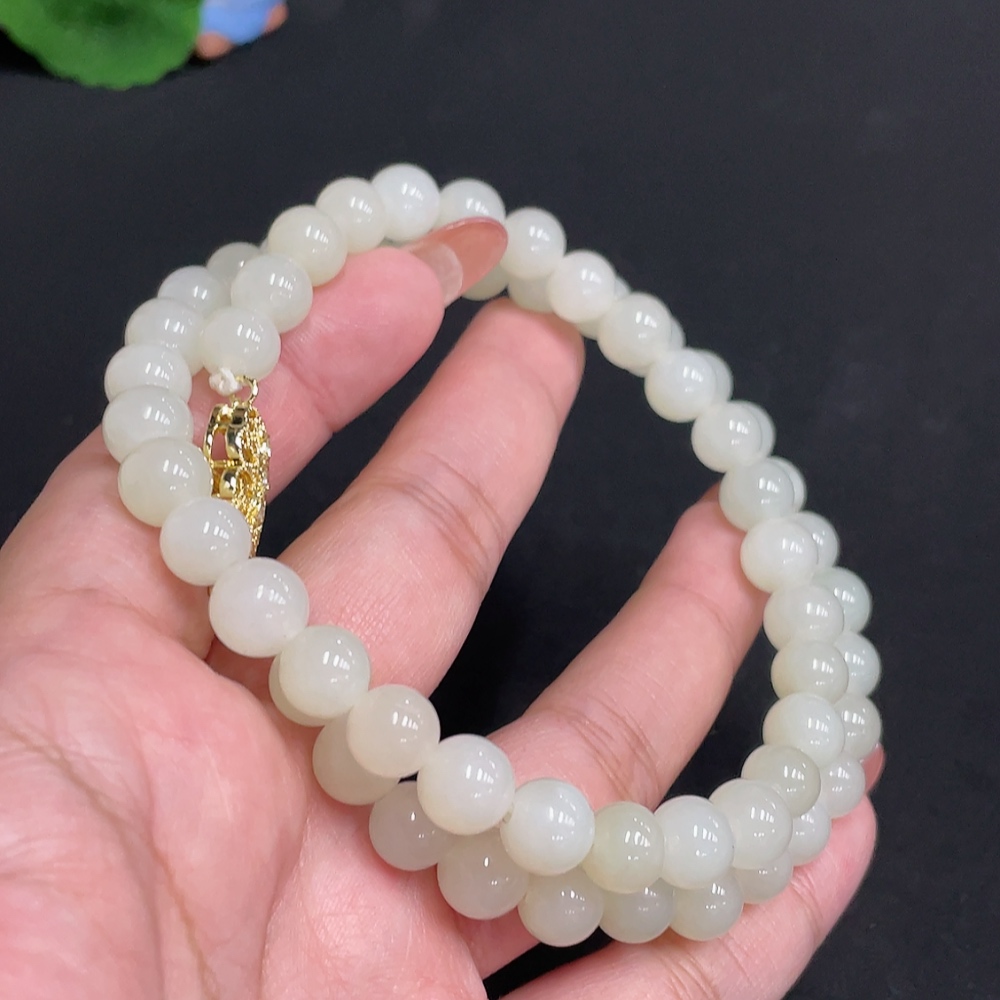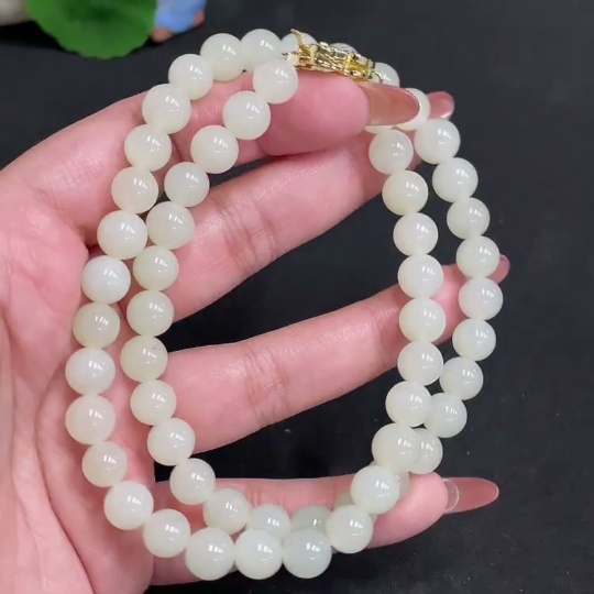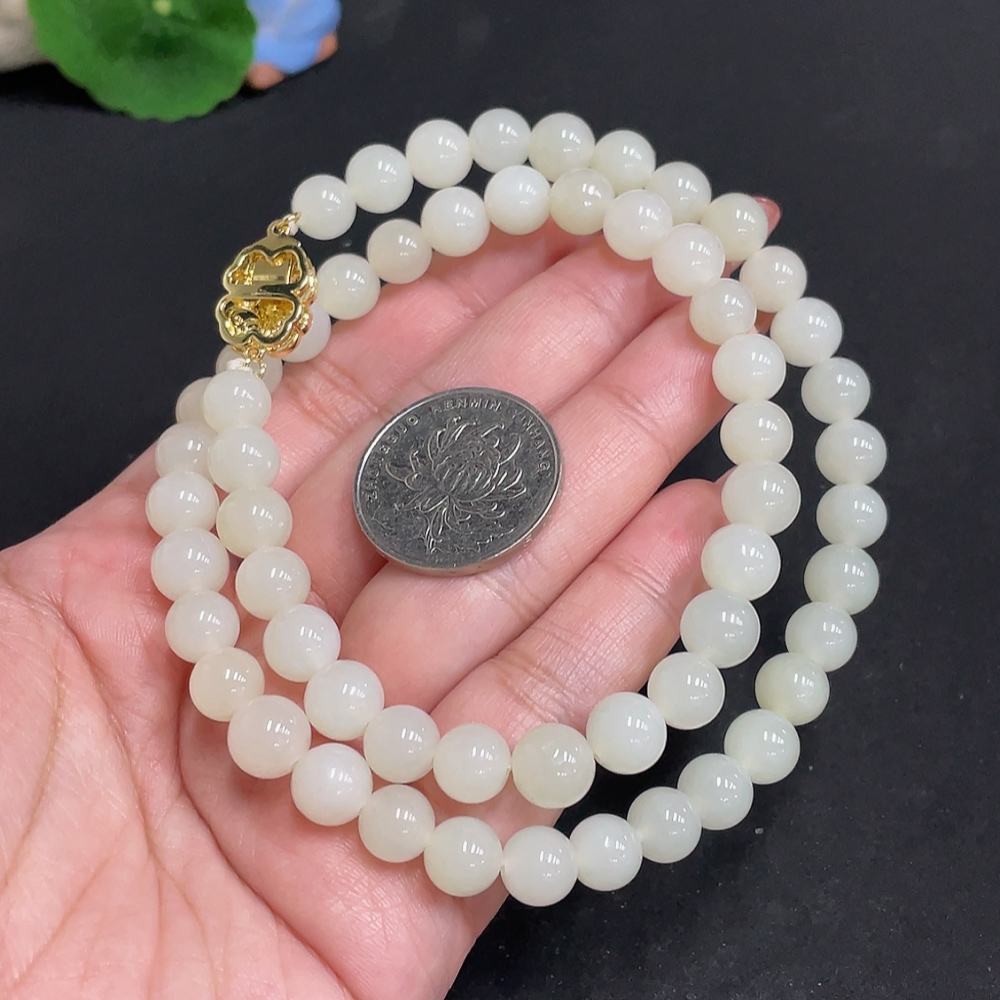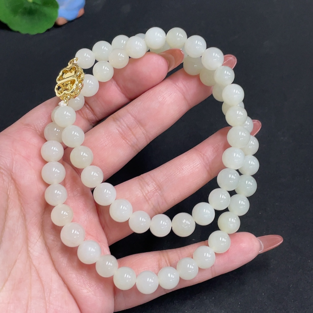 Hetian Jade Bead Necklace, Approx. 8.1 mm, Total Weight Approx. 52.3g, Non-Gold