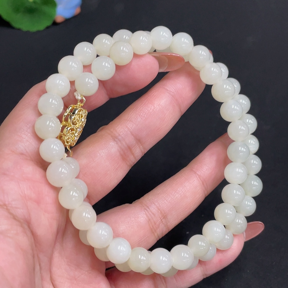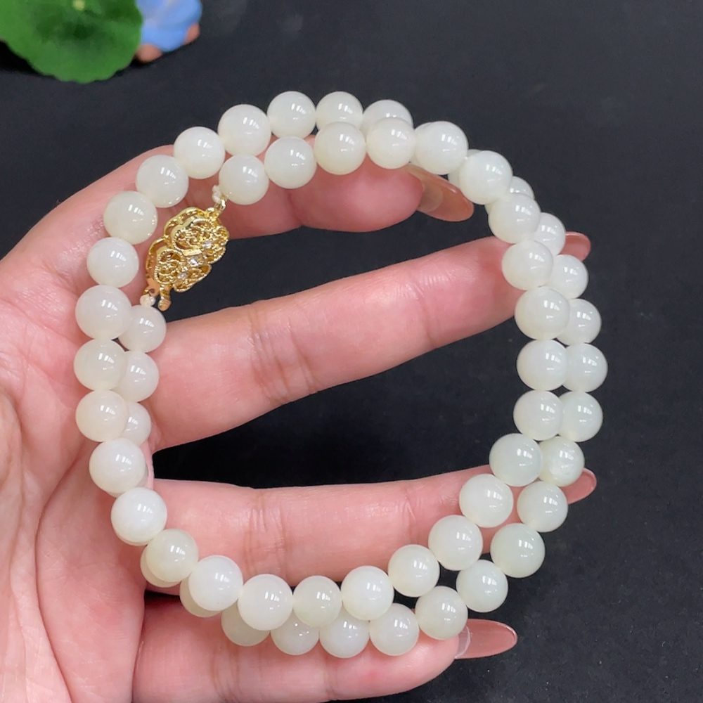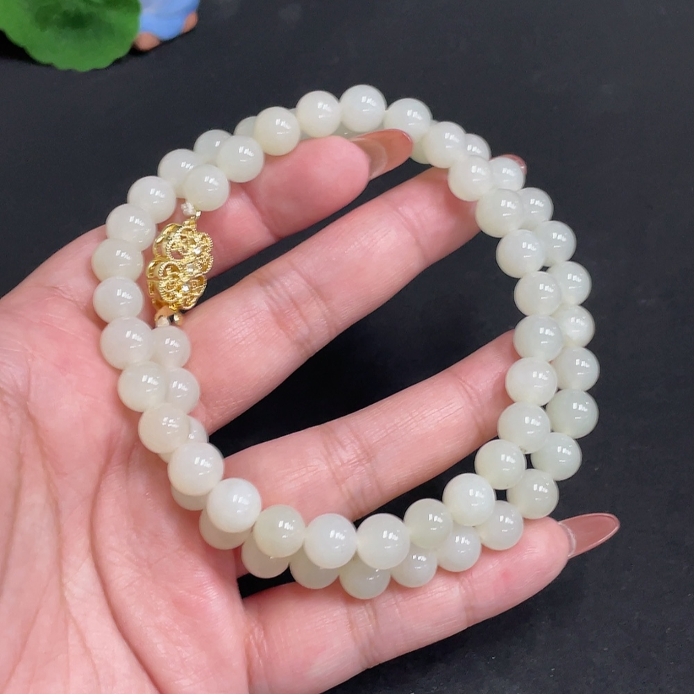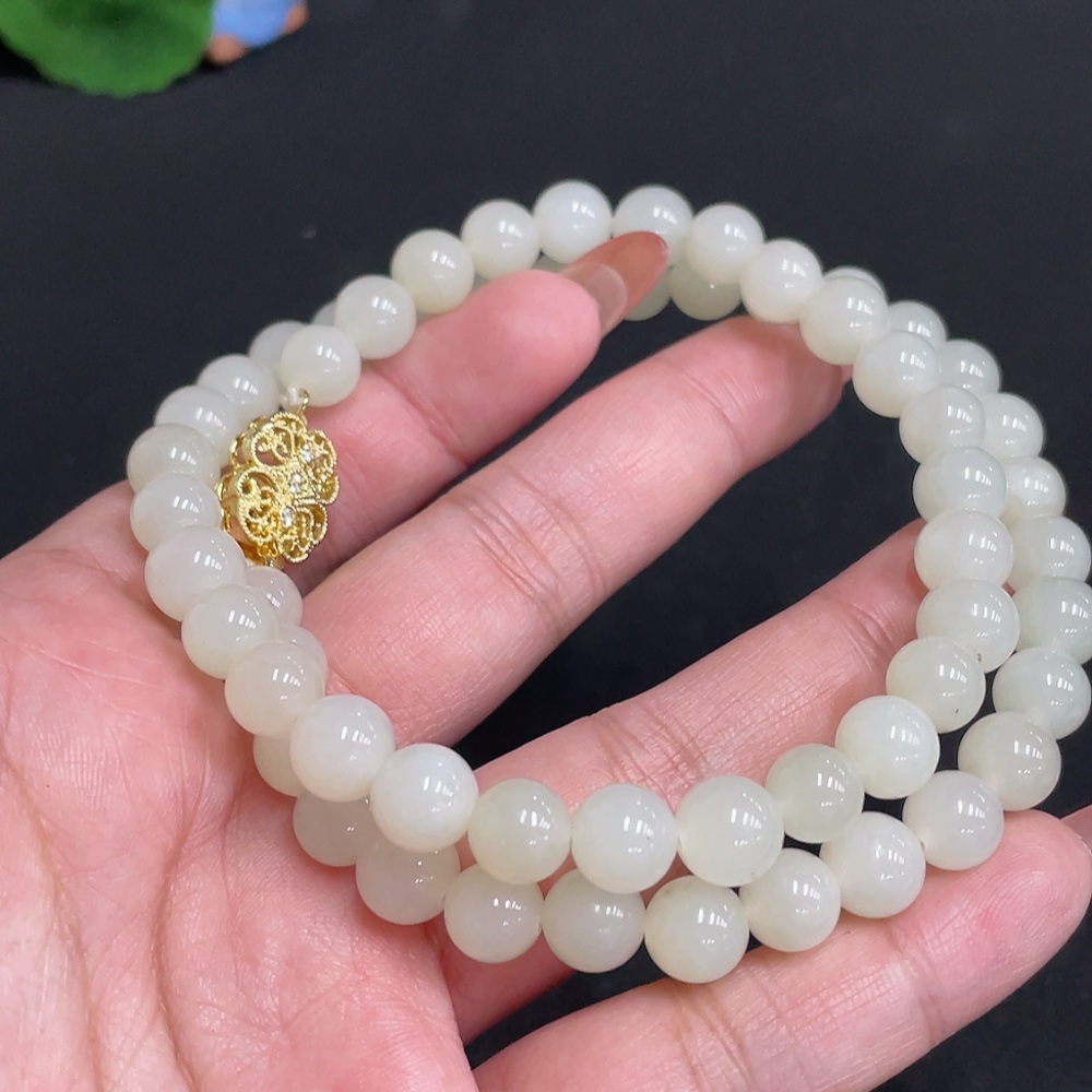 Hetian Jade Bead Necklace, Approx. 8.1 mm, Total Weight Approx. 52.3g, Non-Gold
