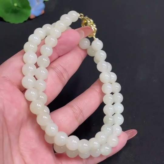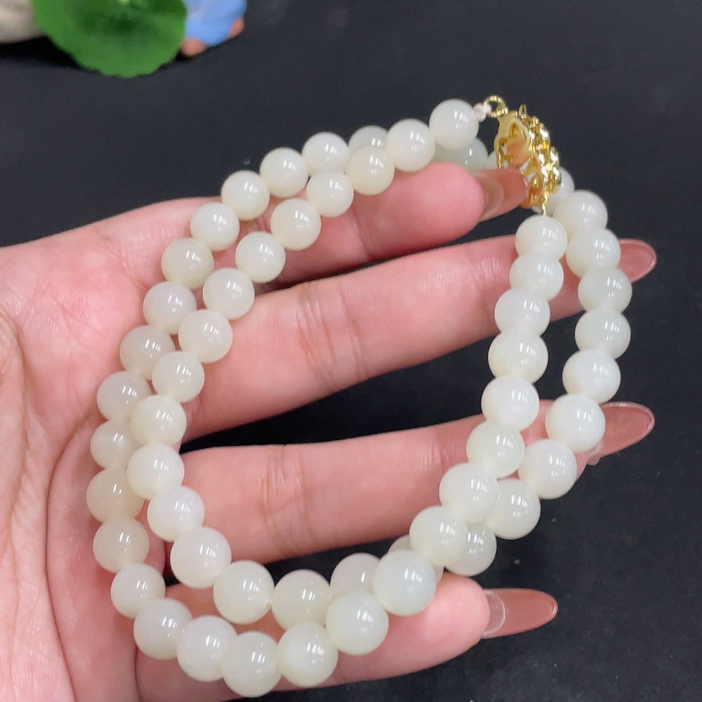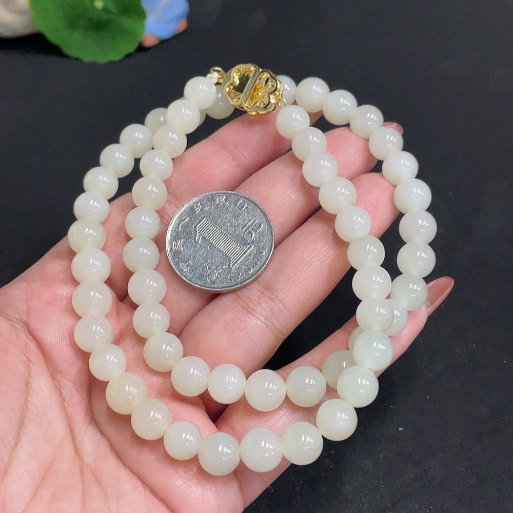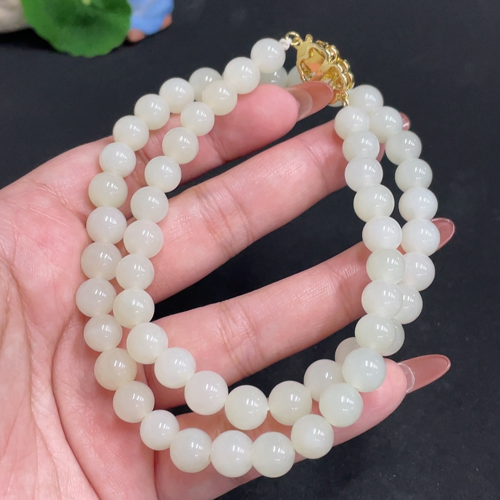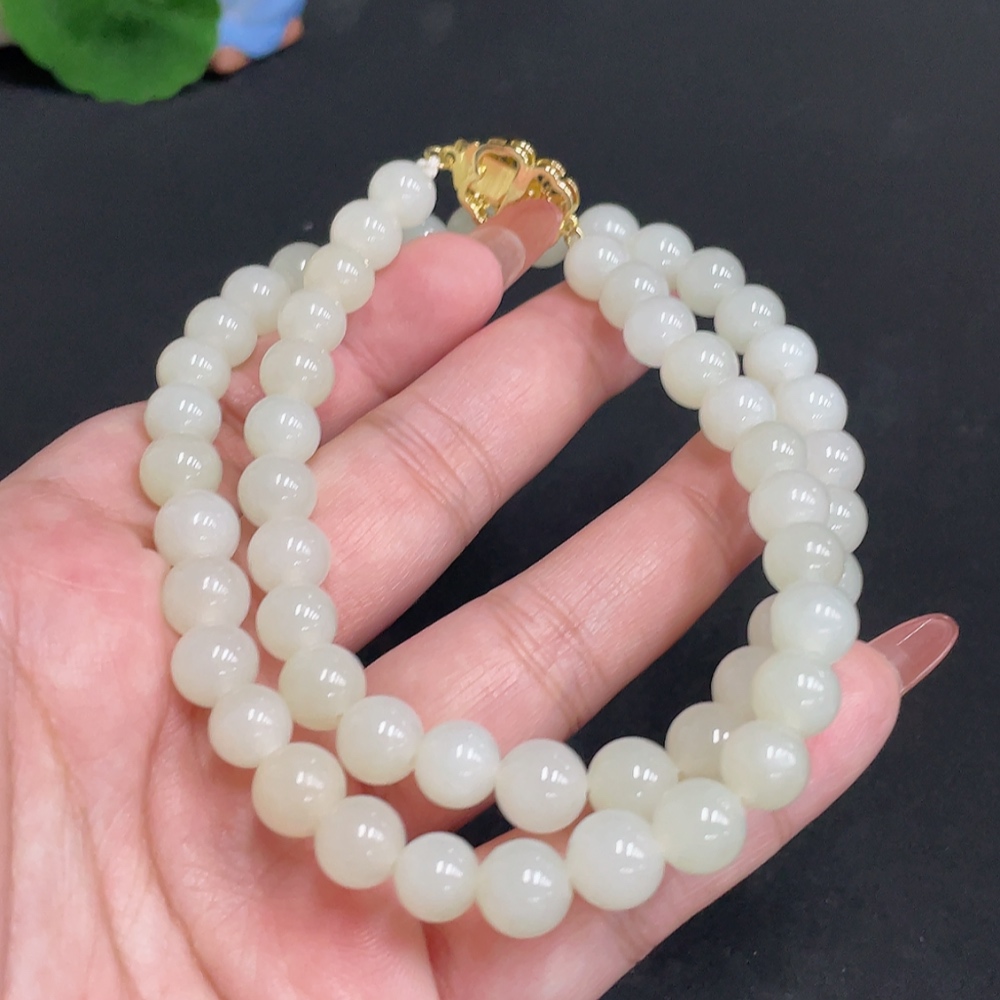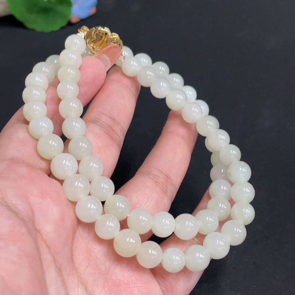 Hetian Jade Bead Necklace, Approx. 8.3 mm, Total Weight Approx. 52.3g, Non-Gold