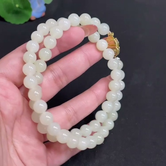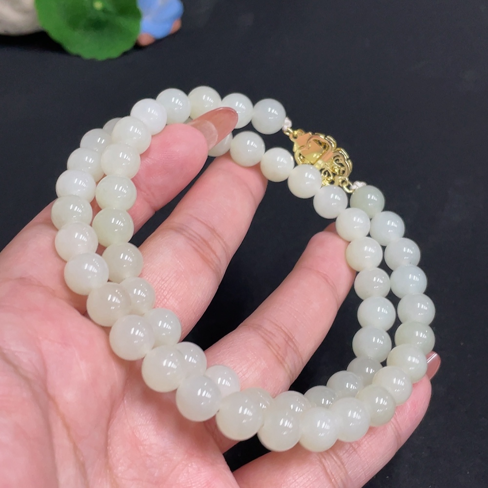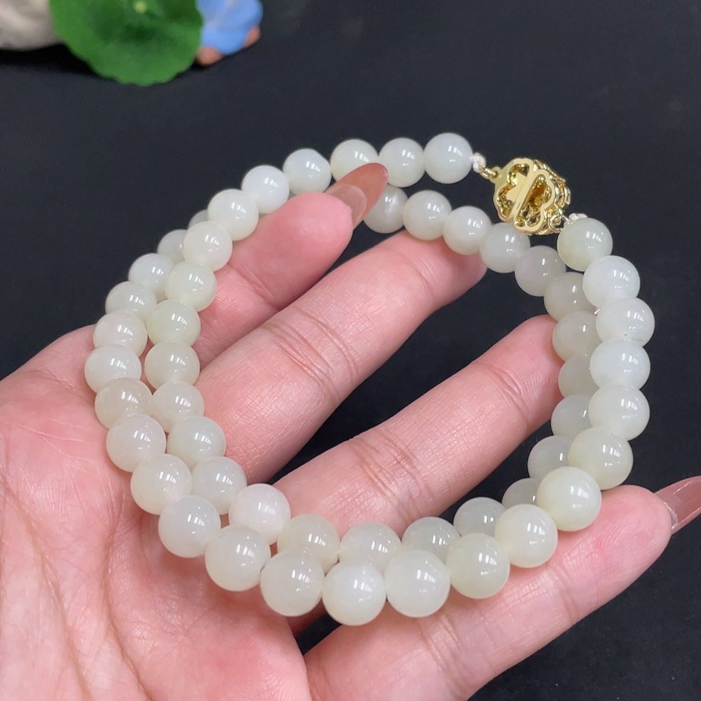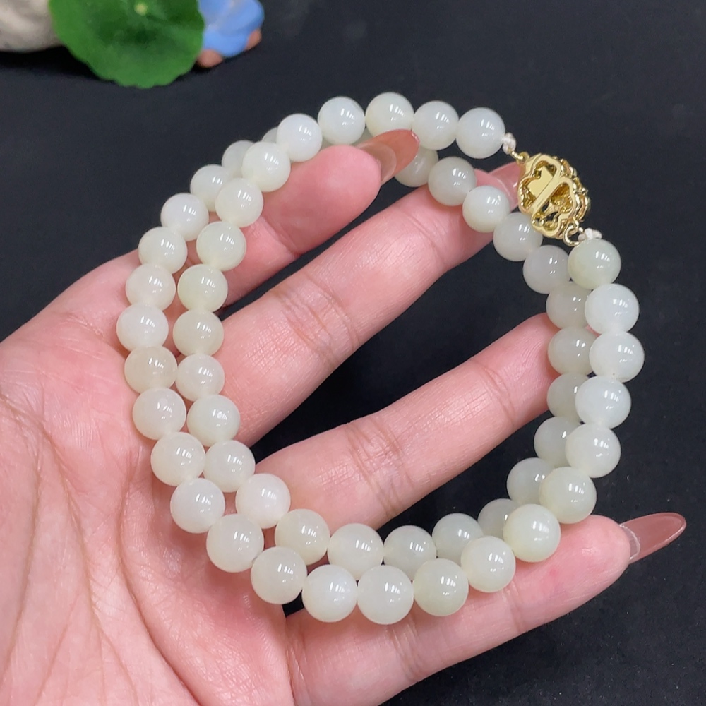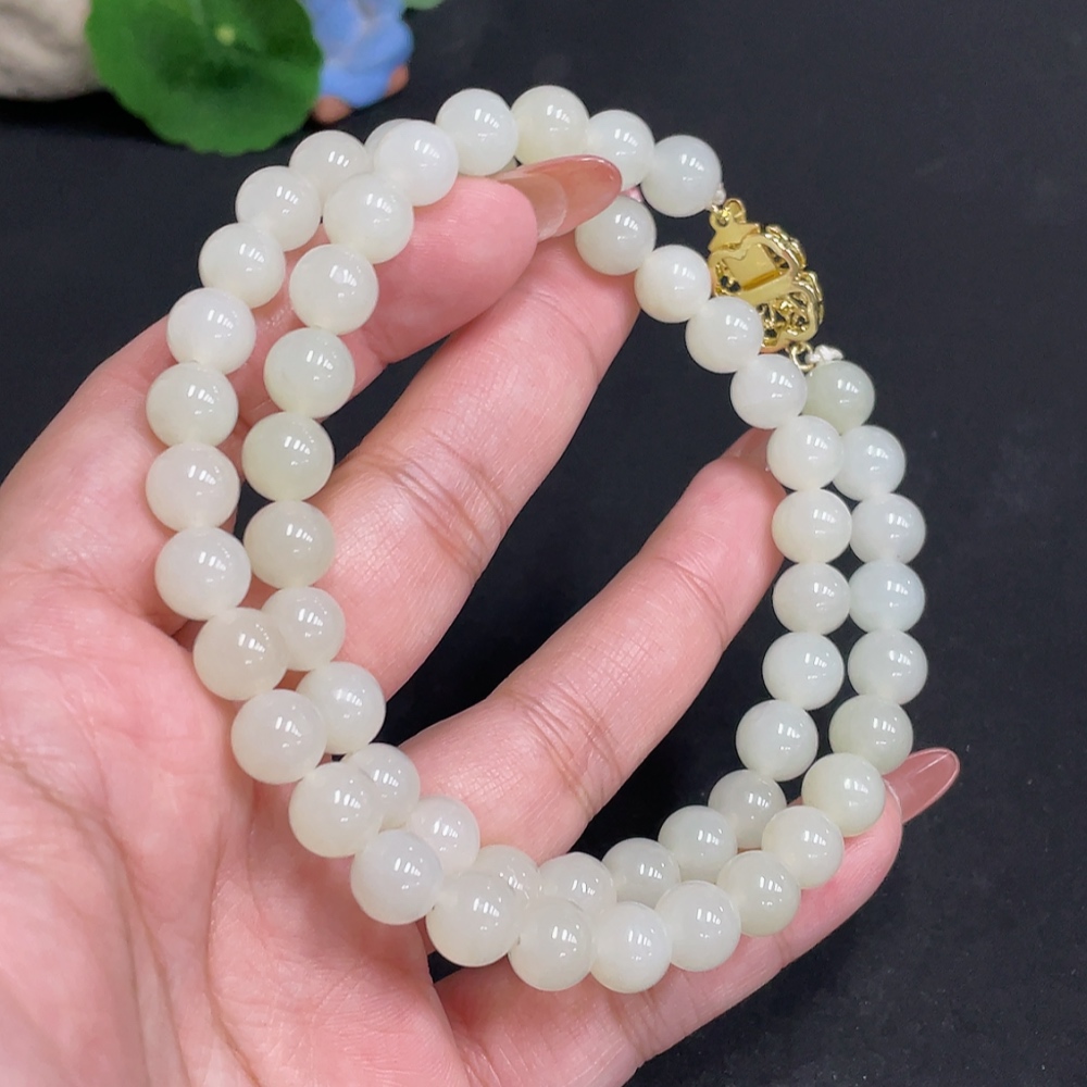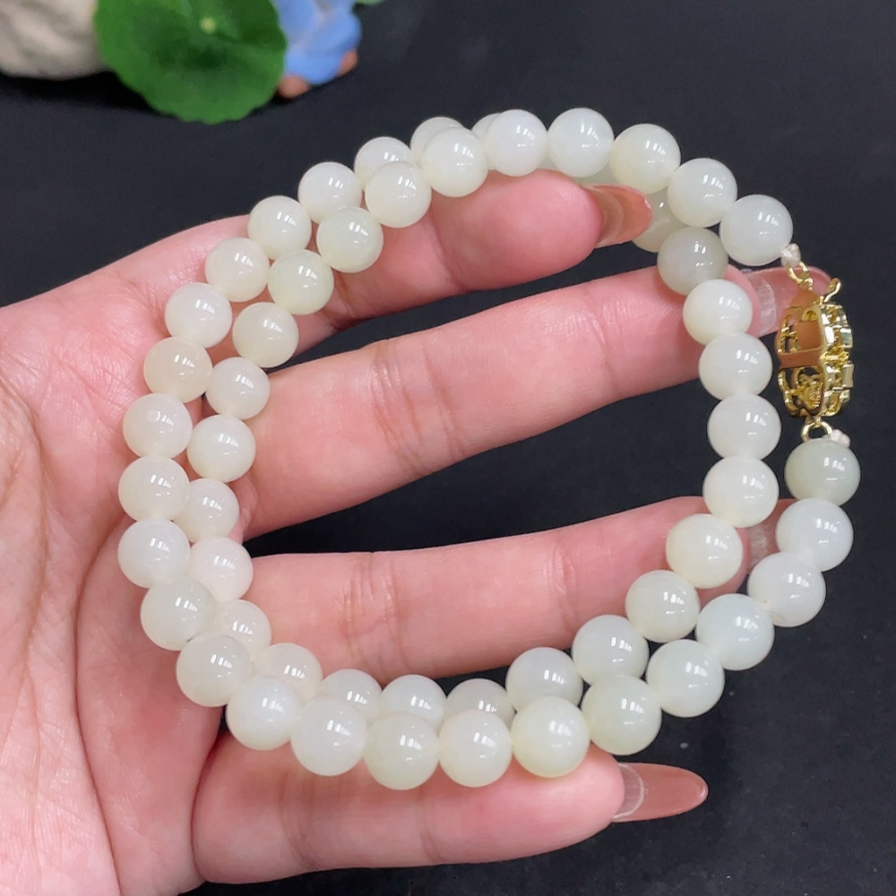 Hetian Jade Bead Necklace, Approx. 8.3mm, Total Weight Approx. 54.2g, Non-Gold