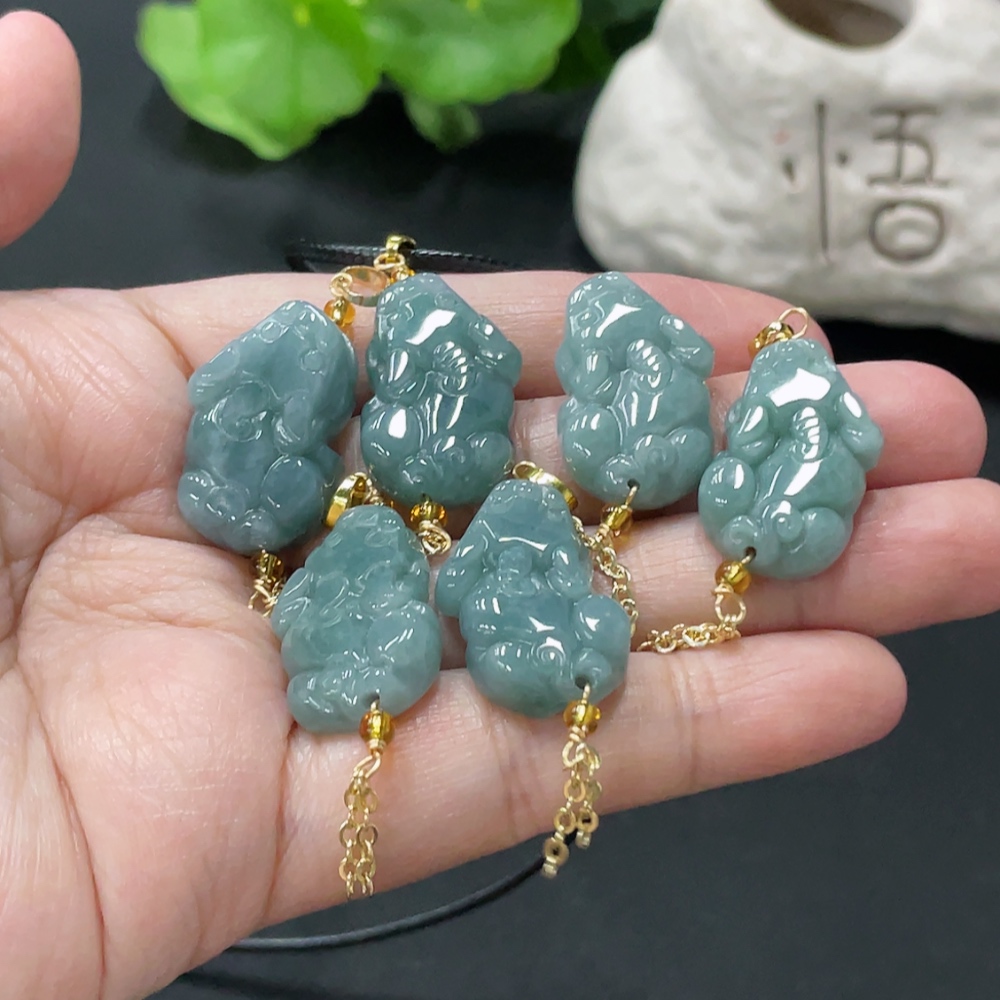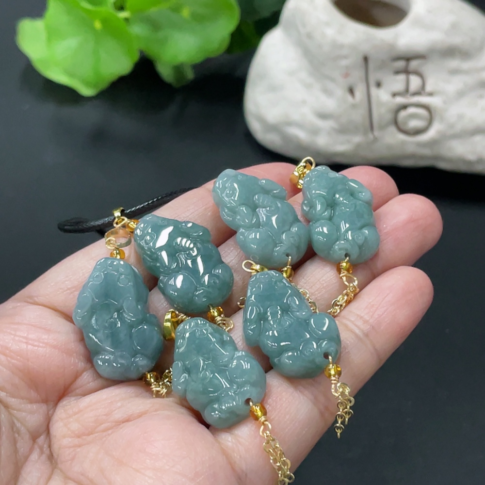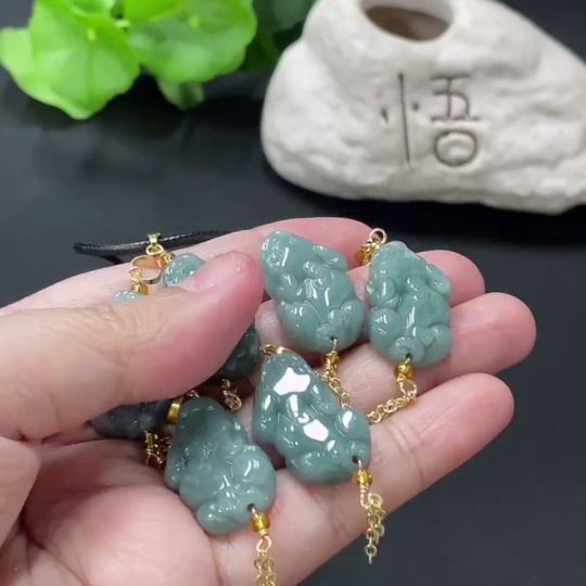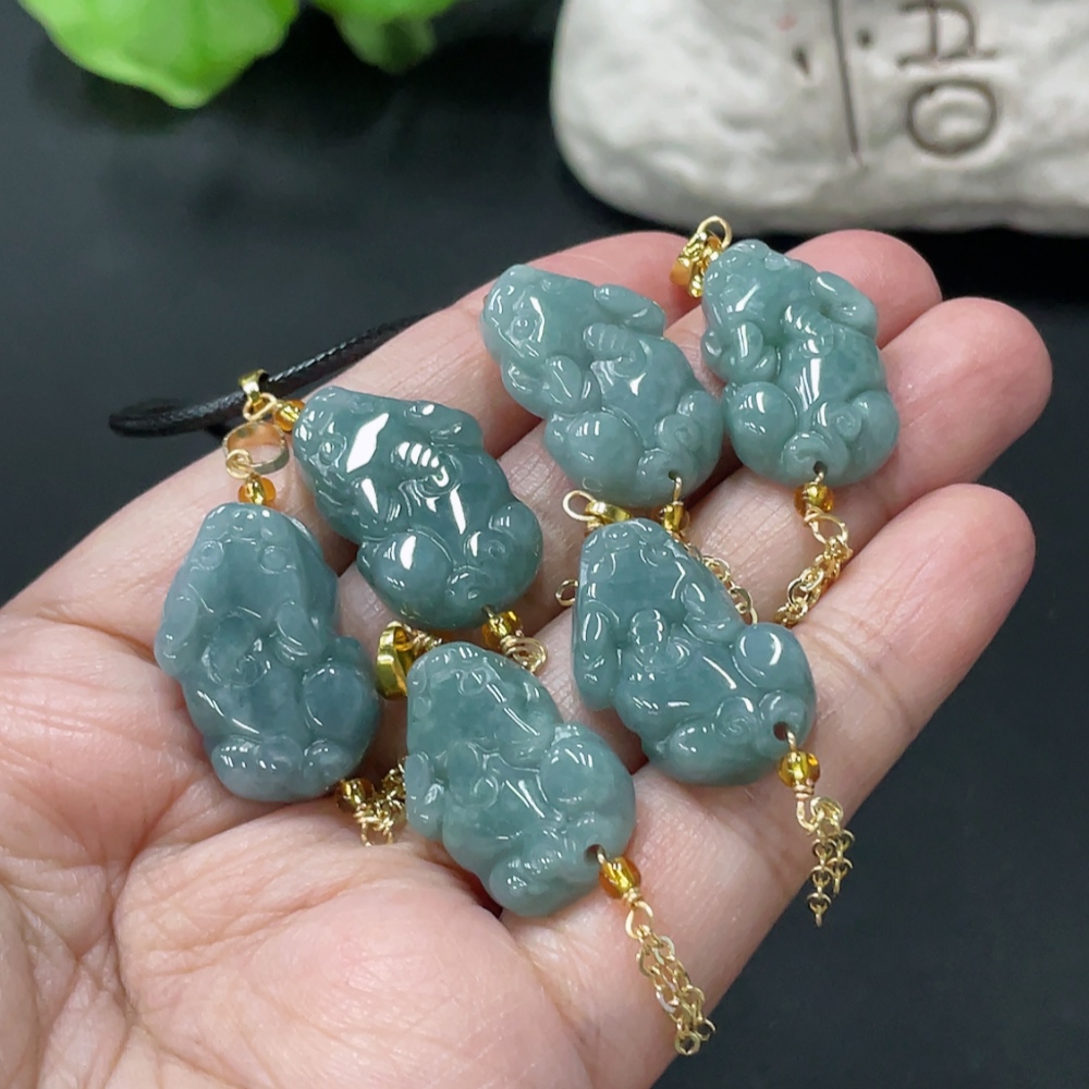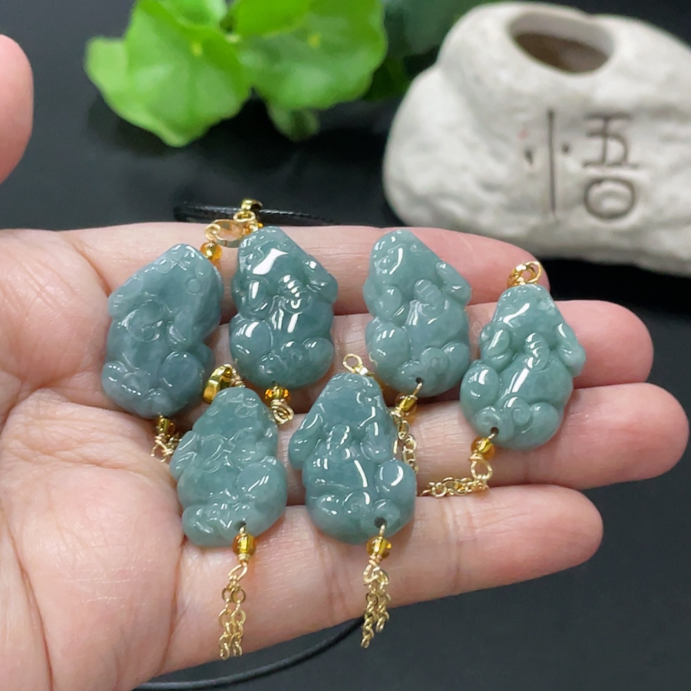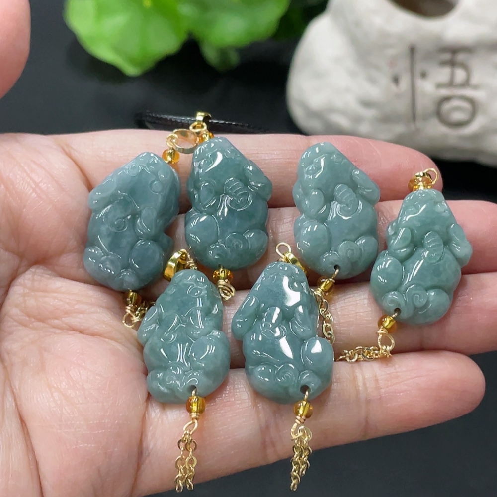 Jadeite Pixiu Pendant Non-Gold Clasp Non-Grade A Matching Stones