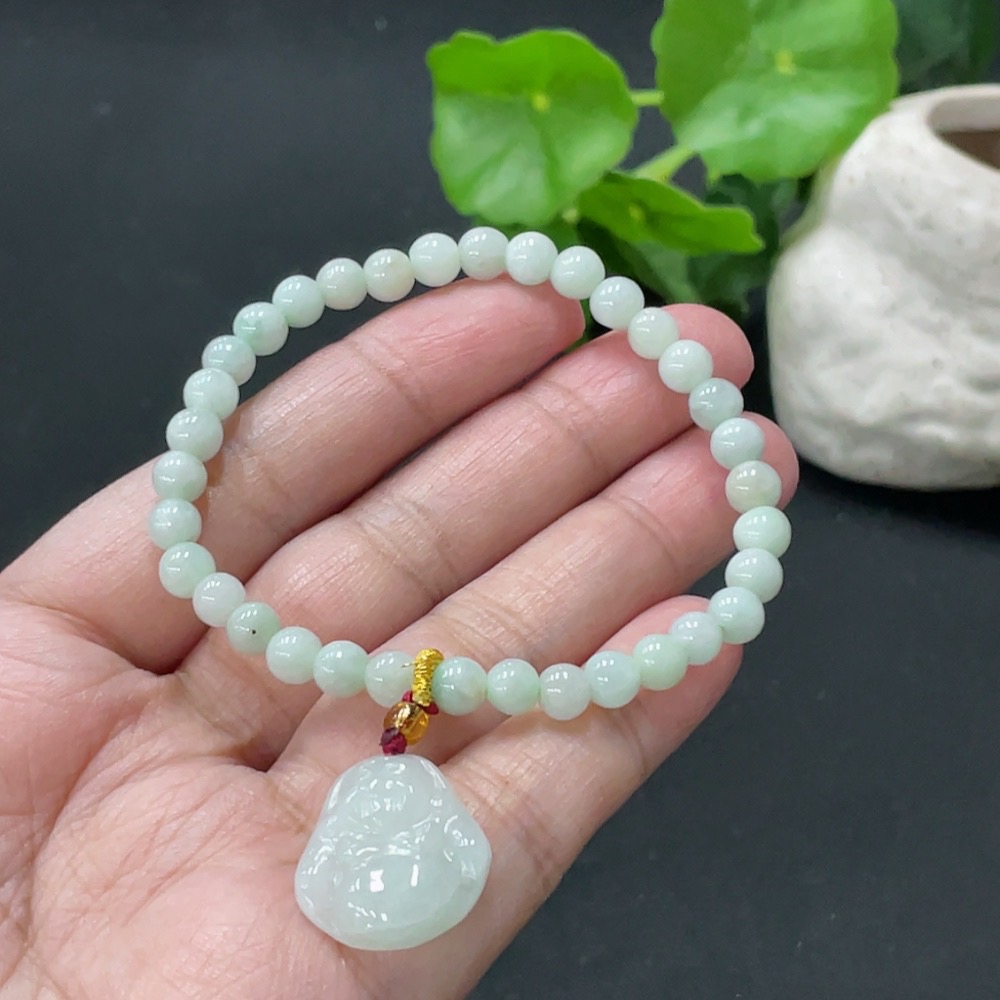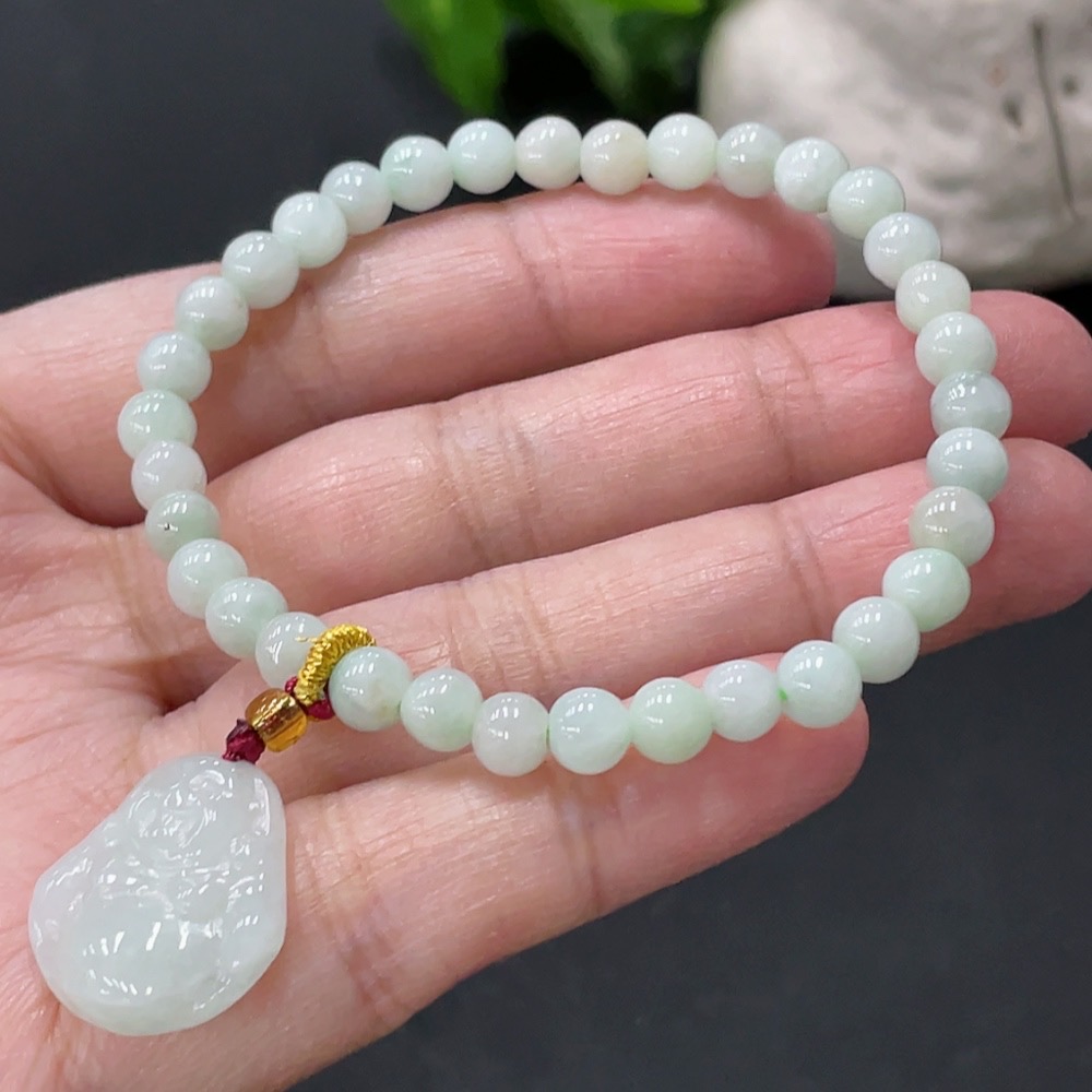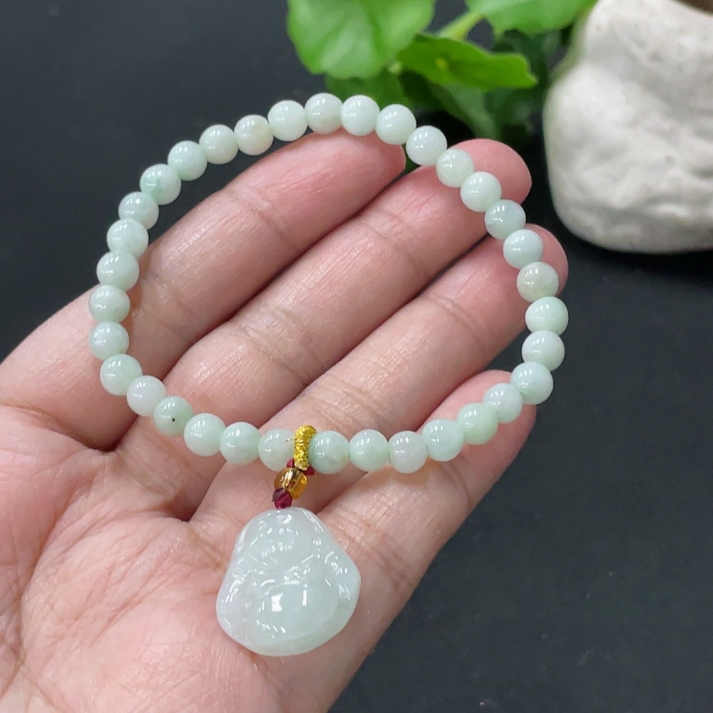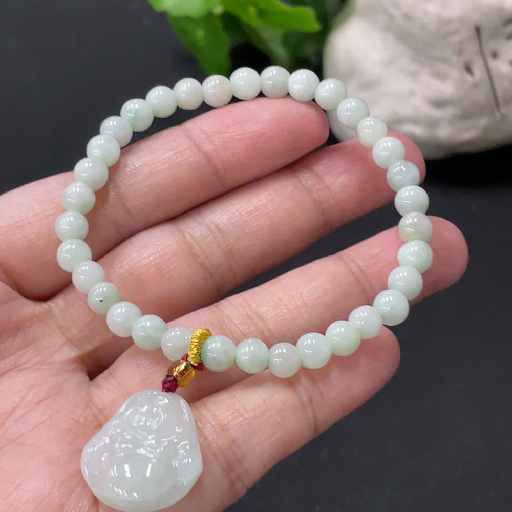 Jadeite Buddha Bead Bracelet, Total Weight Approx. 12.05g