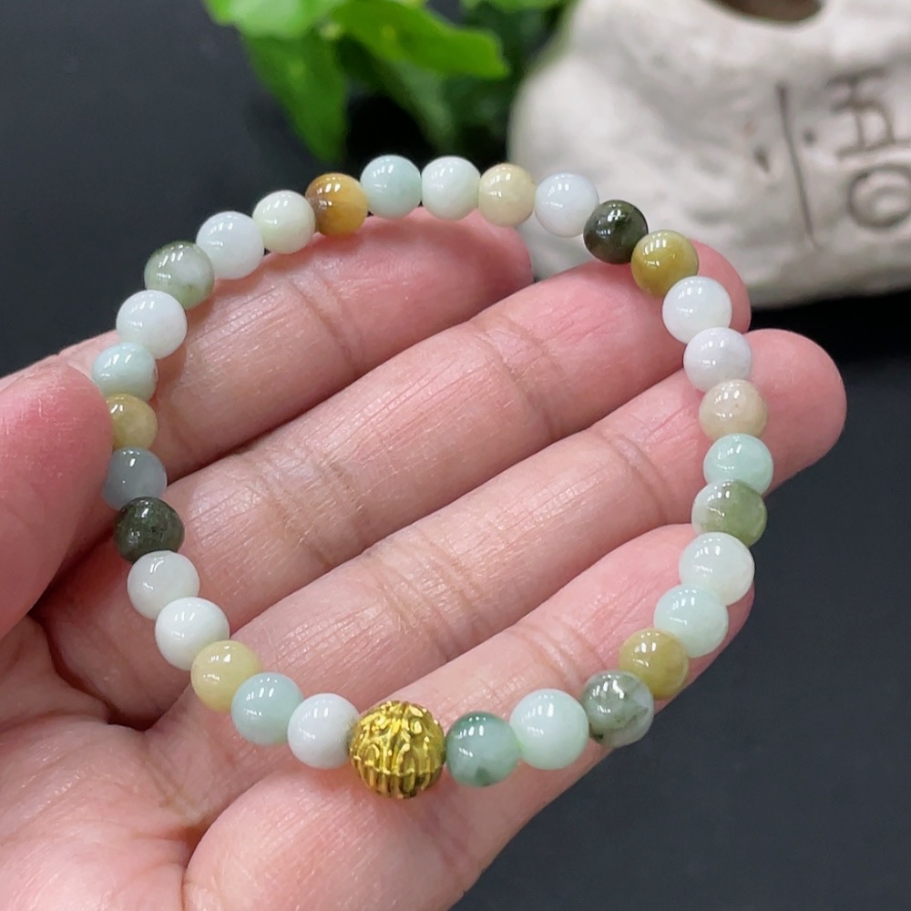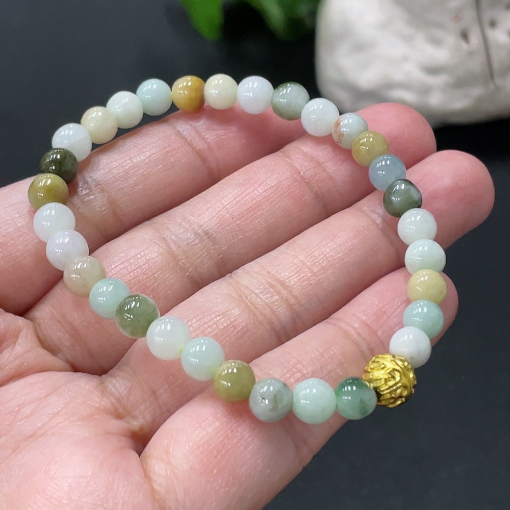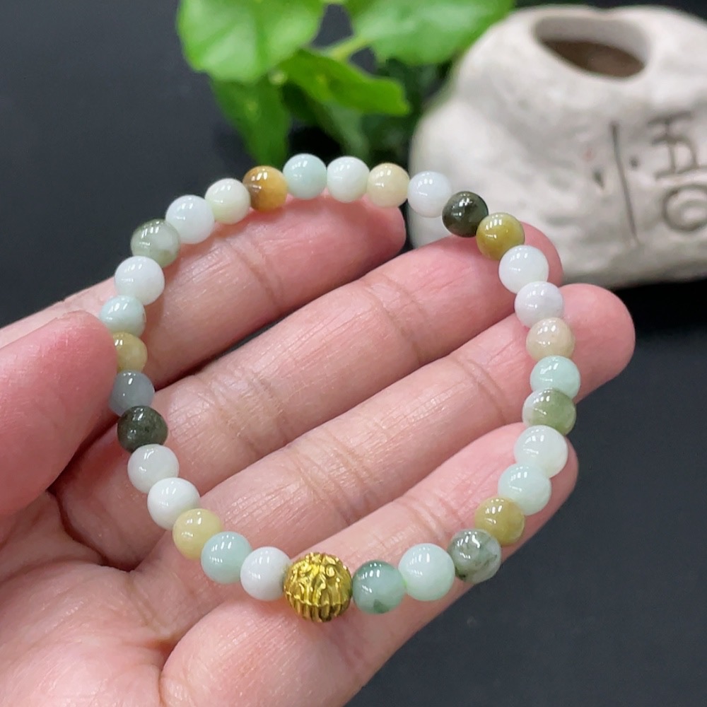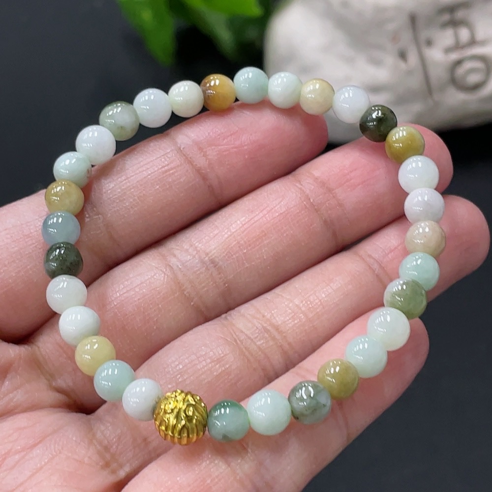 Jadeite Bead Bracelet Approx. 6mm Non-Gold Total Weight About 10.7g