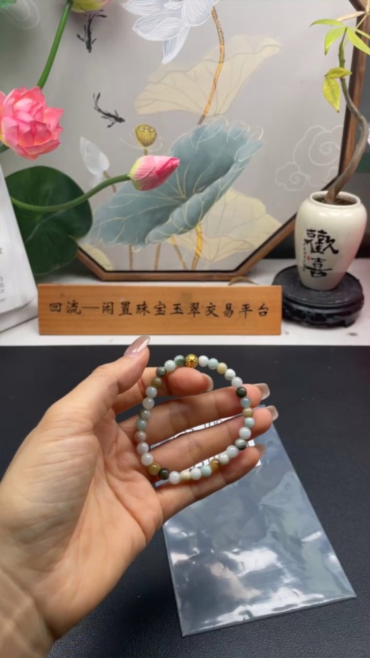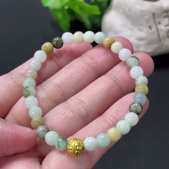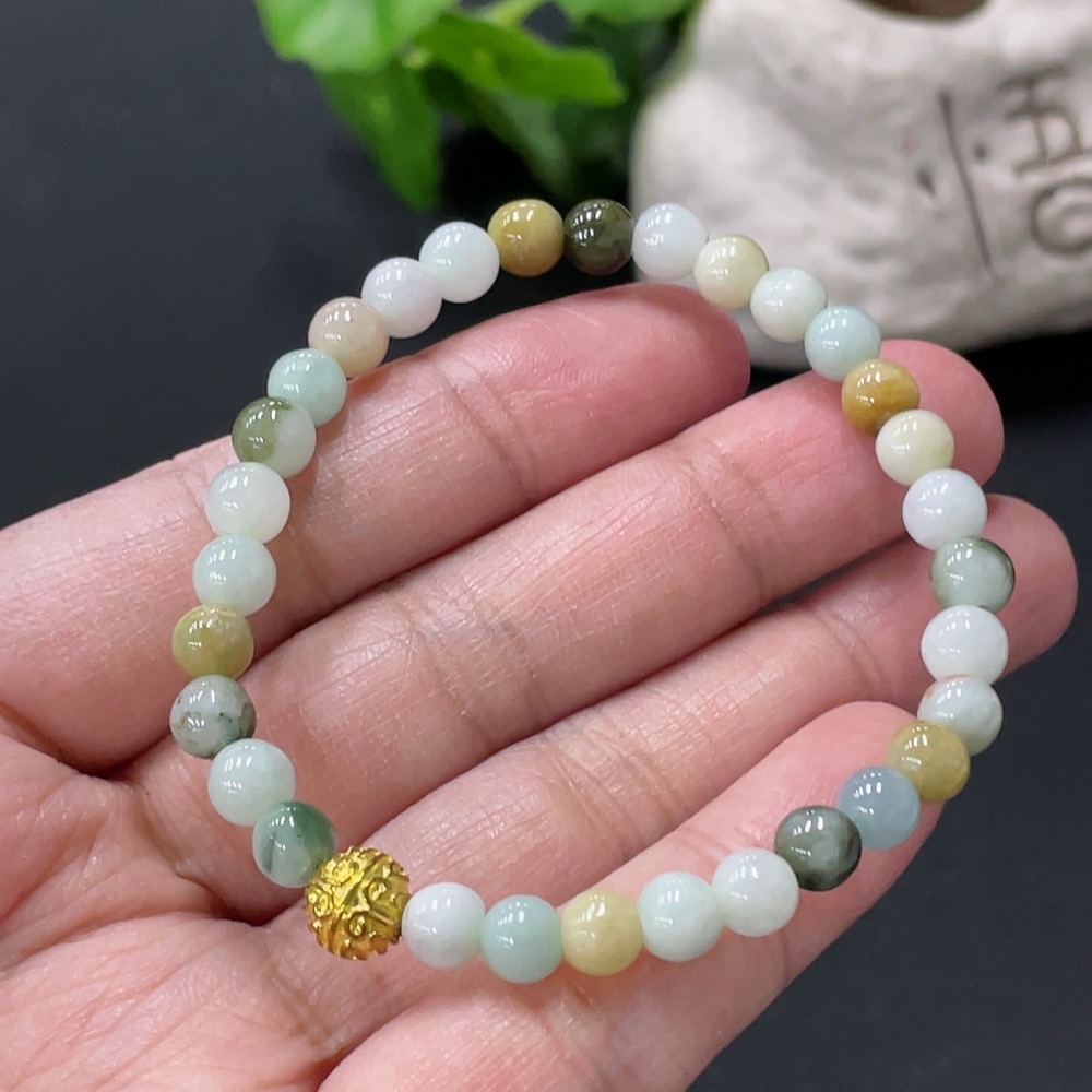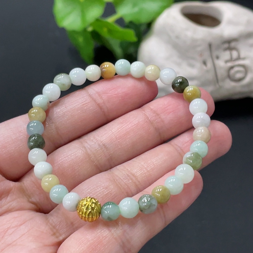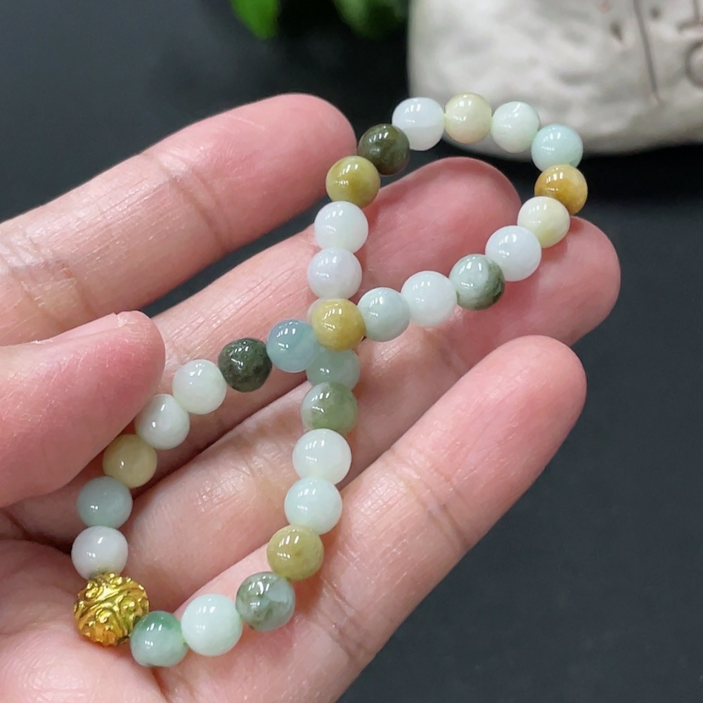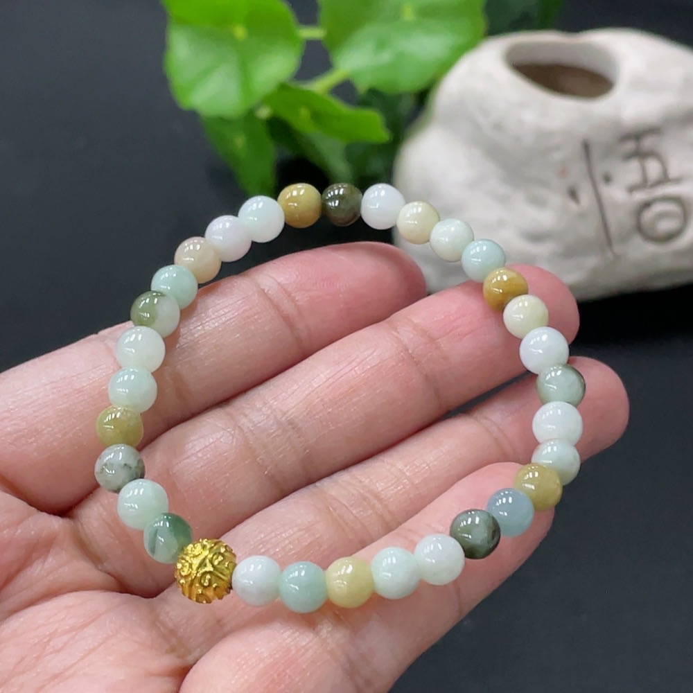 Jadeite Bead Bracelet Approx. 6mm Non-Gold Total Weight About 10.7g