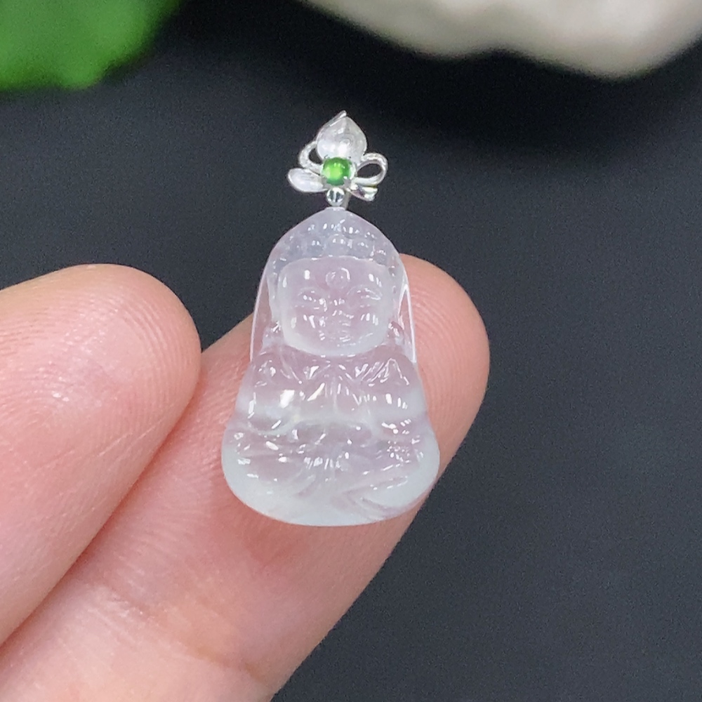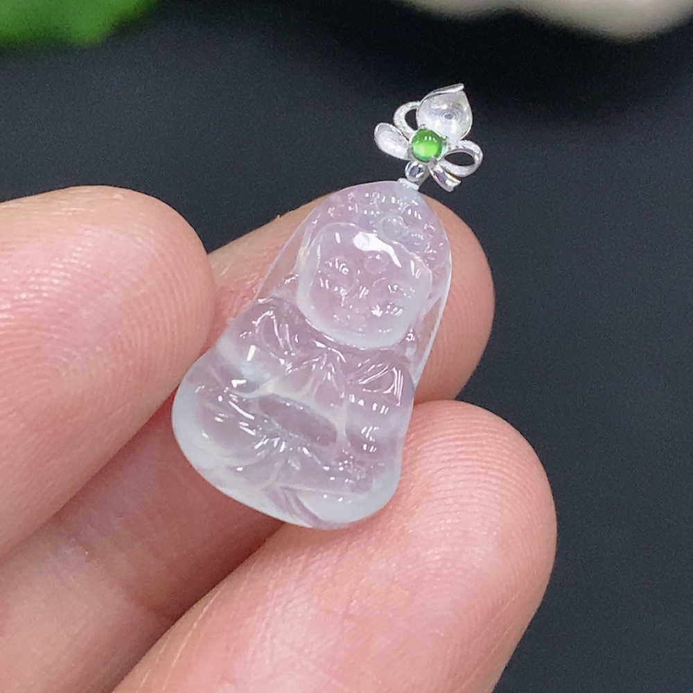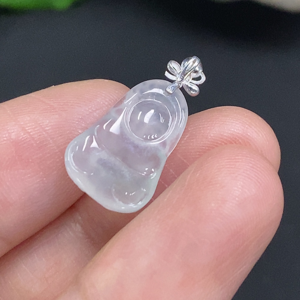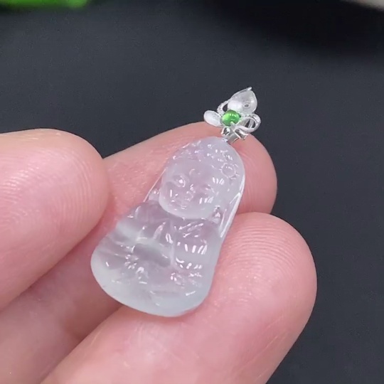 Jadeite Baby Buddha Pendant with 18K Gold Clasp, Total Weight Approximately 1.2 Grams