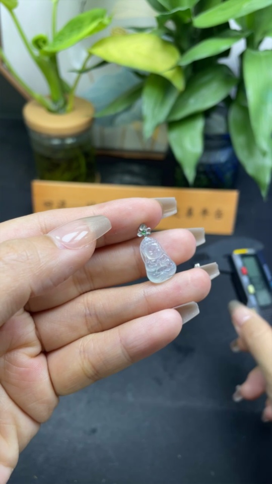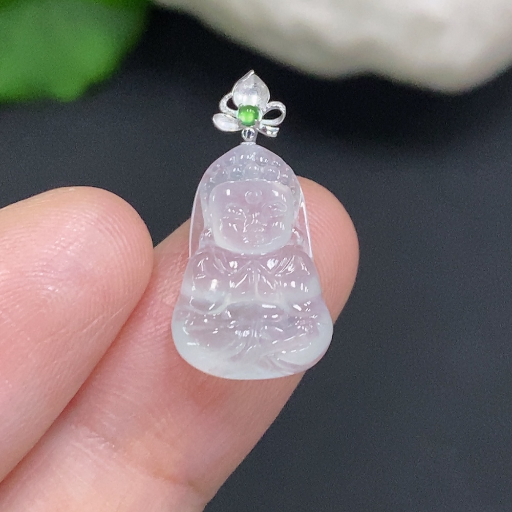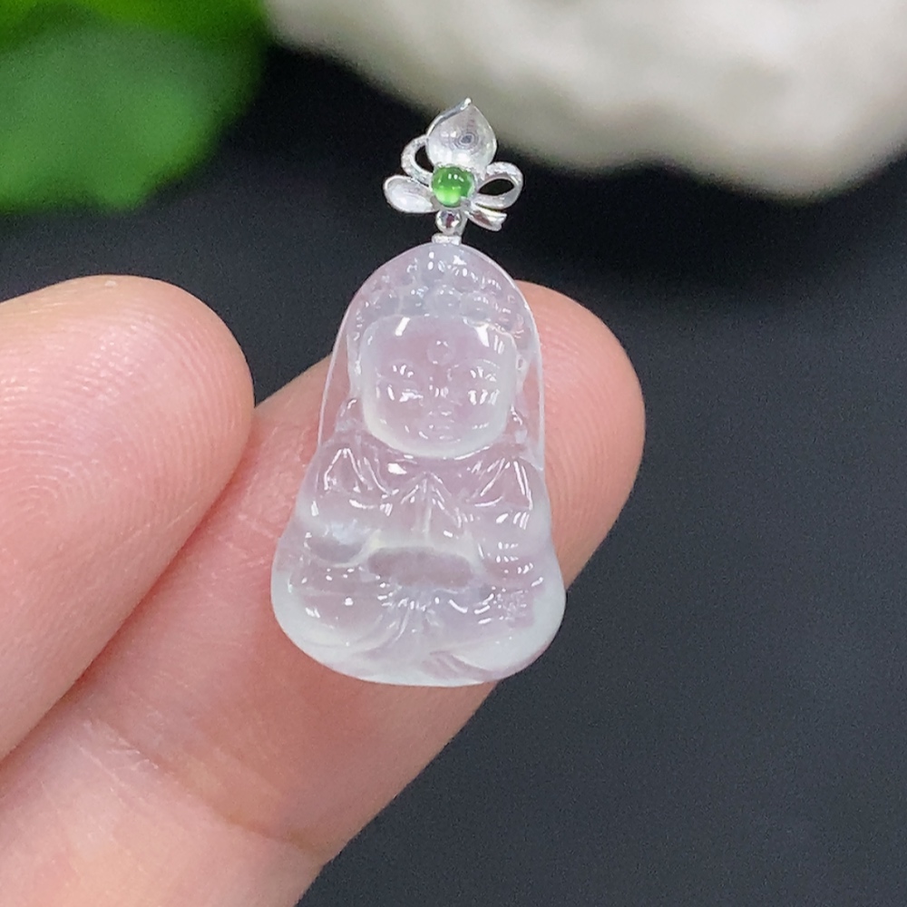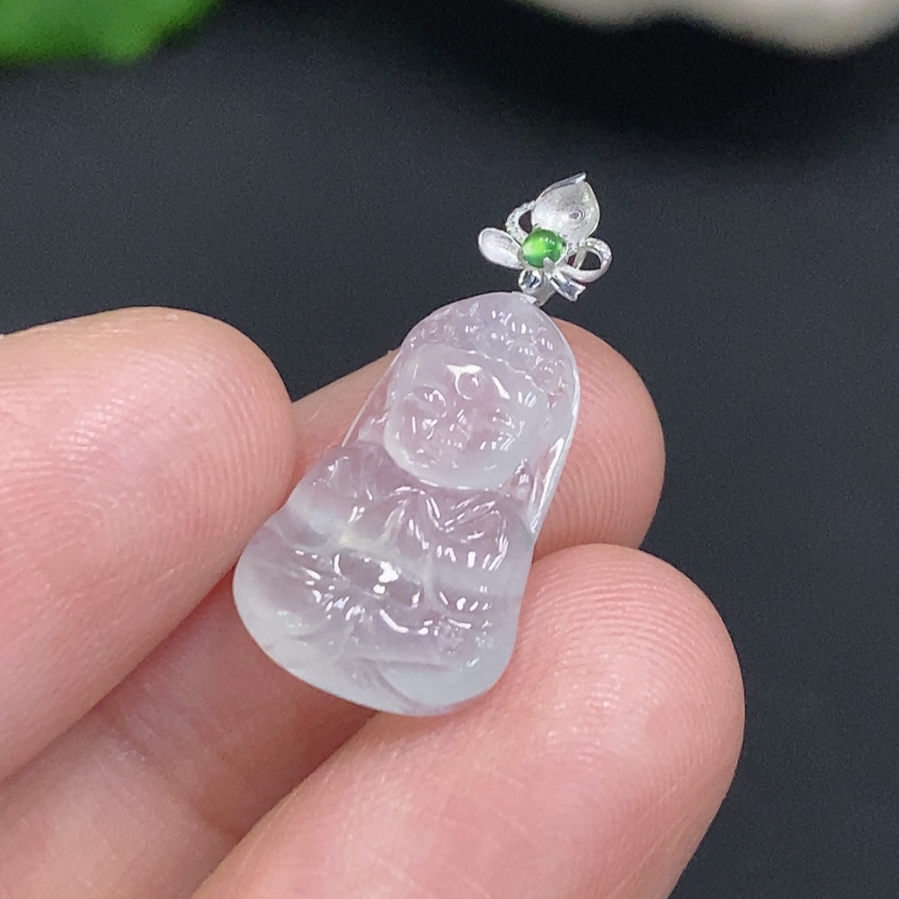 Jadeite Baby Buddha Pendant with 18K Gold Clasp, Total Weight Approximately 1.2 Grams
