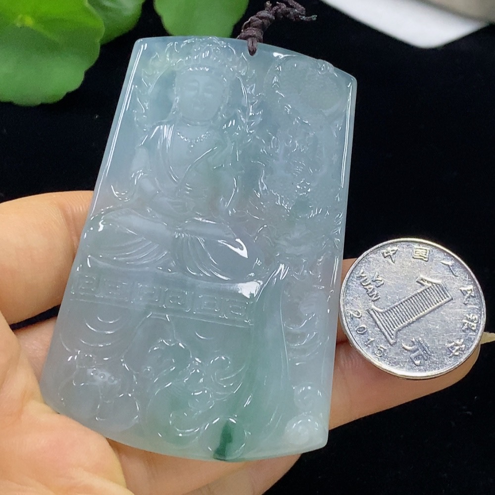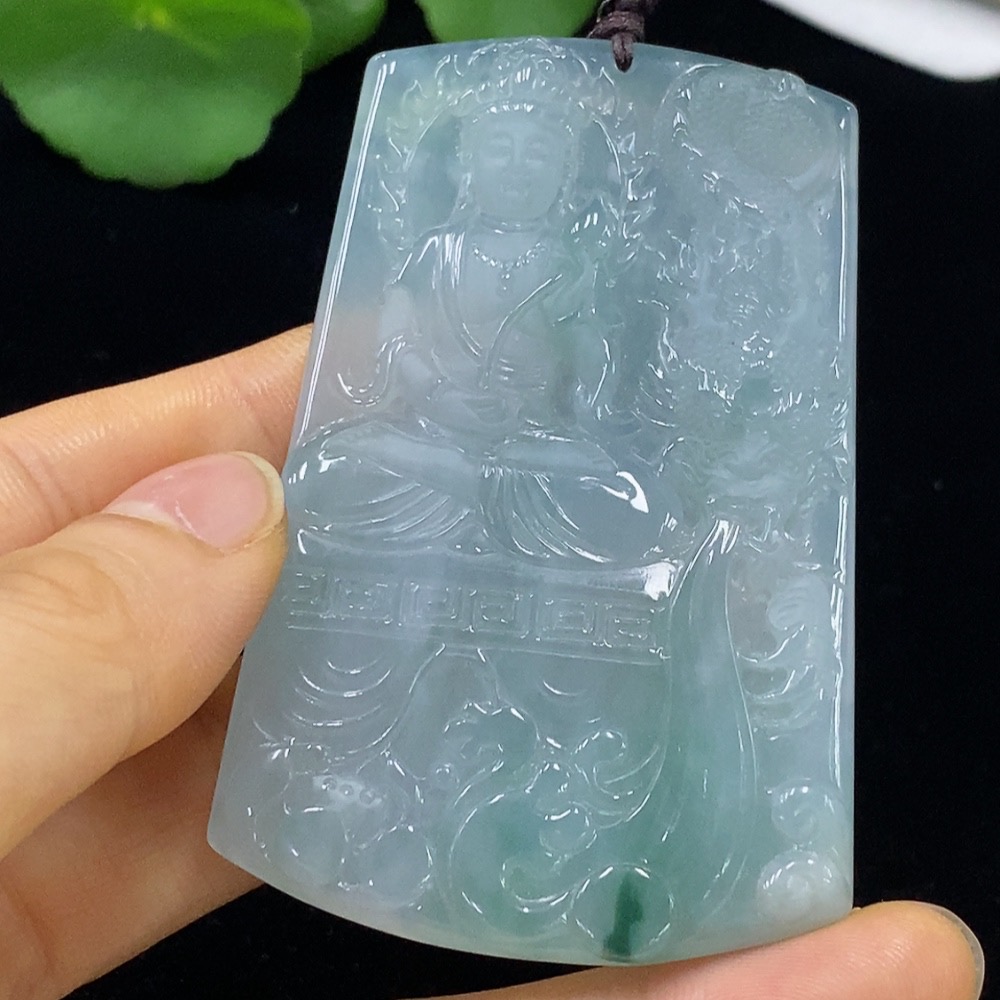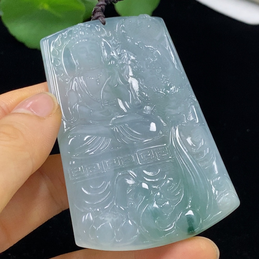 Jadeite Dragon-Riding Guanyin Pendant