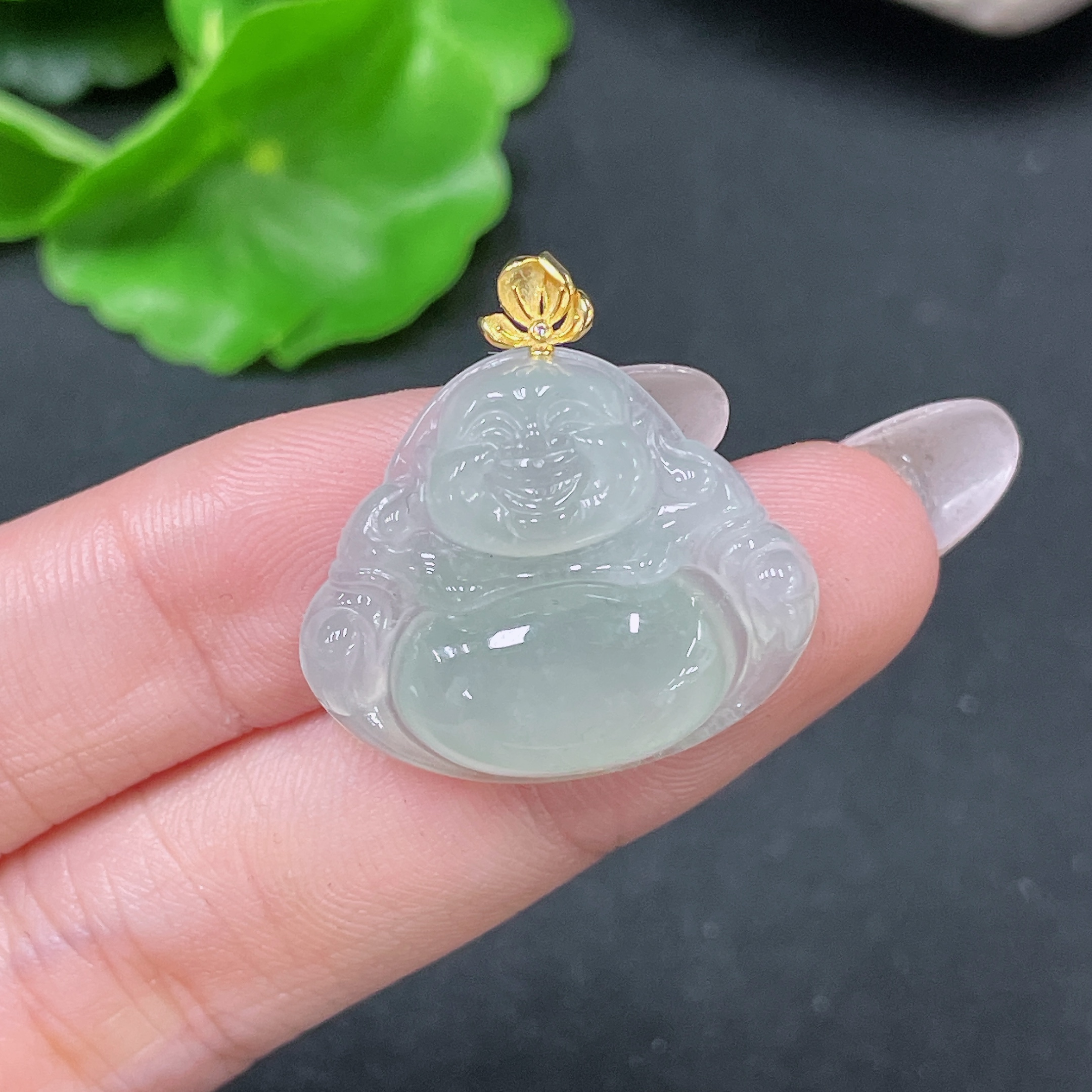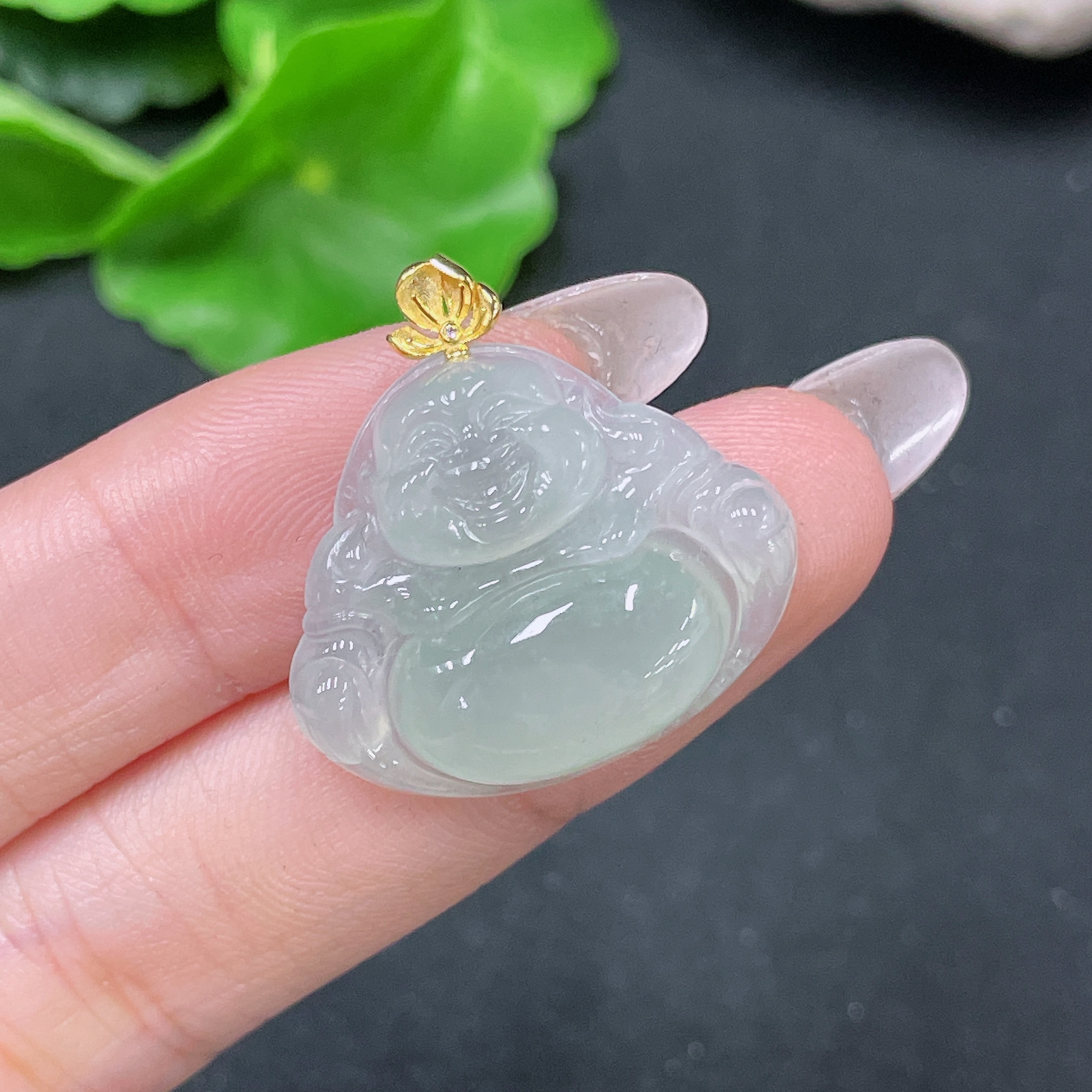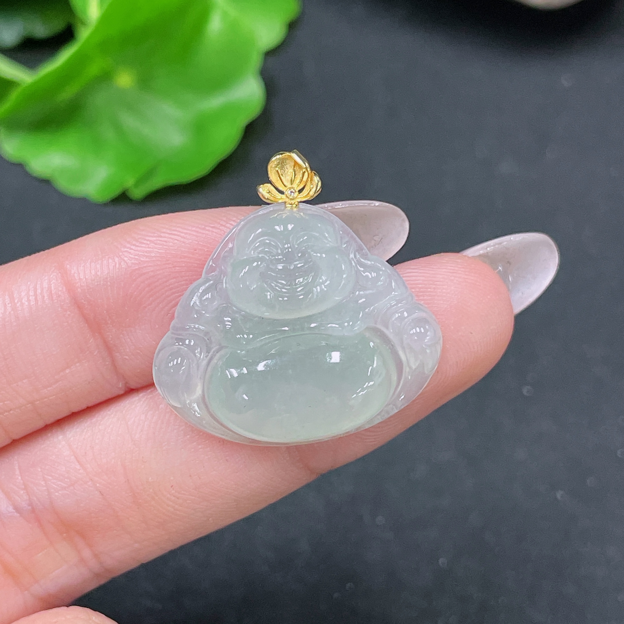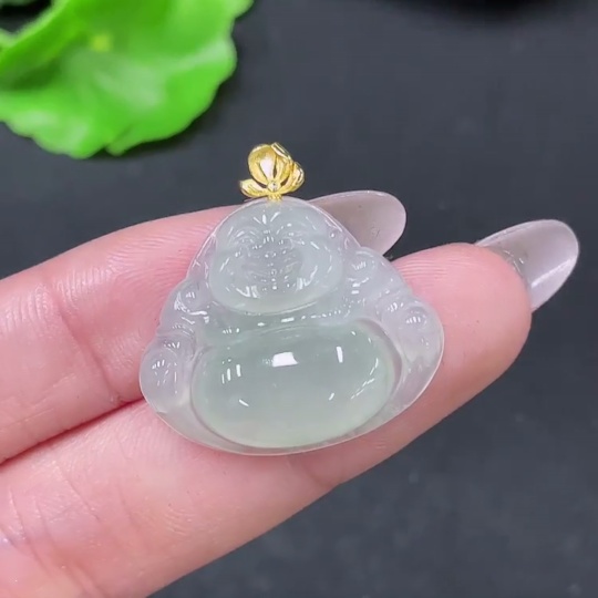 Jadeite Pendant Buddha with 18k Bezel Total Weight Approx. 4.56g