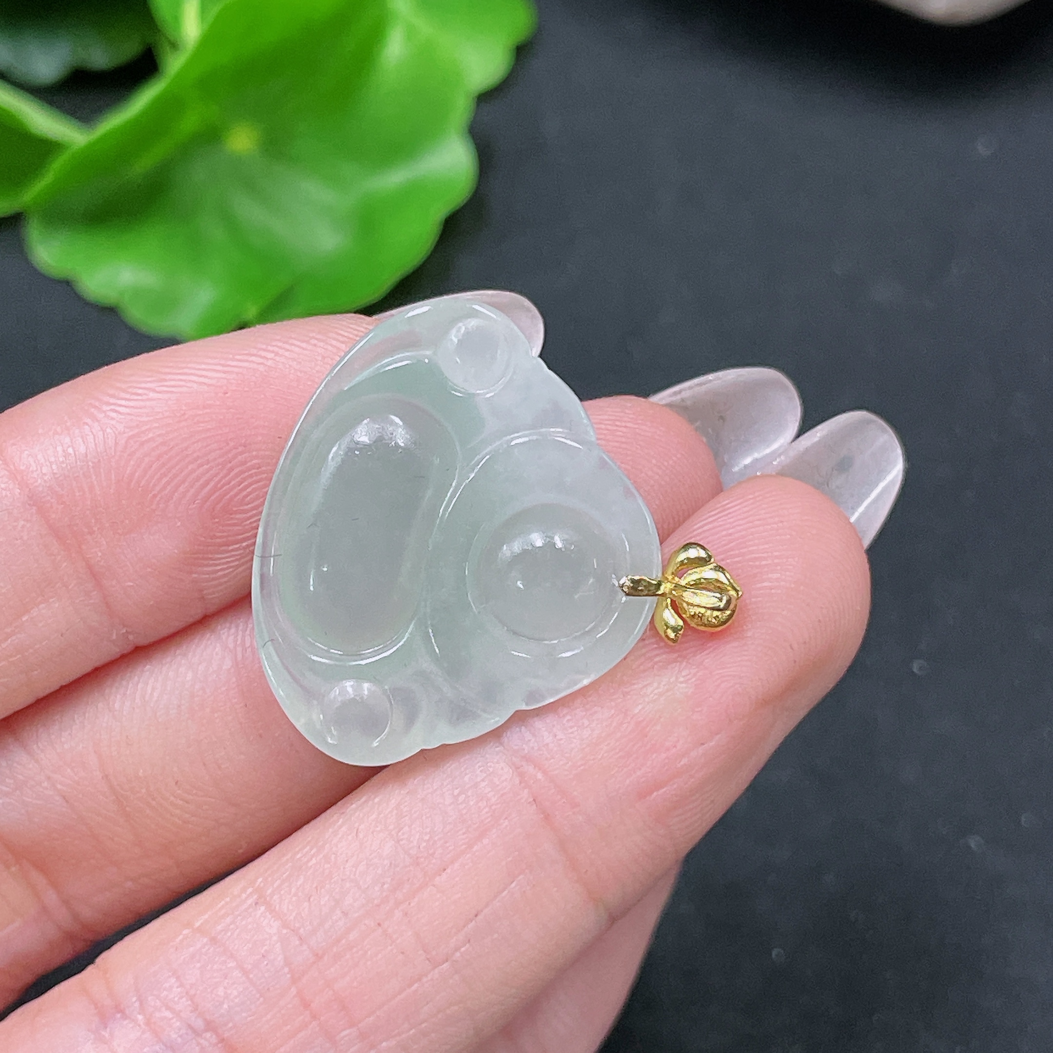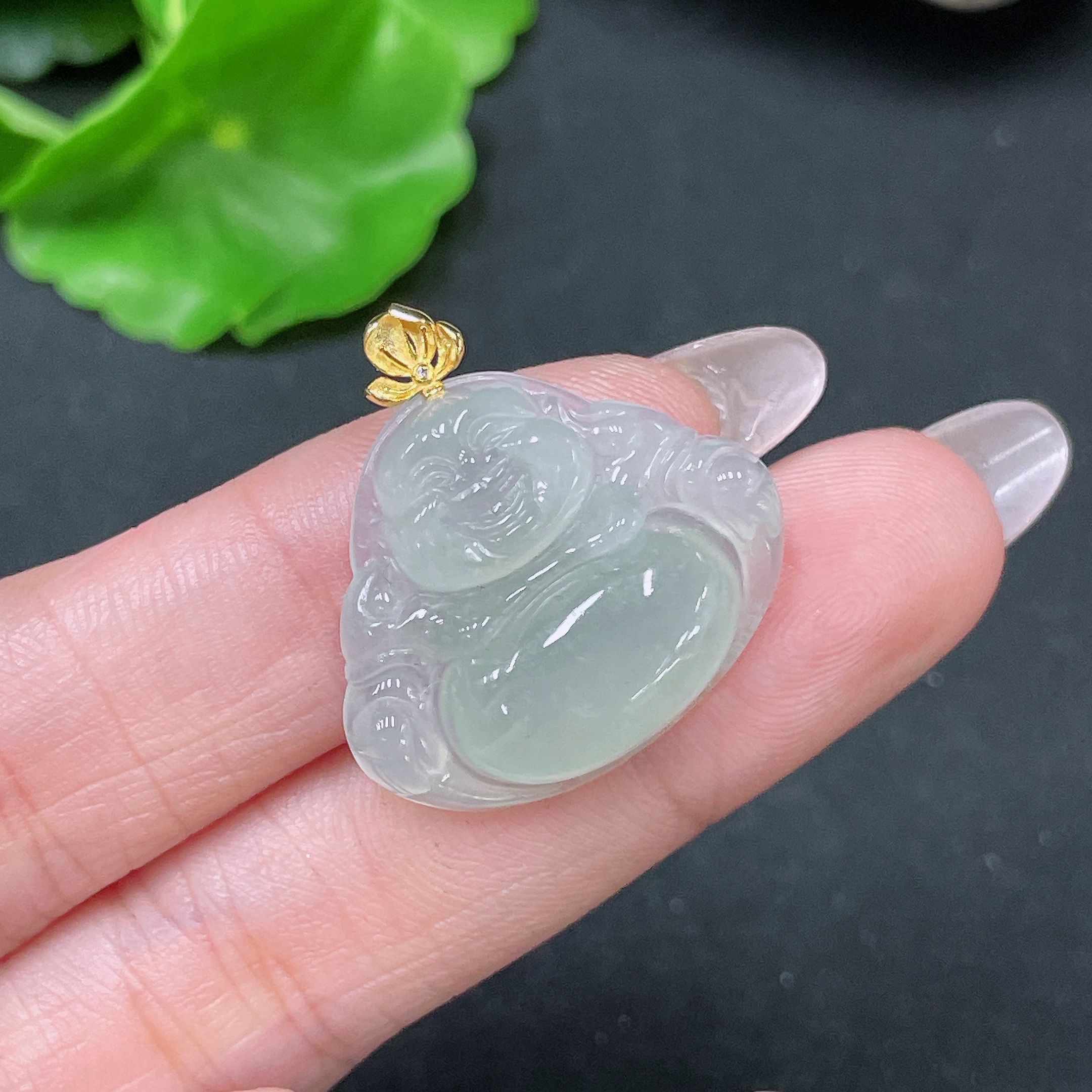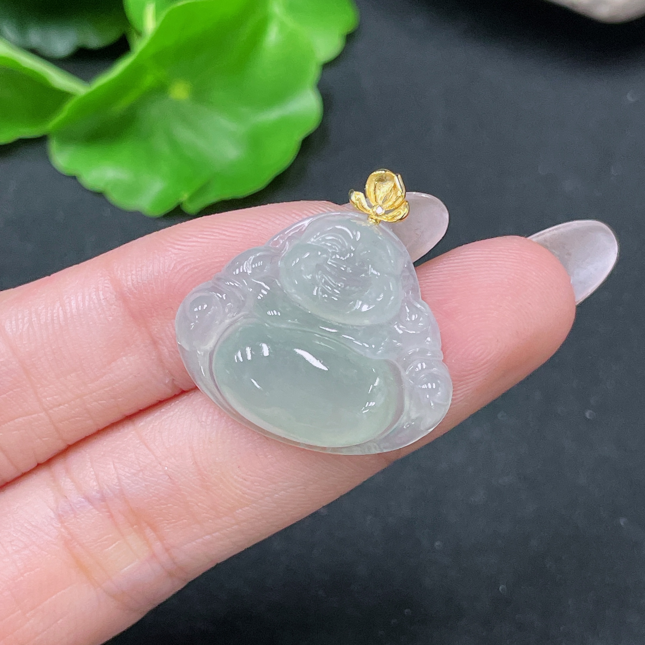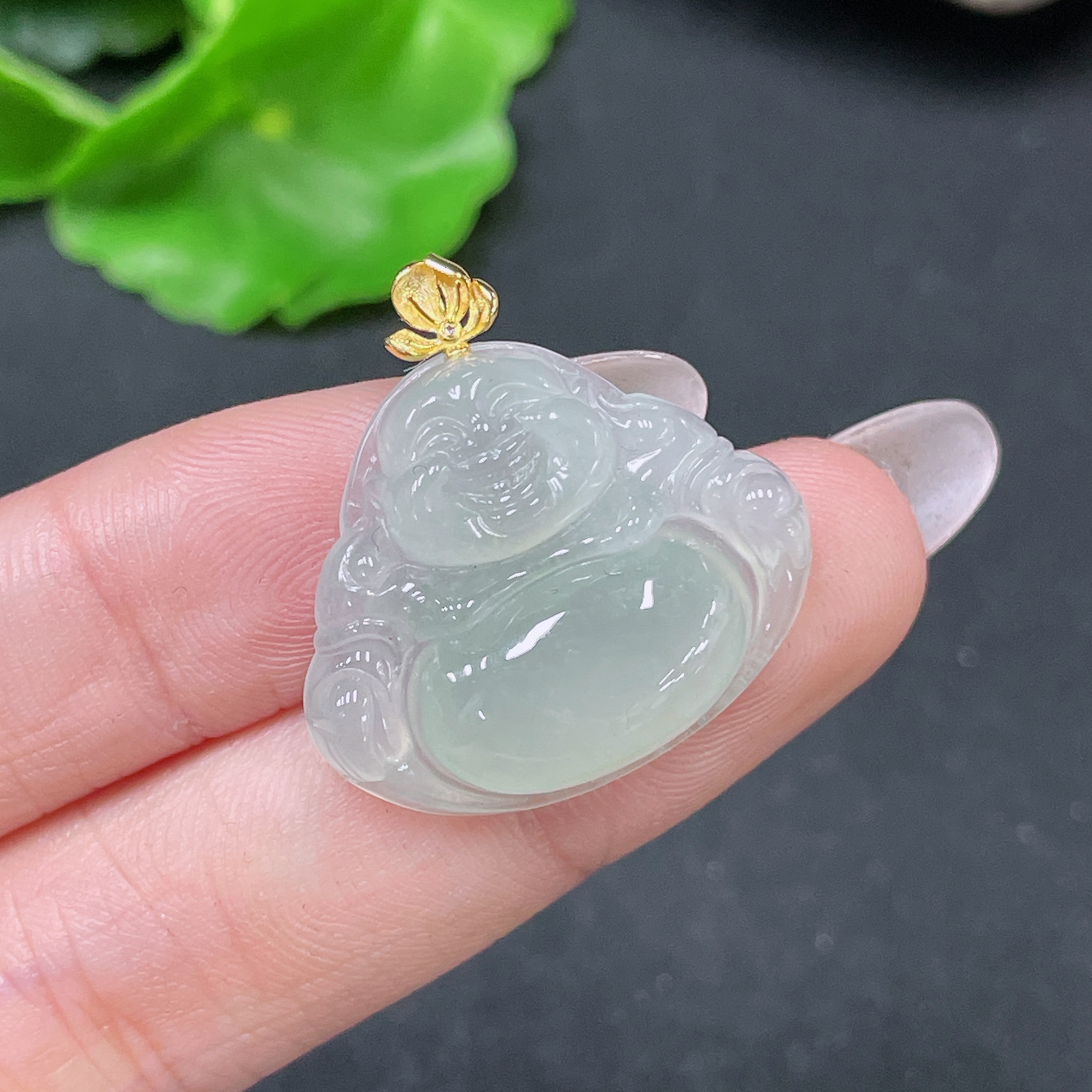 Jadeite Pendant Buddha with 18k Bezel Total Weight Approx. 4.56g