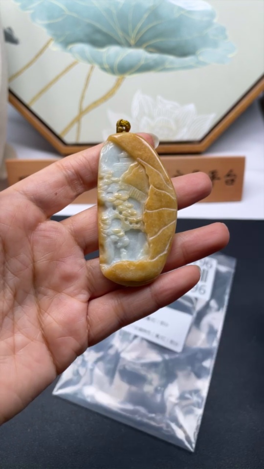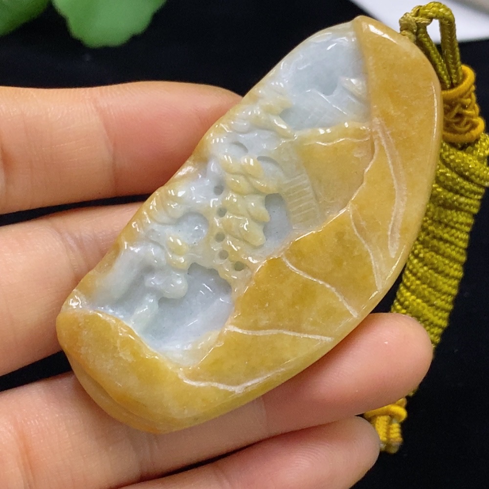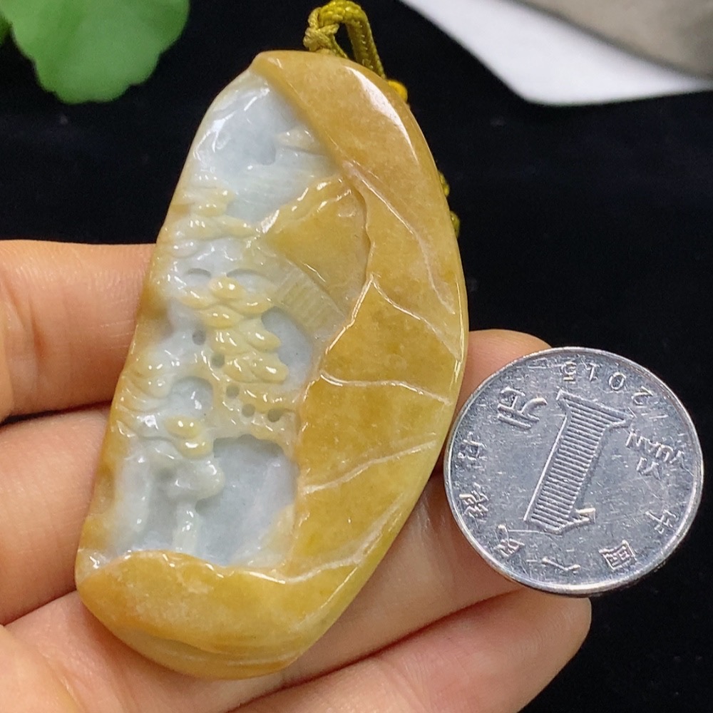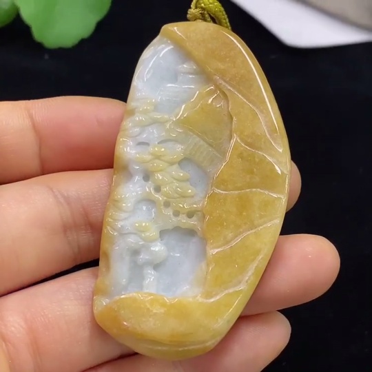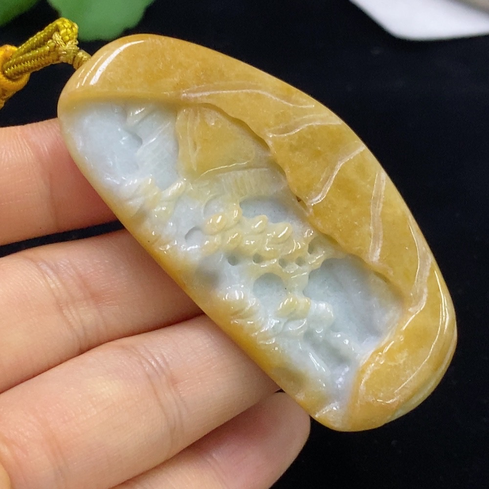Jadeite Landscape Pendant Total Weight Approx. 34.59g (including rope weight)
