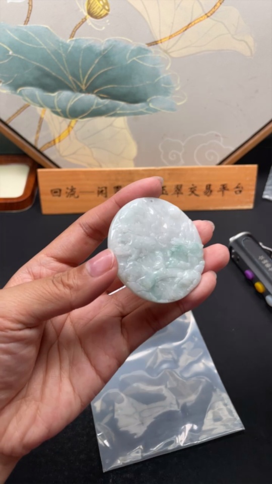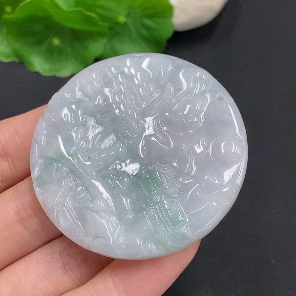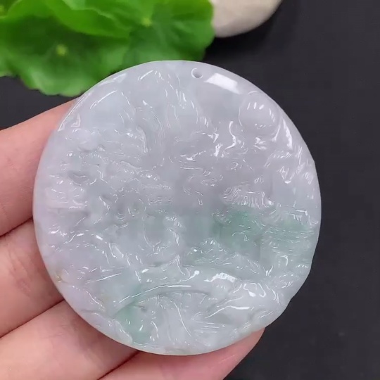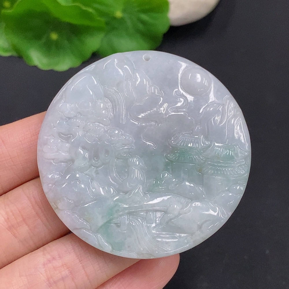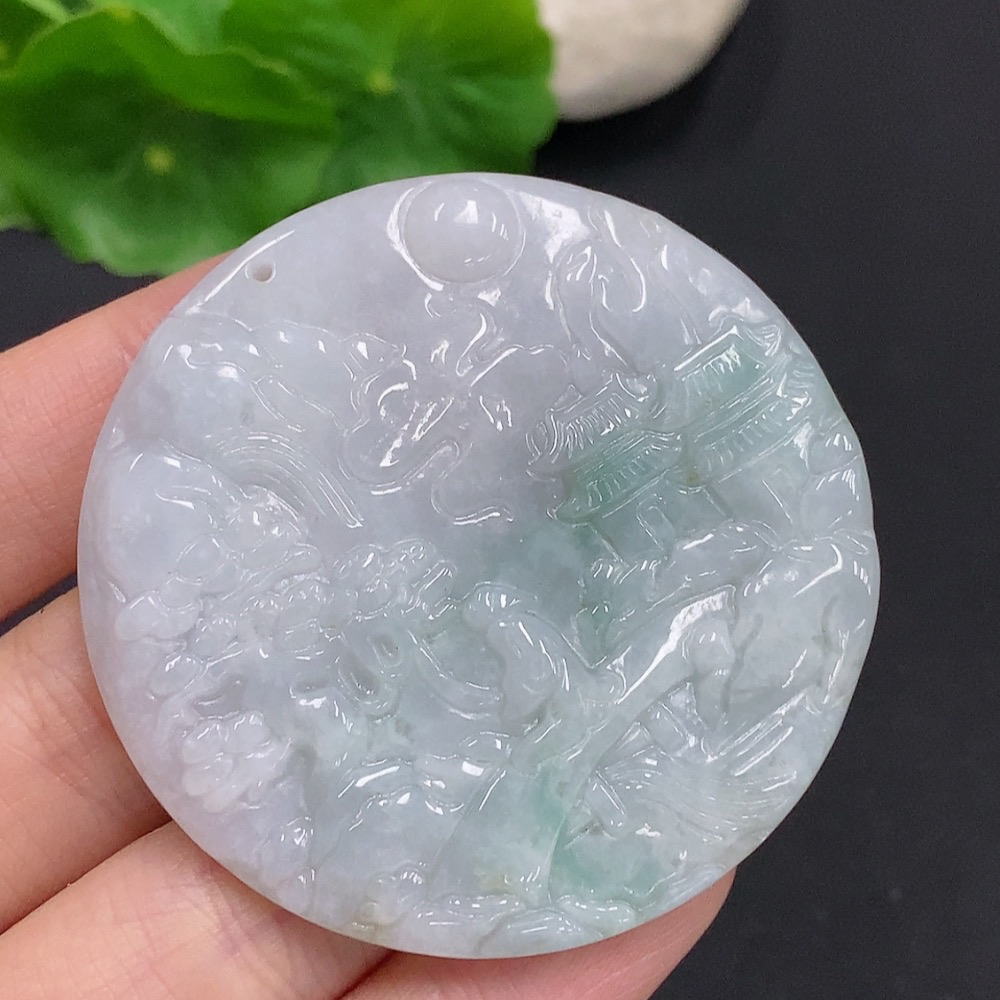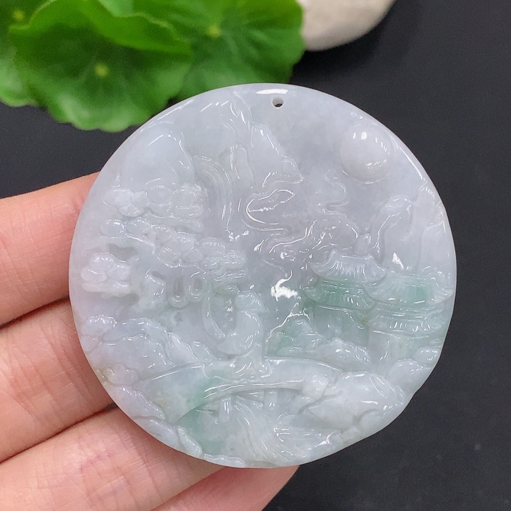 Jadeite Landscape Pendant, Total Weight Approximately 32.3g