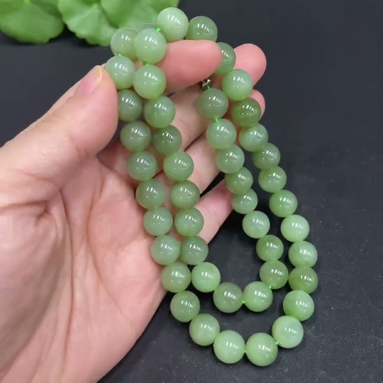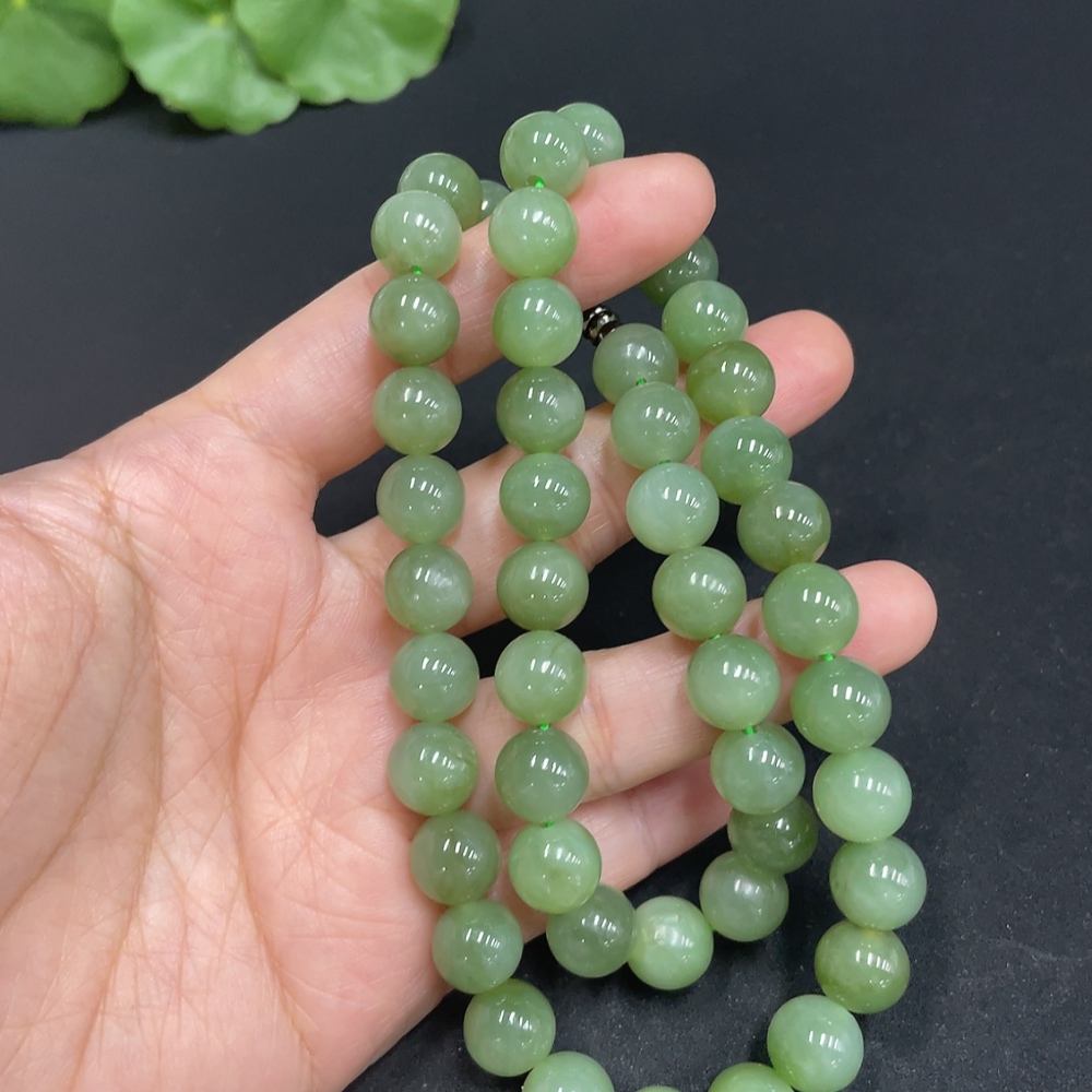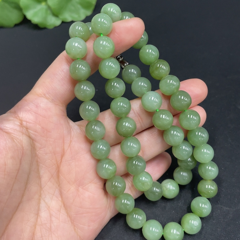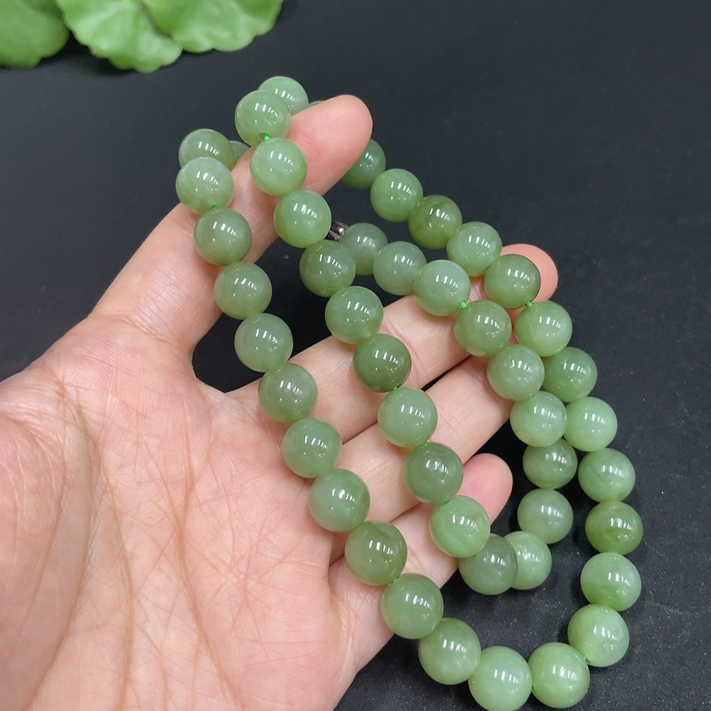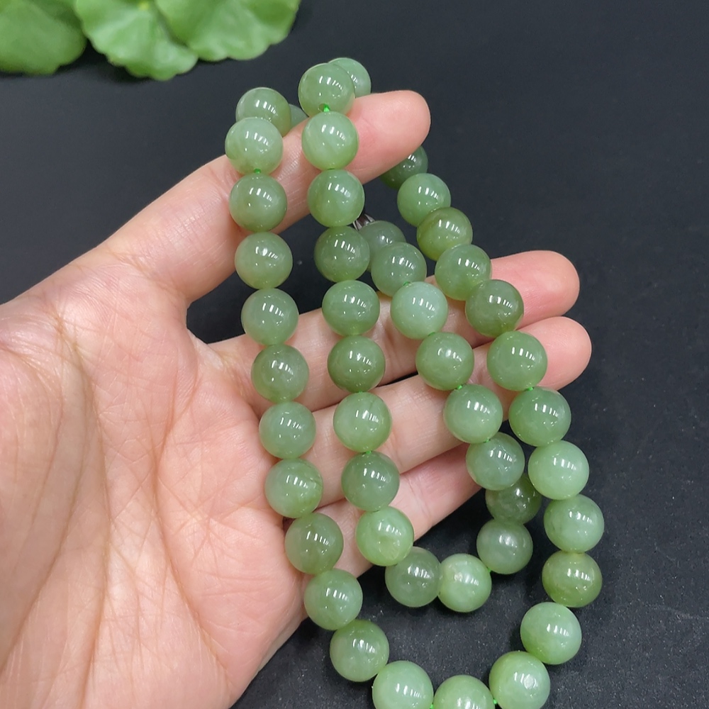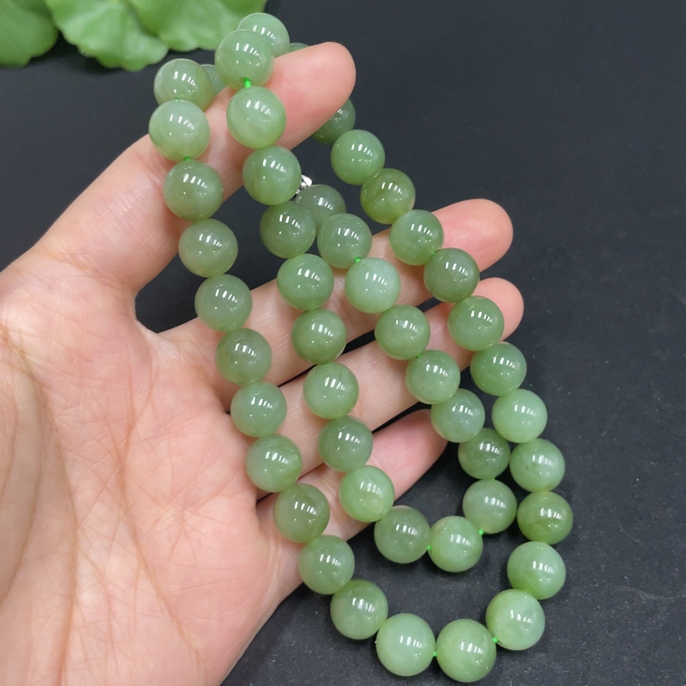 Hetian Jade Bead Necklace, Approx. 9.3mm, Total Weight Approx. 65.9g
