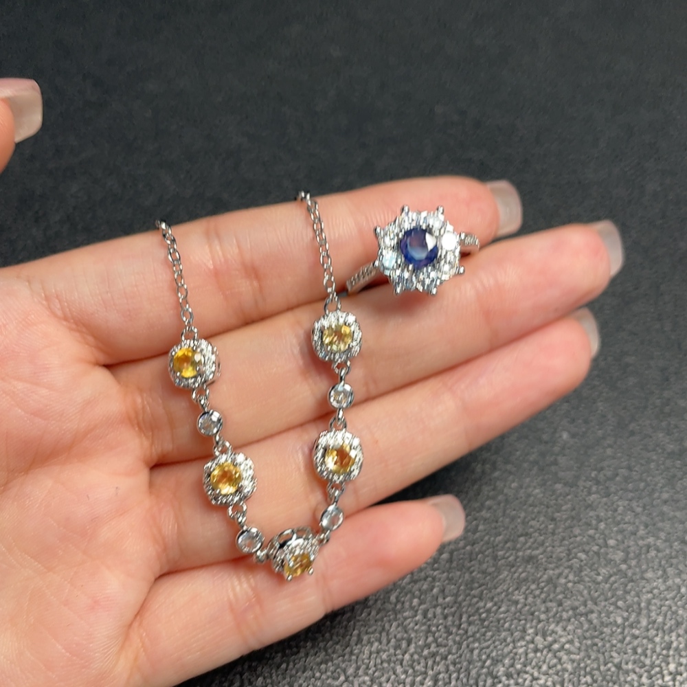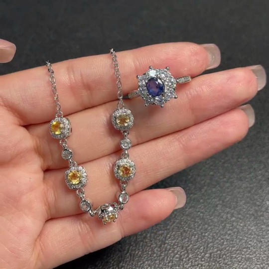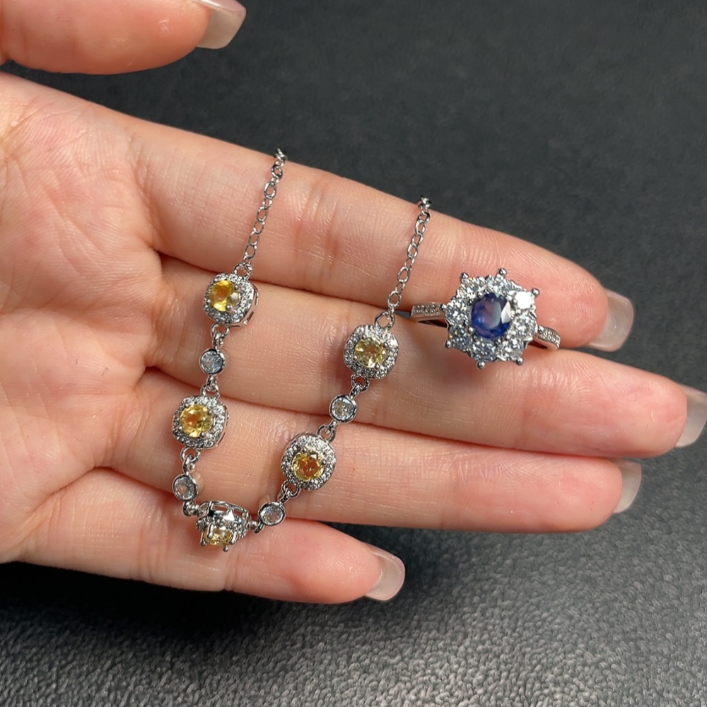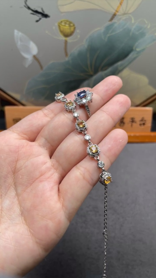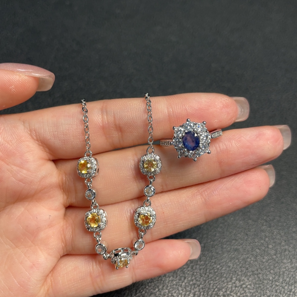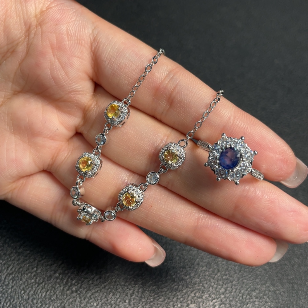 Crystal Bracelet + Sapphire Ring (Adjustable, Non-Gold) Total Weight Approx. 7.54g Sell as a Lot