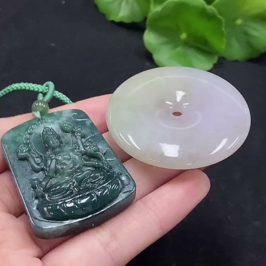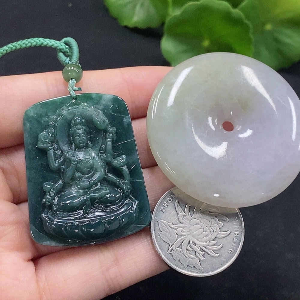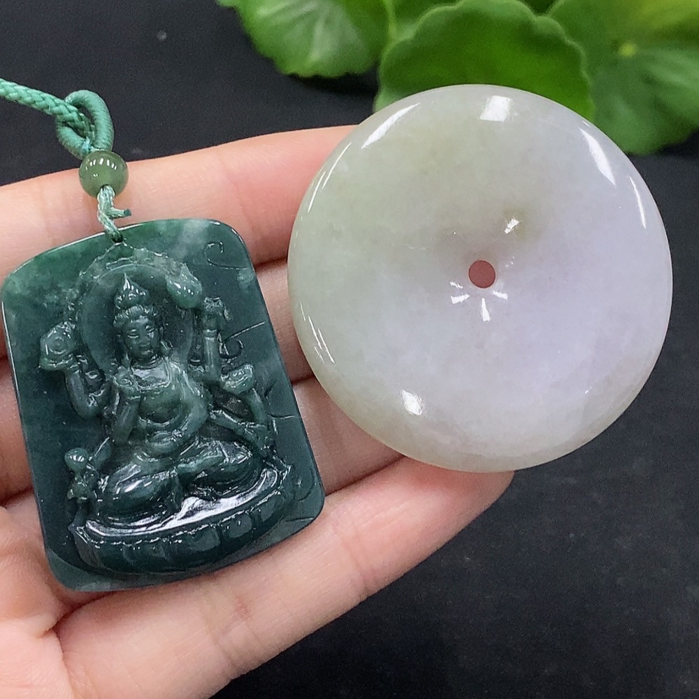 Jadeite Safety Buckle/Thousand-Hand Guanyin Pendant