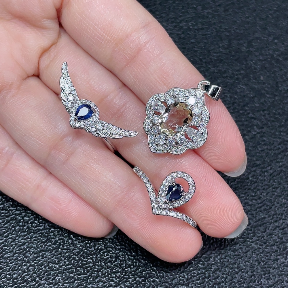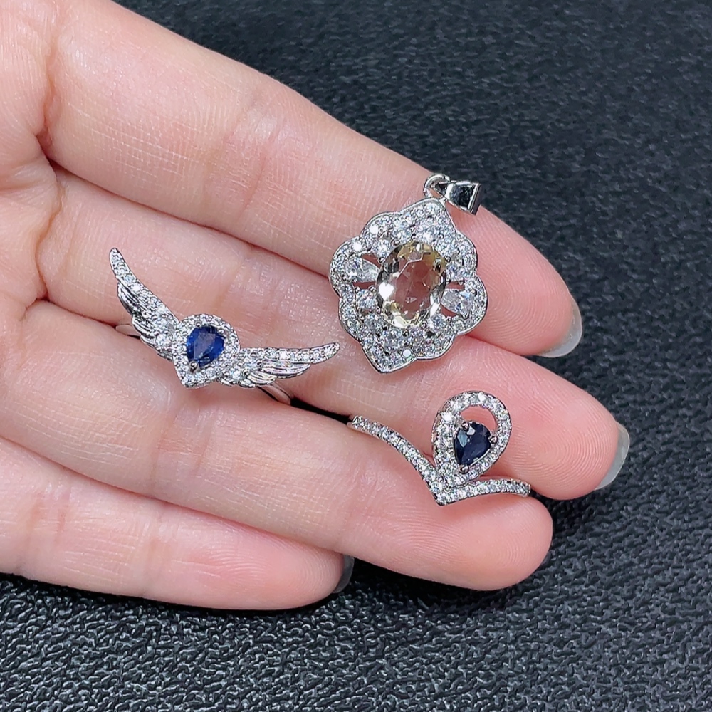Sapphire + Crystal Jewelry Non-Gold Total Weight Approx. 6.34g Sell as a Lot