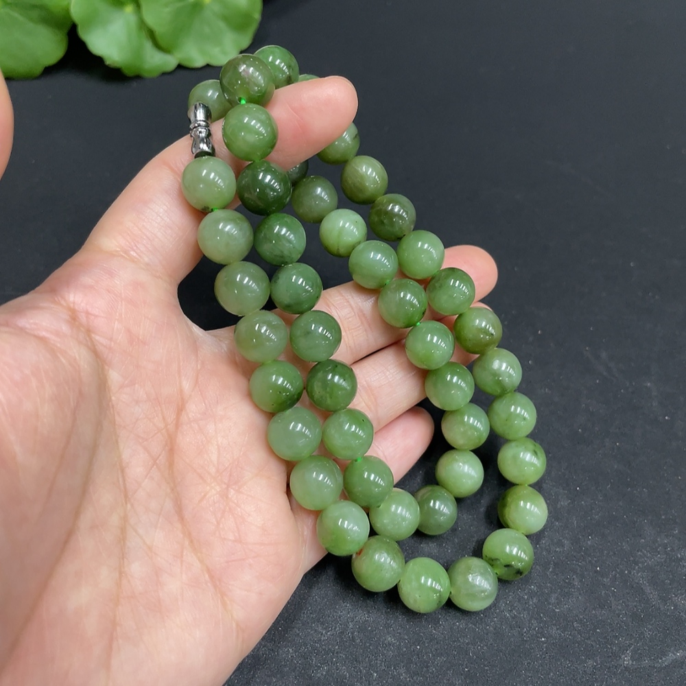 Hetian Jade Jasper Beaded Necklace, approx. 9.6mm, total weight approx. 71.3g