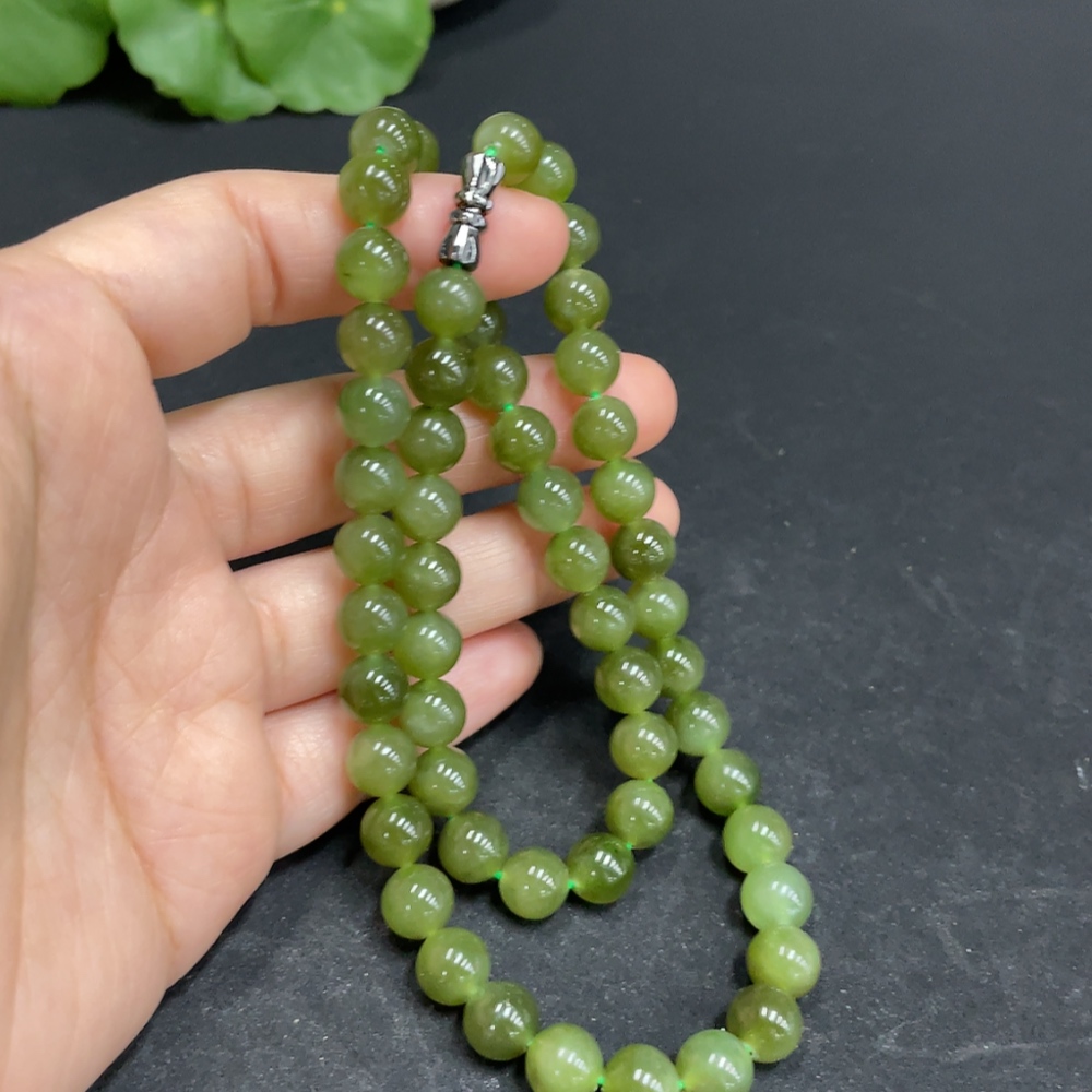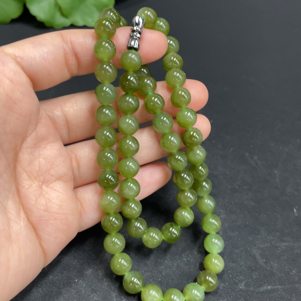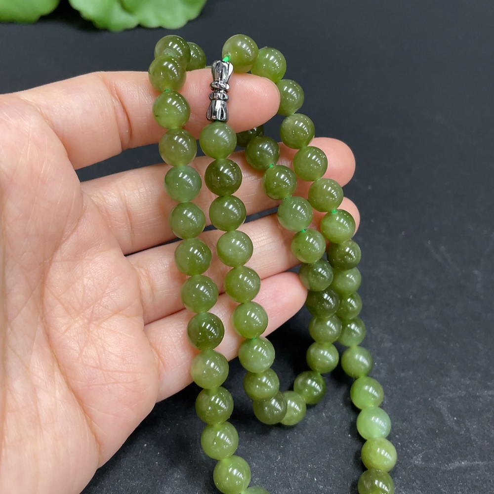 Hetian Jade Bead Necklace, approx. 7.8mm, total weight about 42.5g