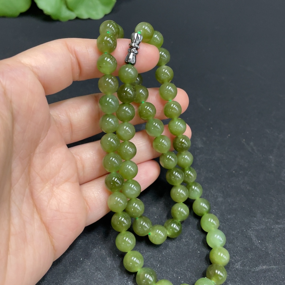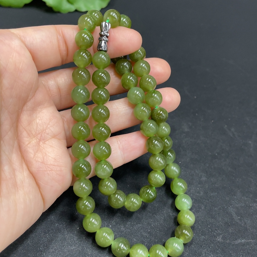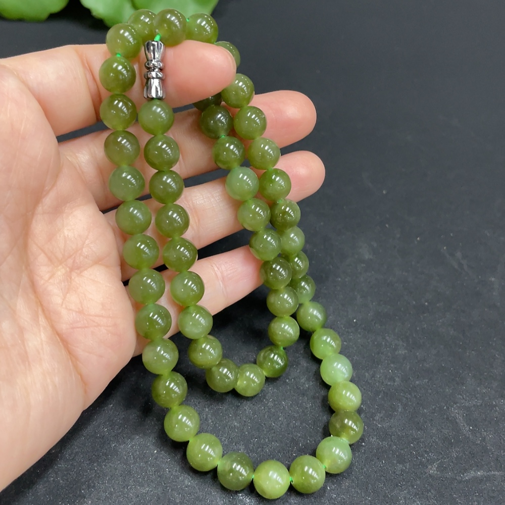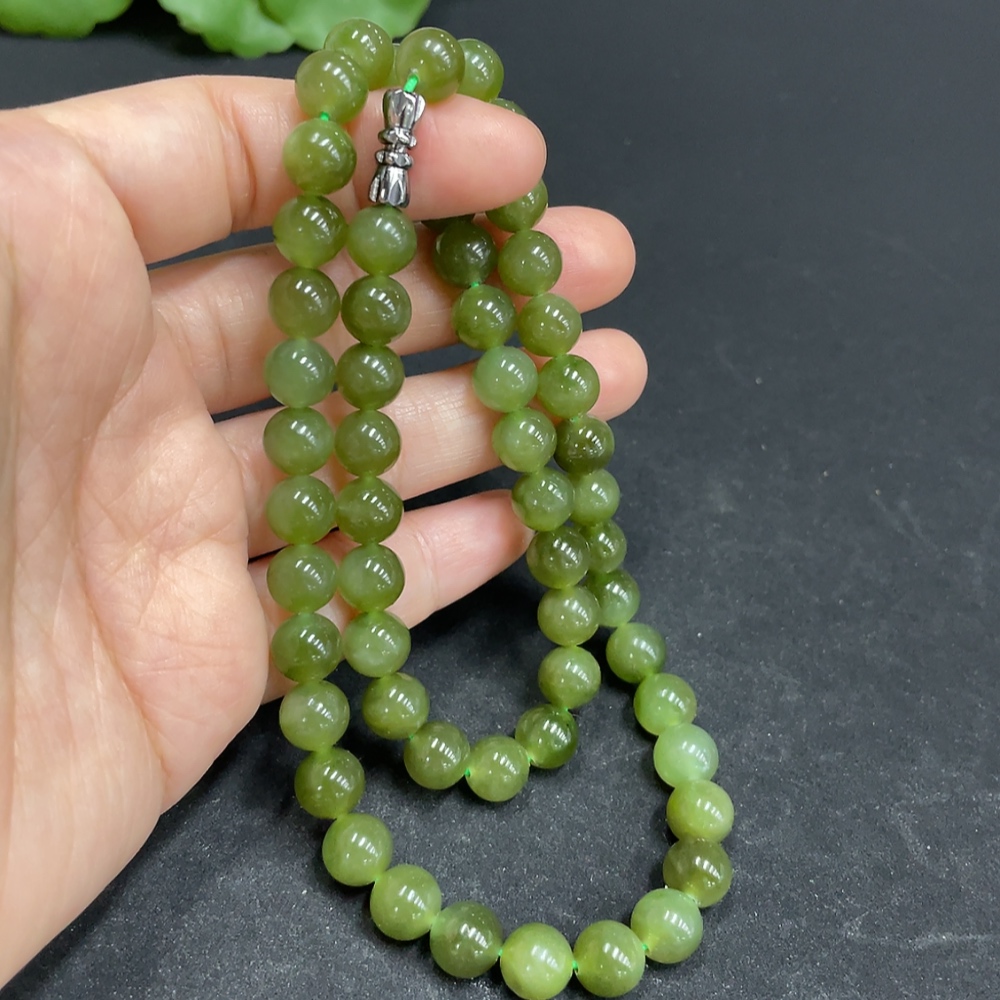 Hetian Jade Bead Necklace, approx. 7.8mm, total weight about 42.5g