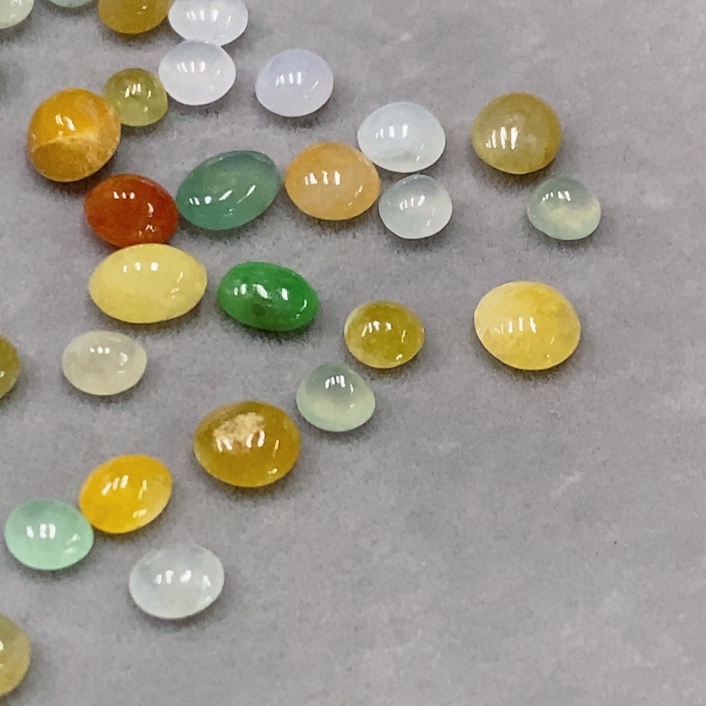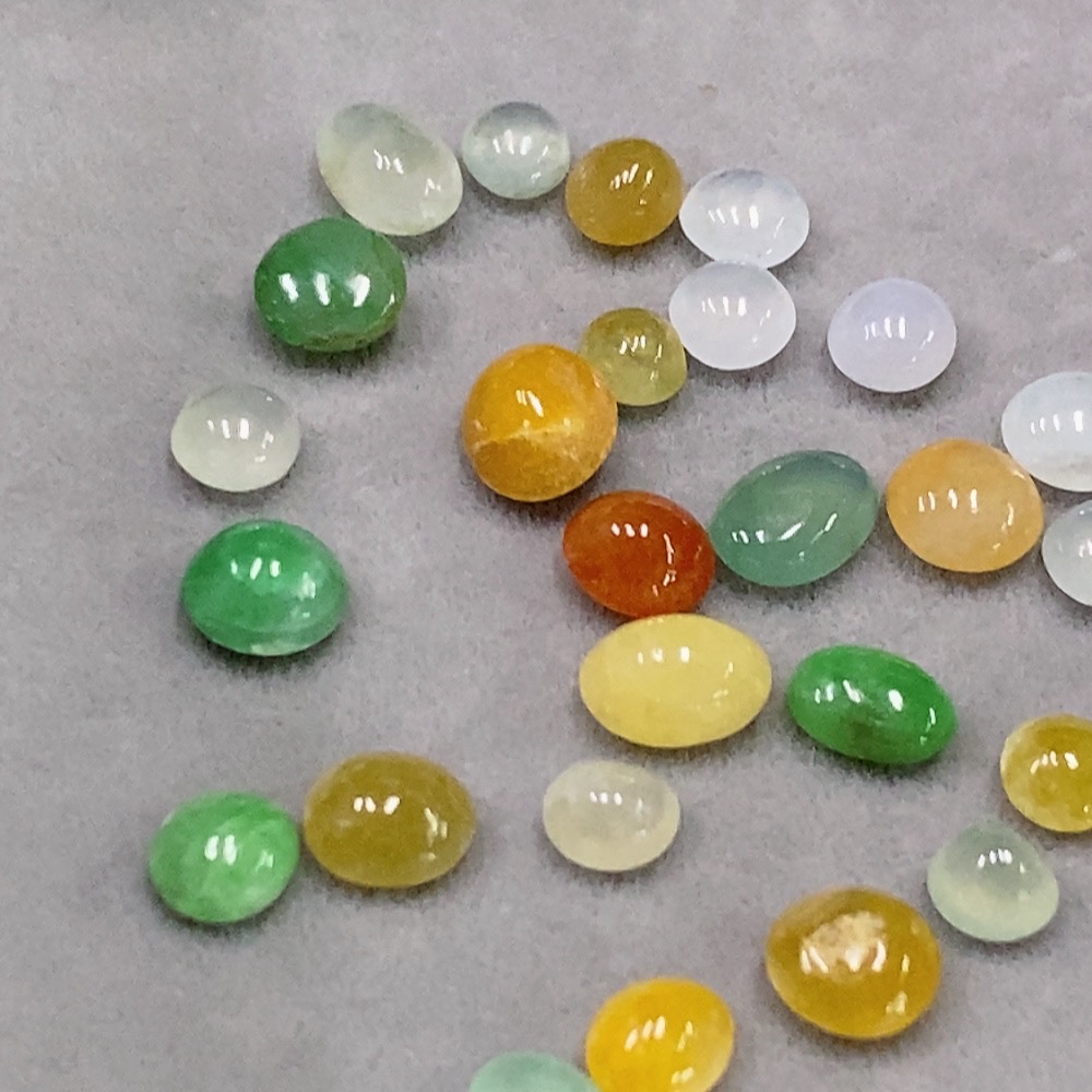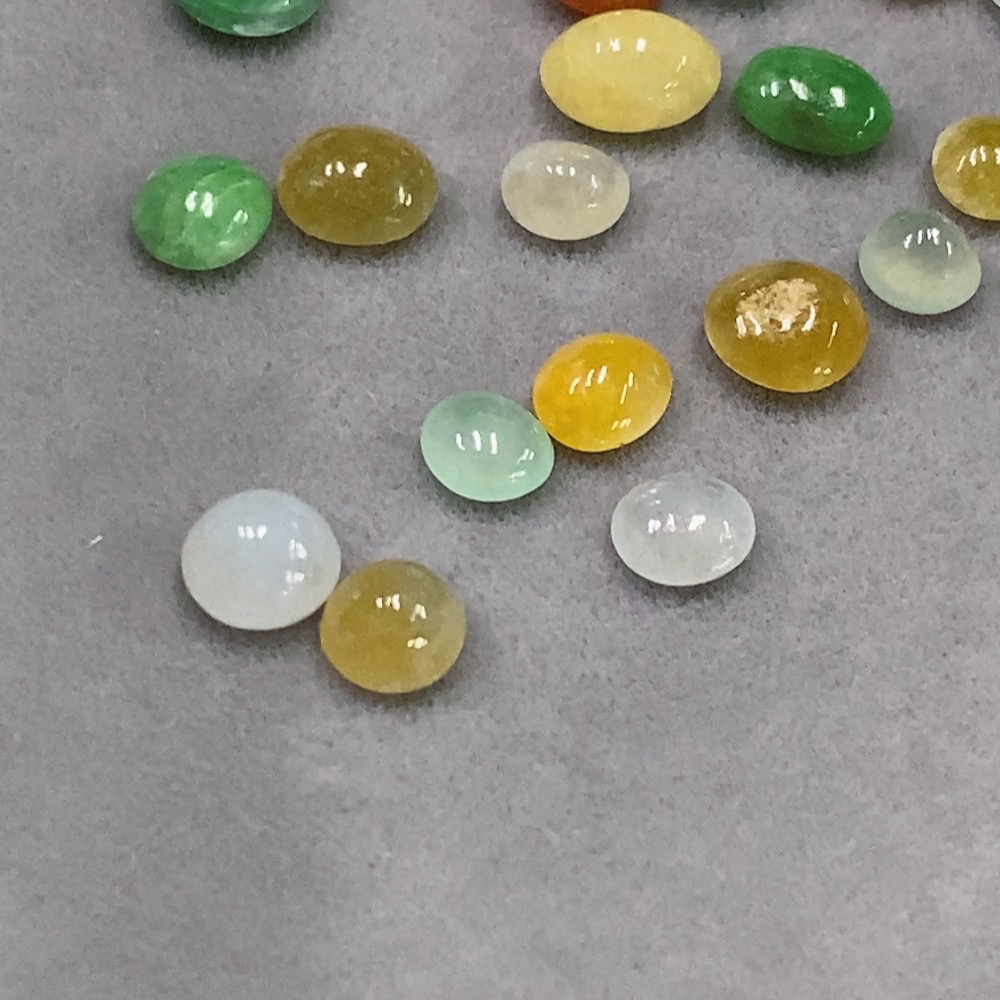 Jadeite Cabochons Sell as a Lot Yellow Part Color Origin Undetermined
