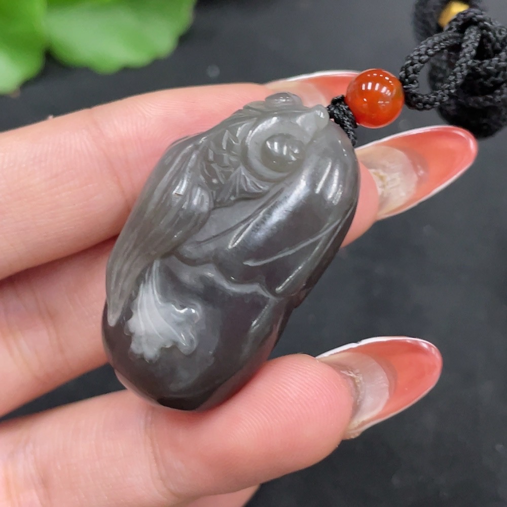 Hetian Jade Pendant - Abundance Every Year - Contains Other Mineral Components - Total Weight (Including Rope): Approximately 23.8g