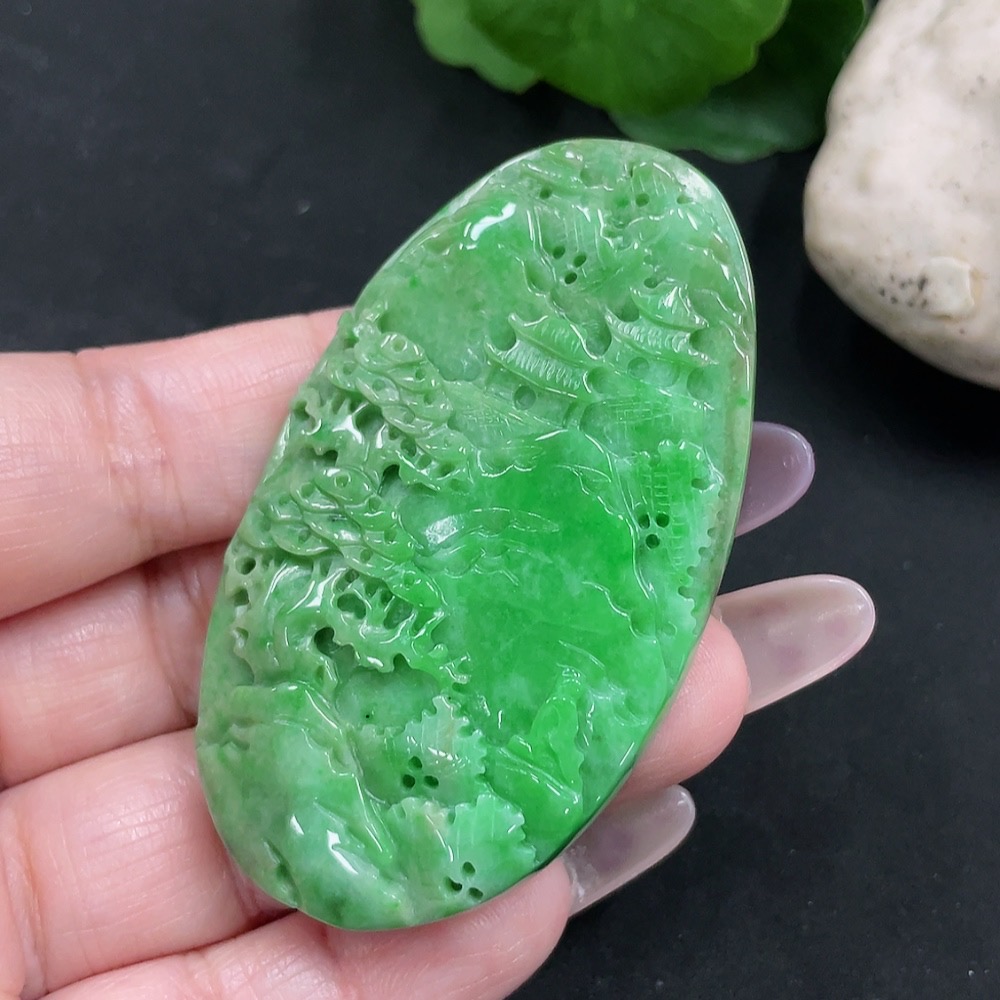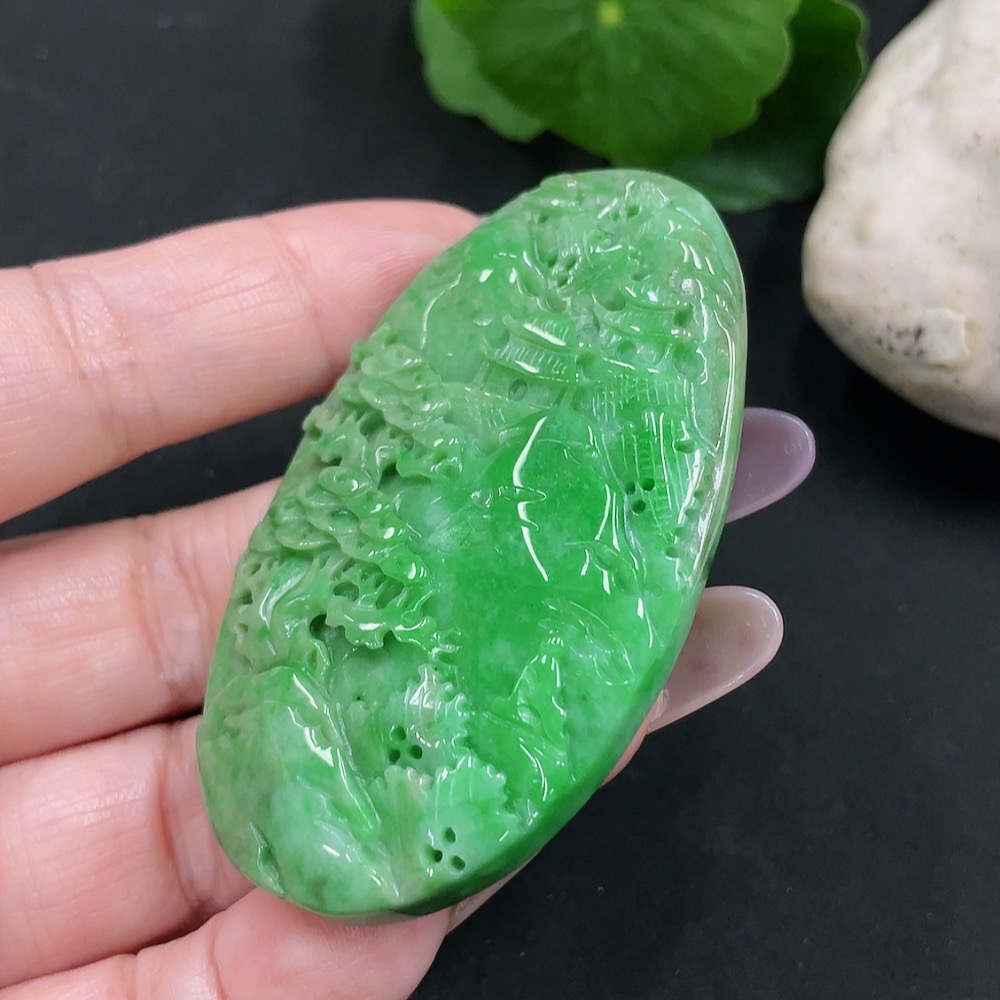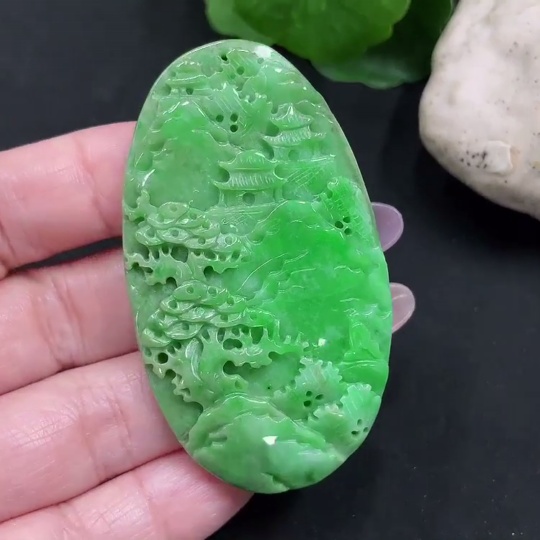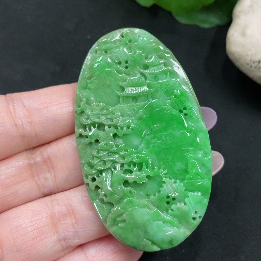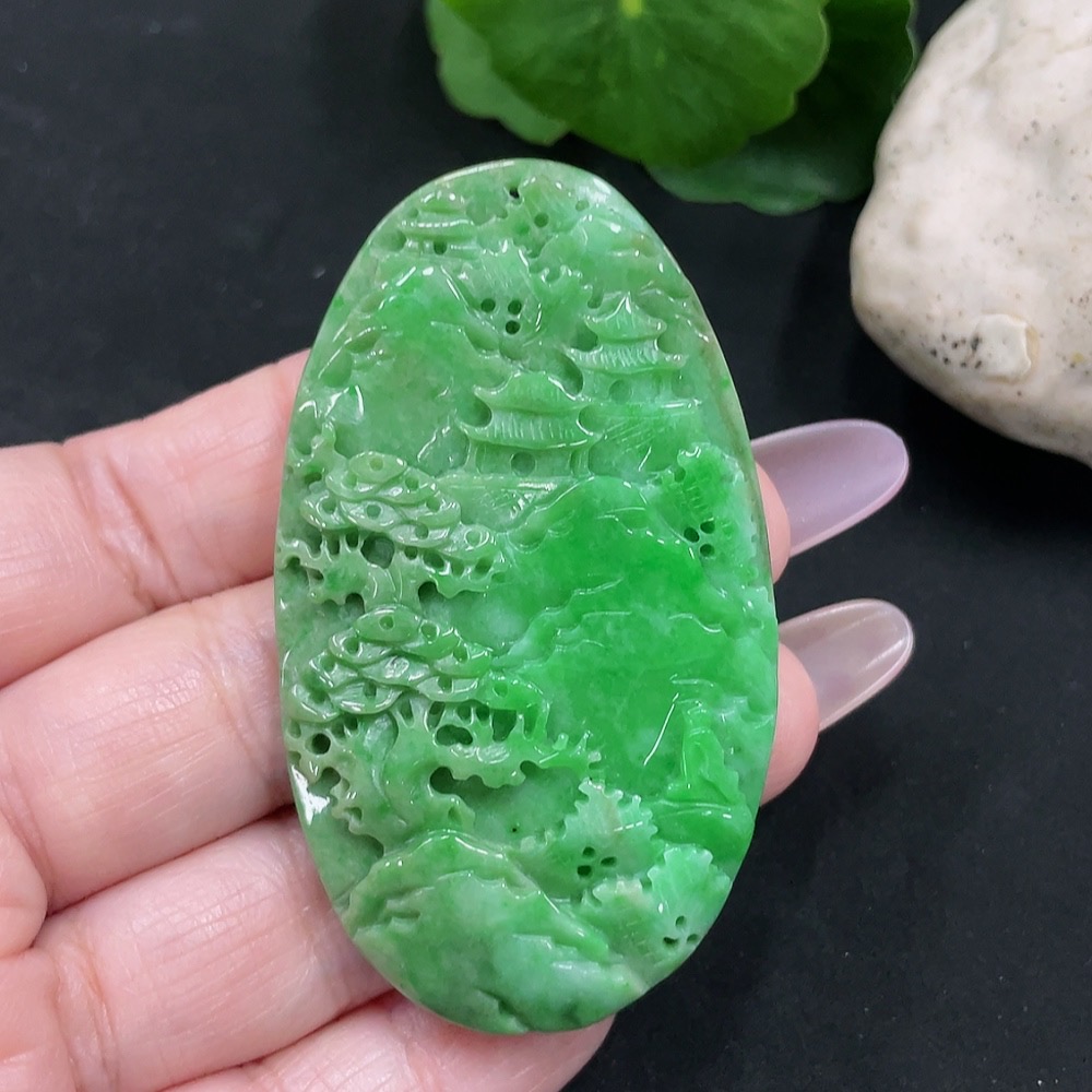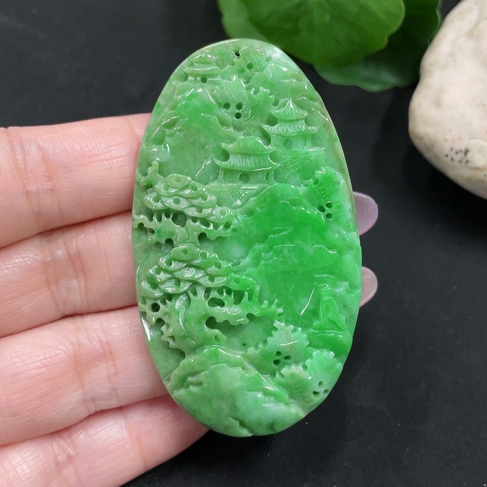 Jadeite Landscape Pendant Total Weight Approx. 31.2g