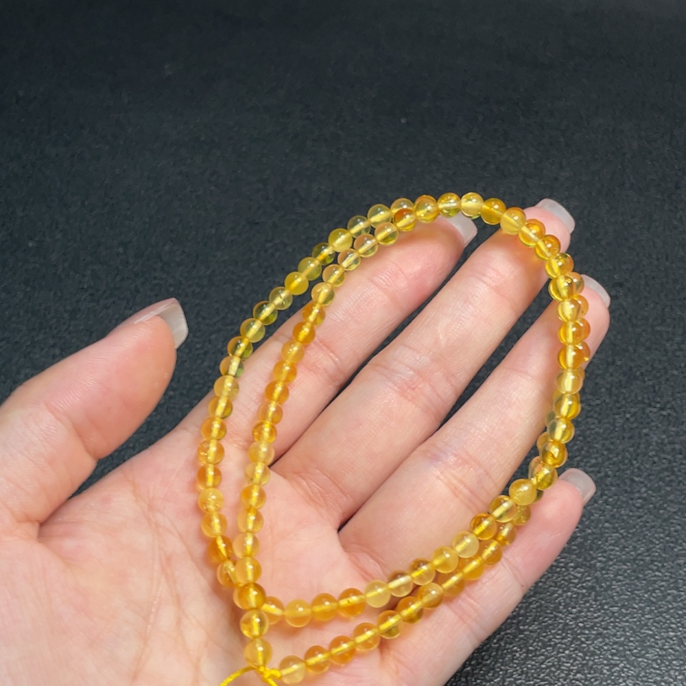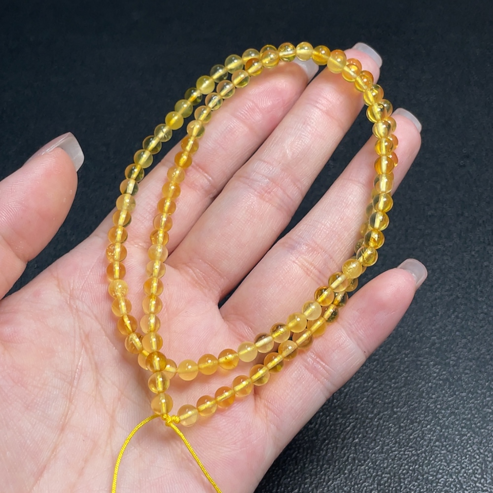 Amber Beeswax Bead Necklace, Total Weight Approx. 5.65g, Size About 4.6mm