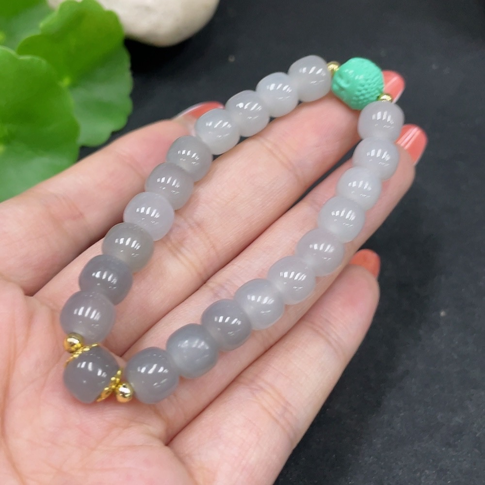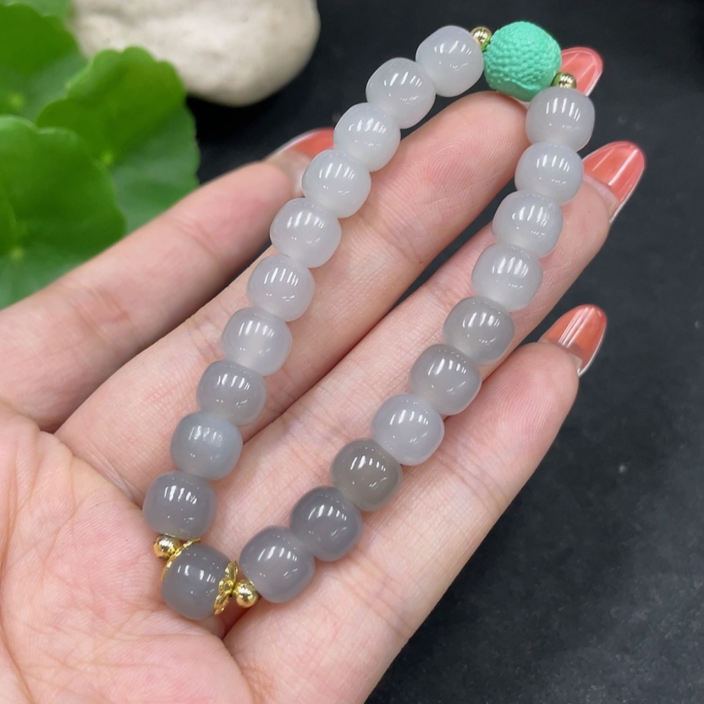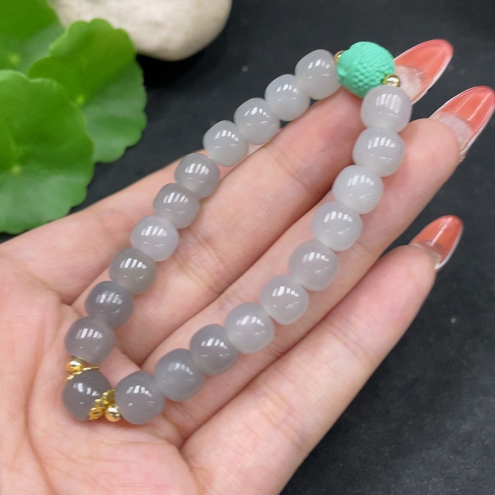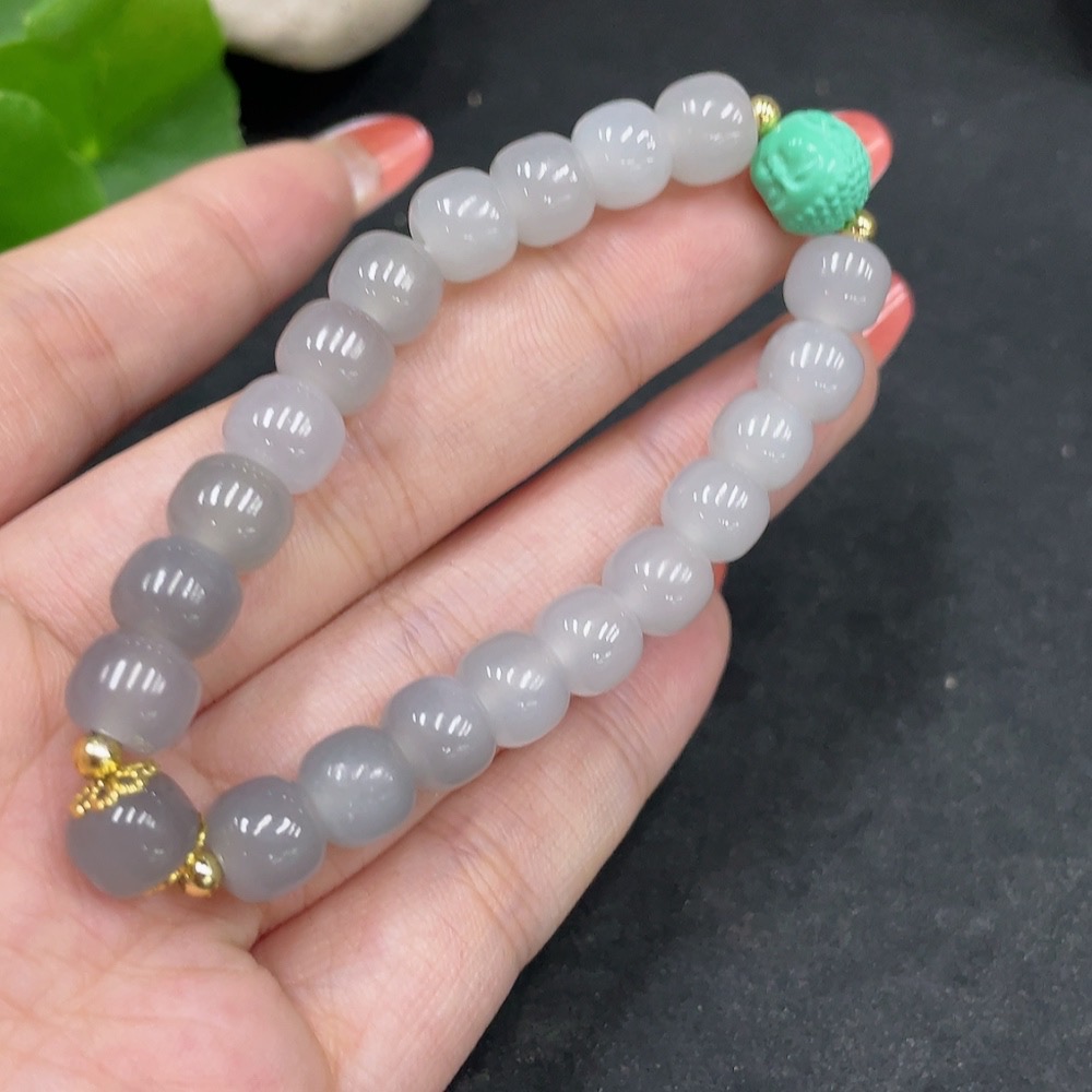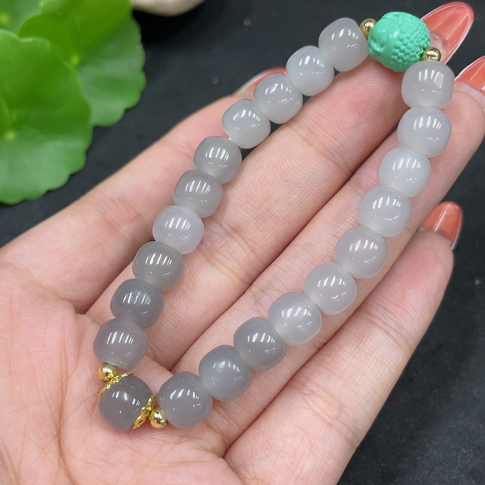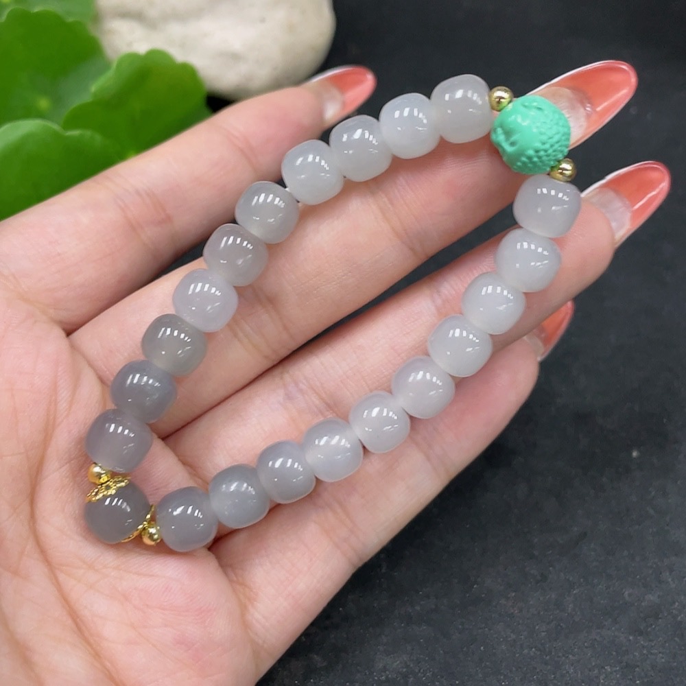 Hetian Jade Bracelet, approx. 8mm, total weight approx. 18.1g, with non-Hetian Jade beads, non-gold