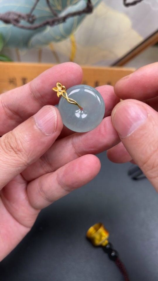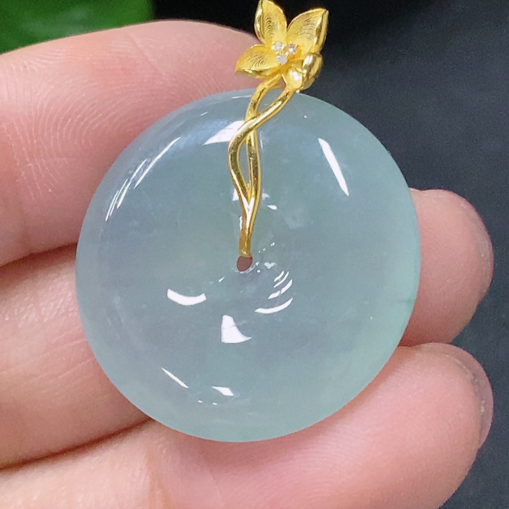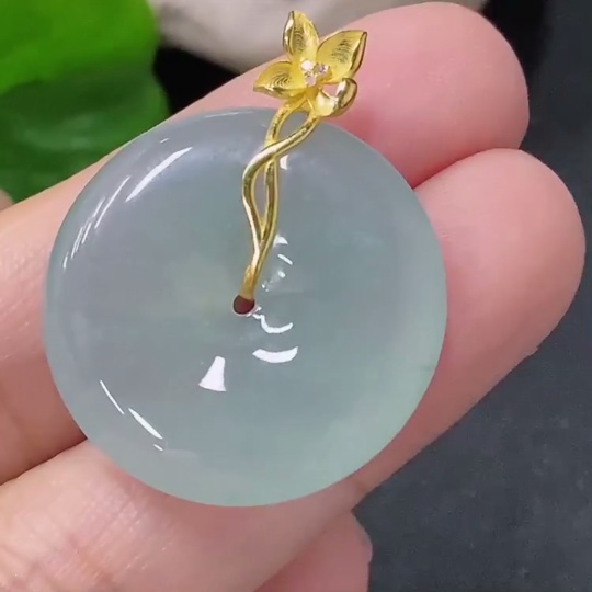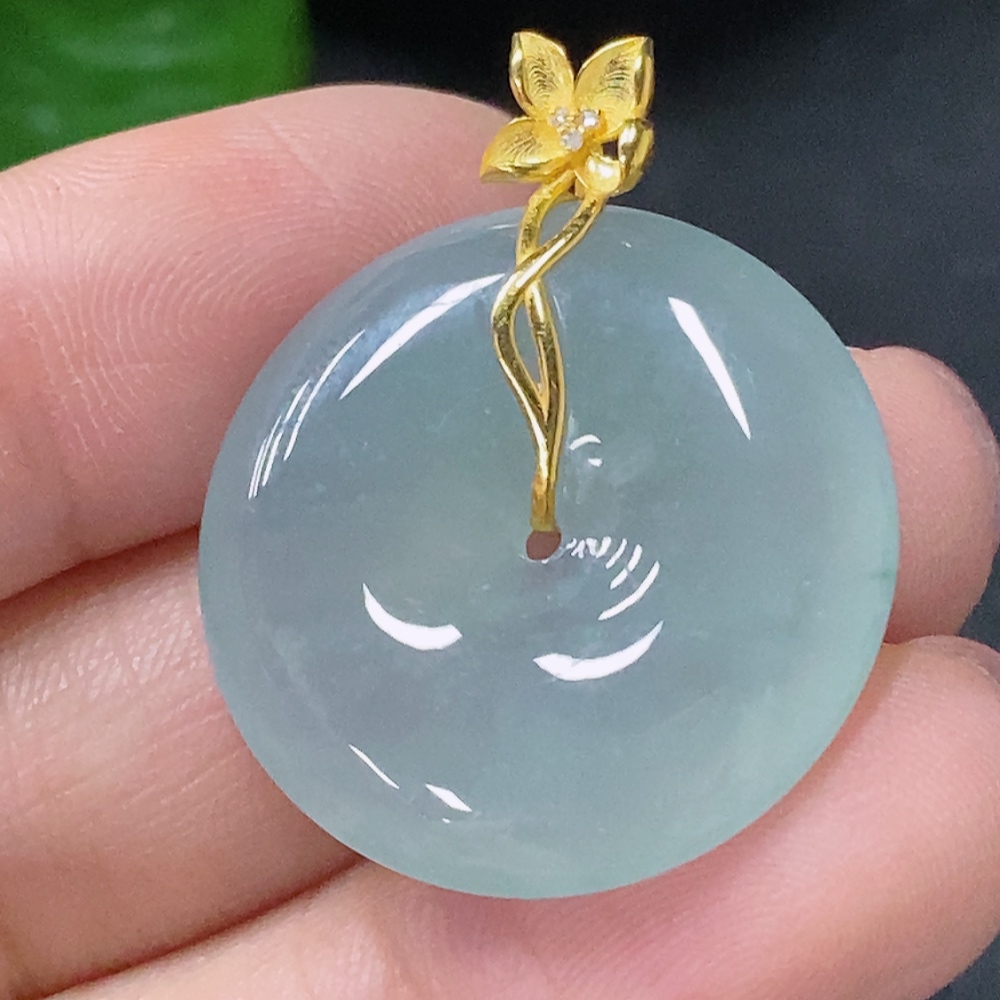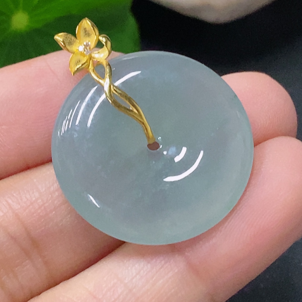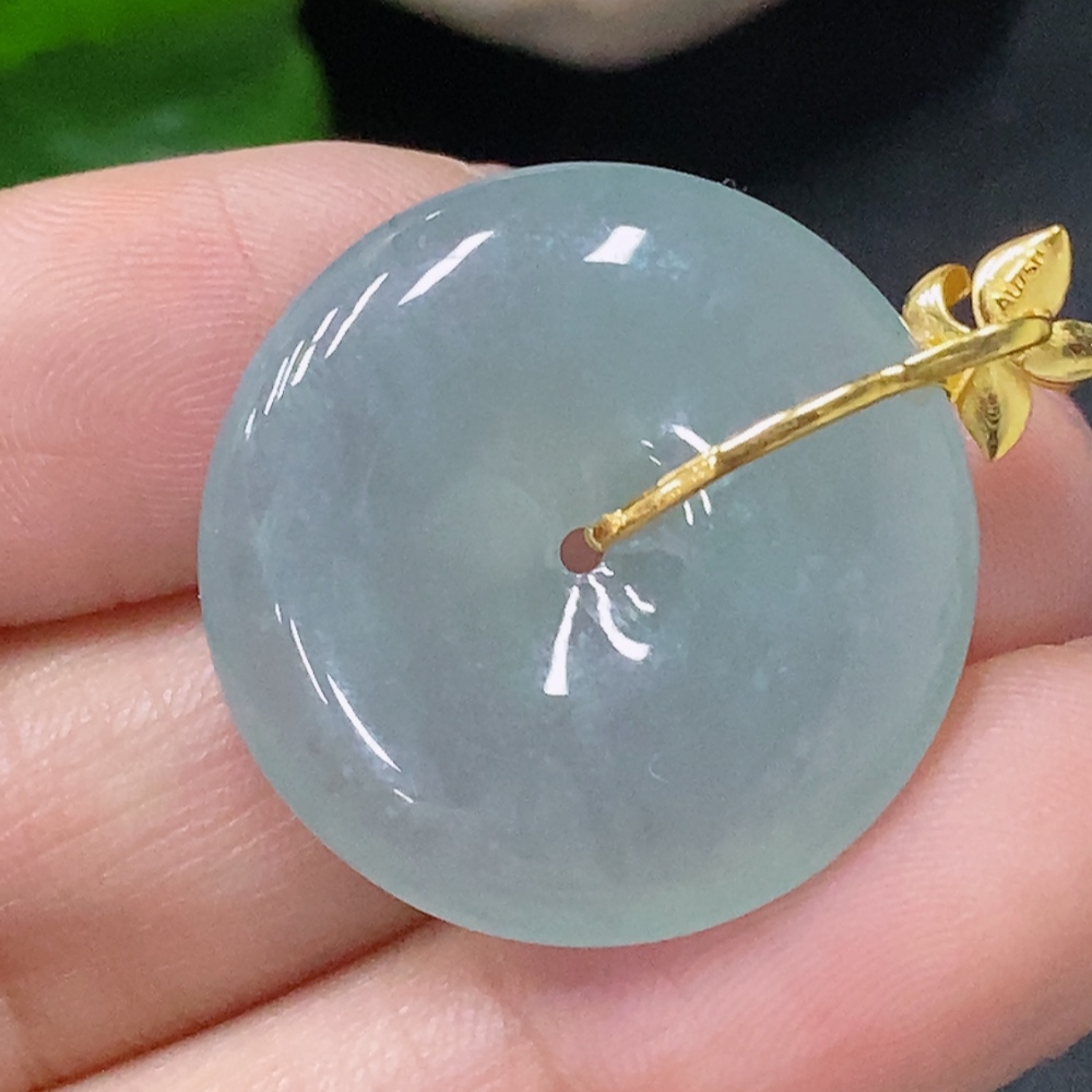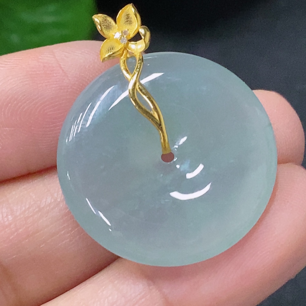 Jadeite Pendant Peace Knot with 18K Gold and Diamond Accents, Total Weight Approx. 6.05g