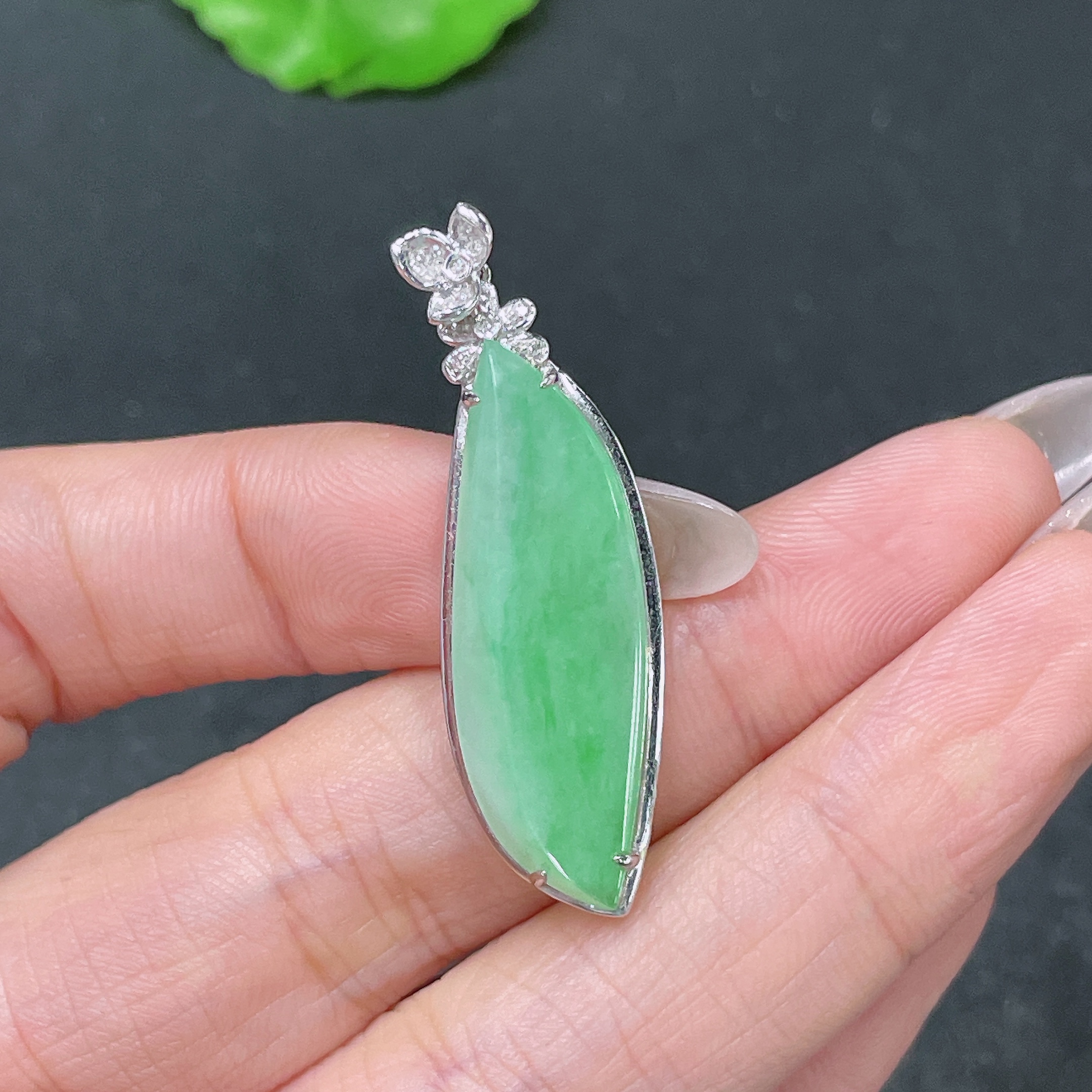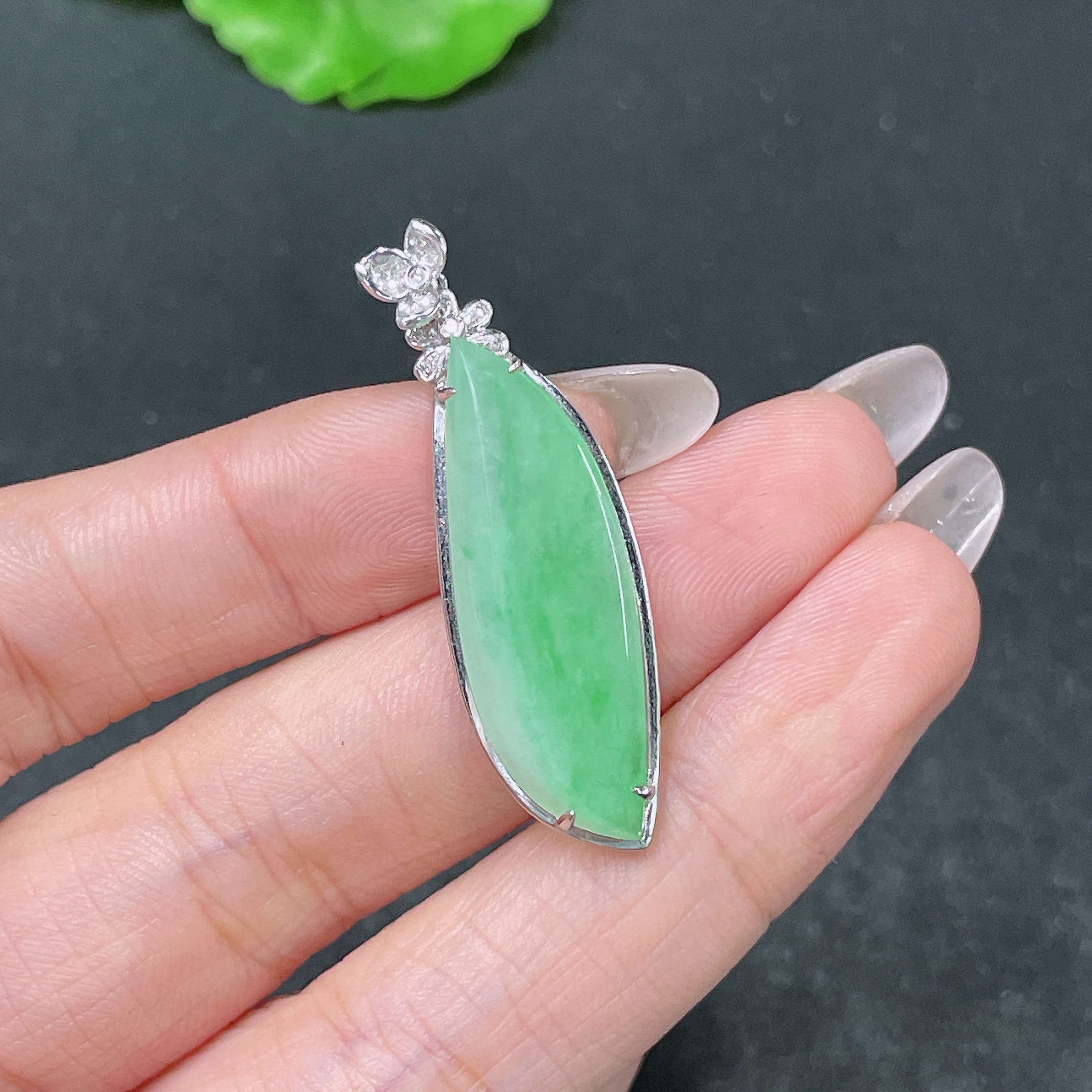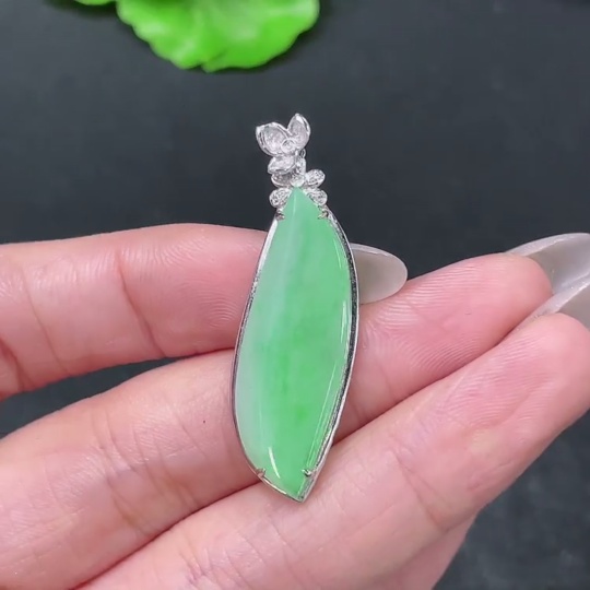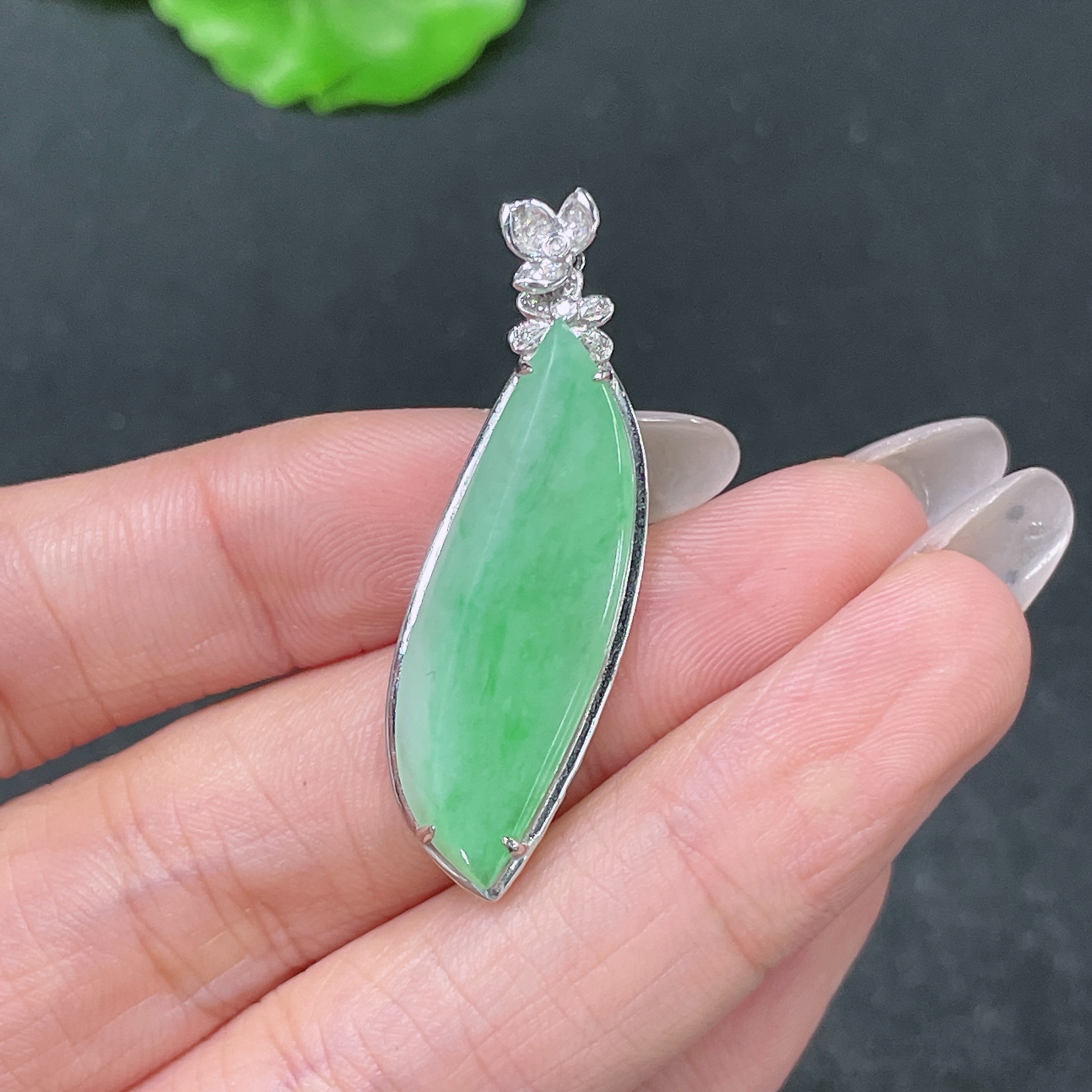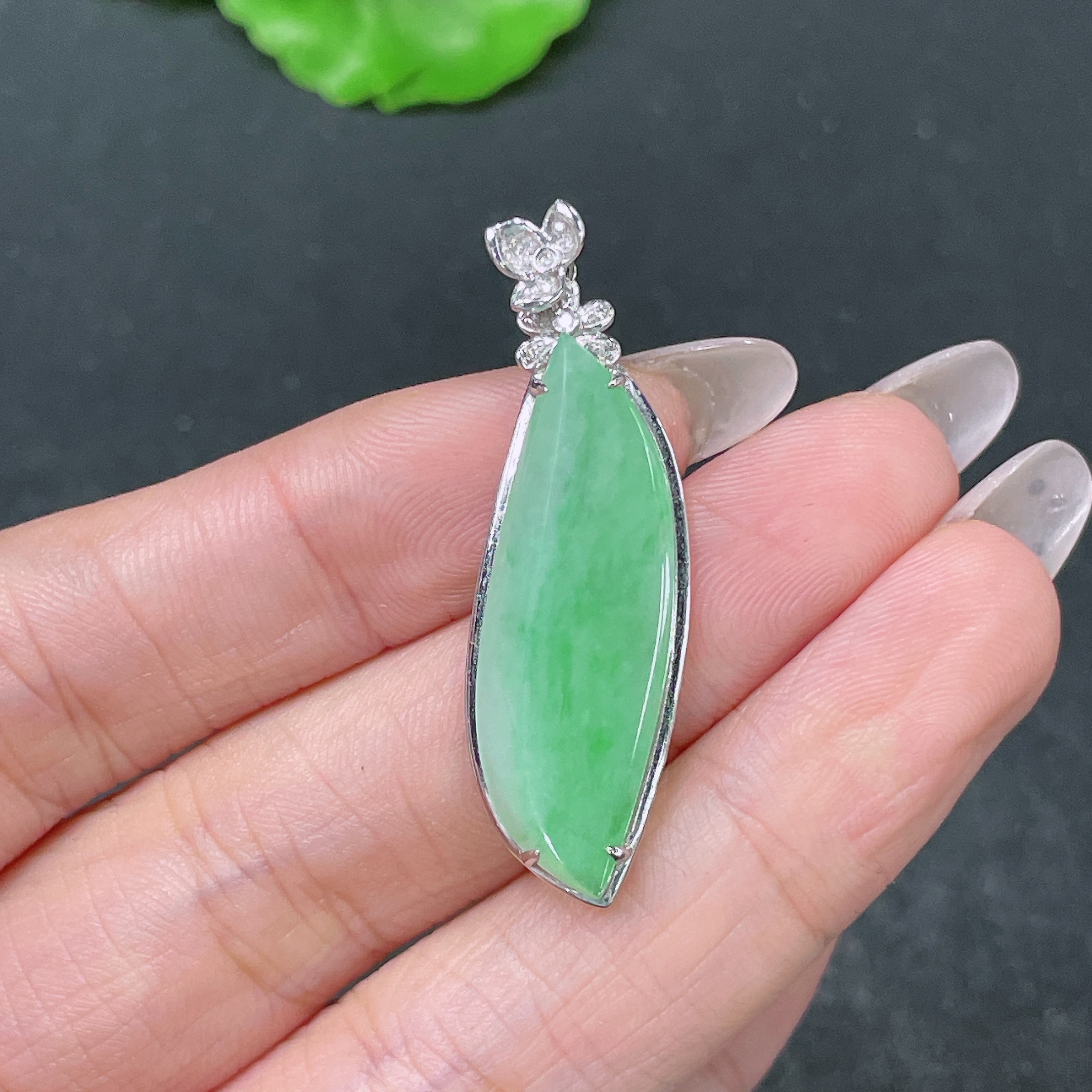 Jadeite Pendant Fu Gua 18K Gold Set with Diamonds Total Weight Approx. 3.7g