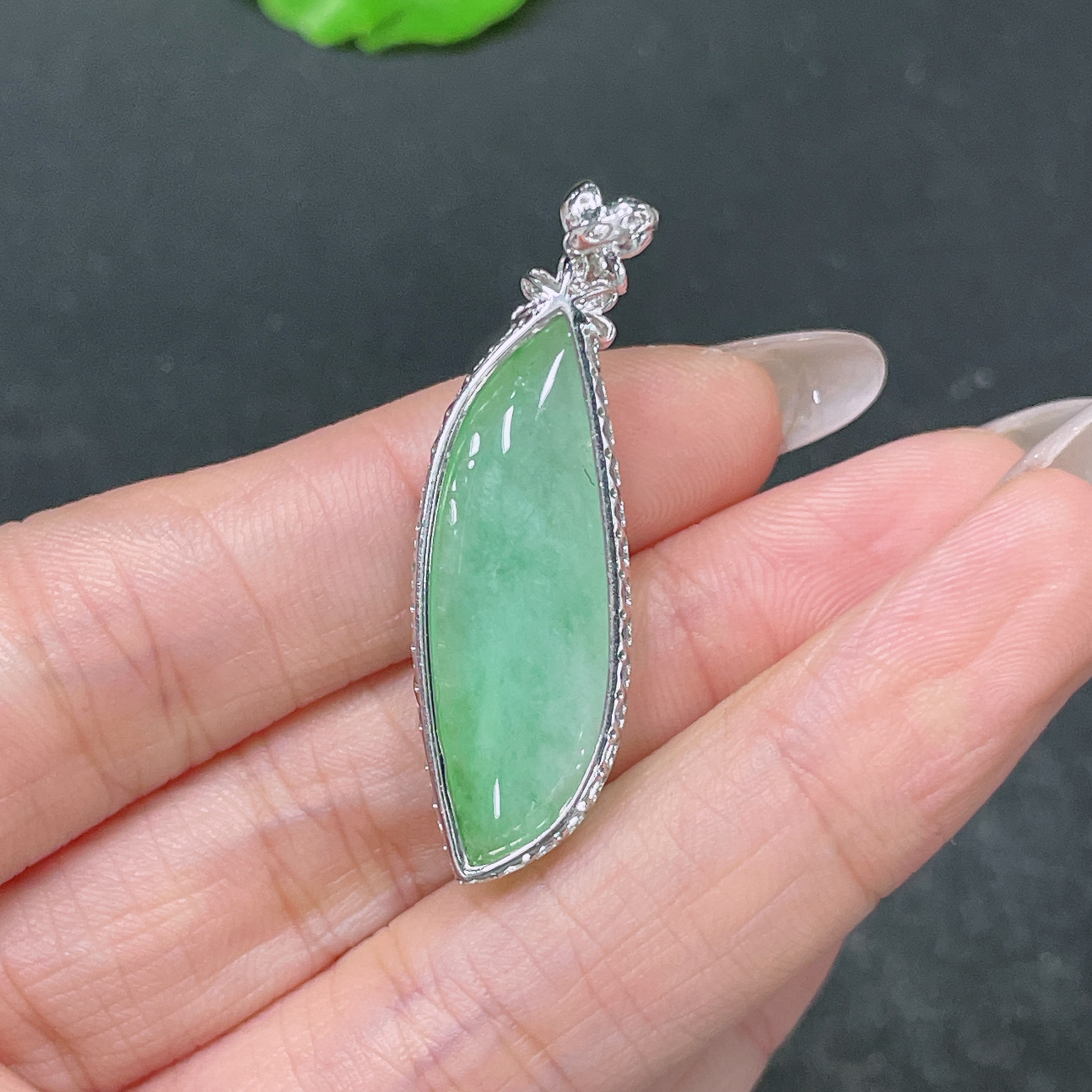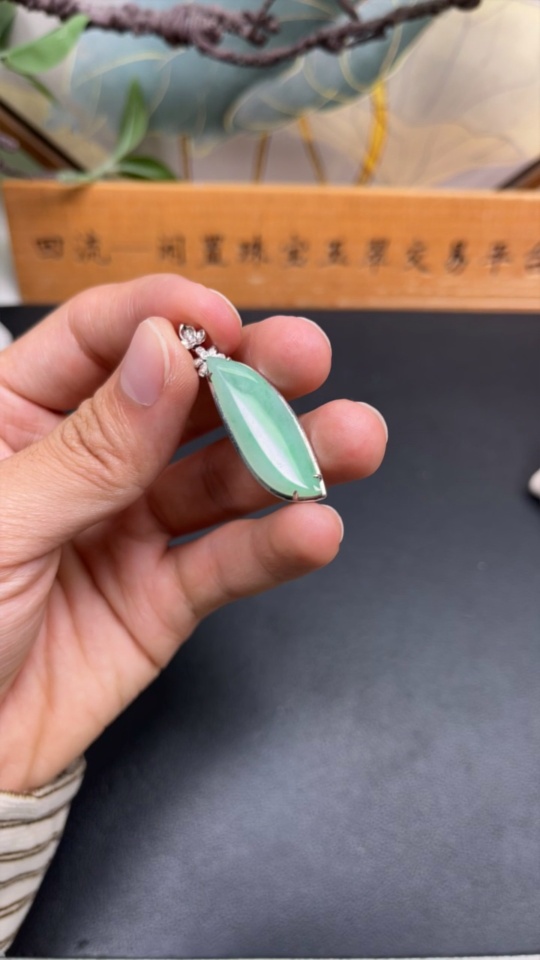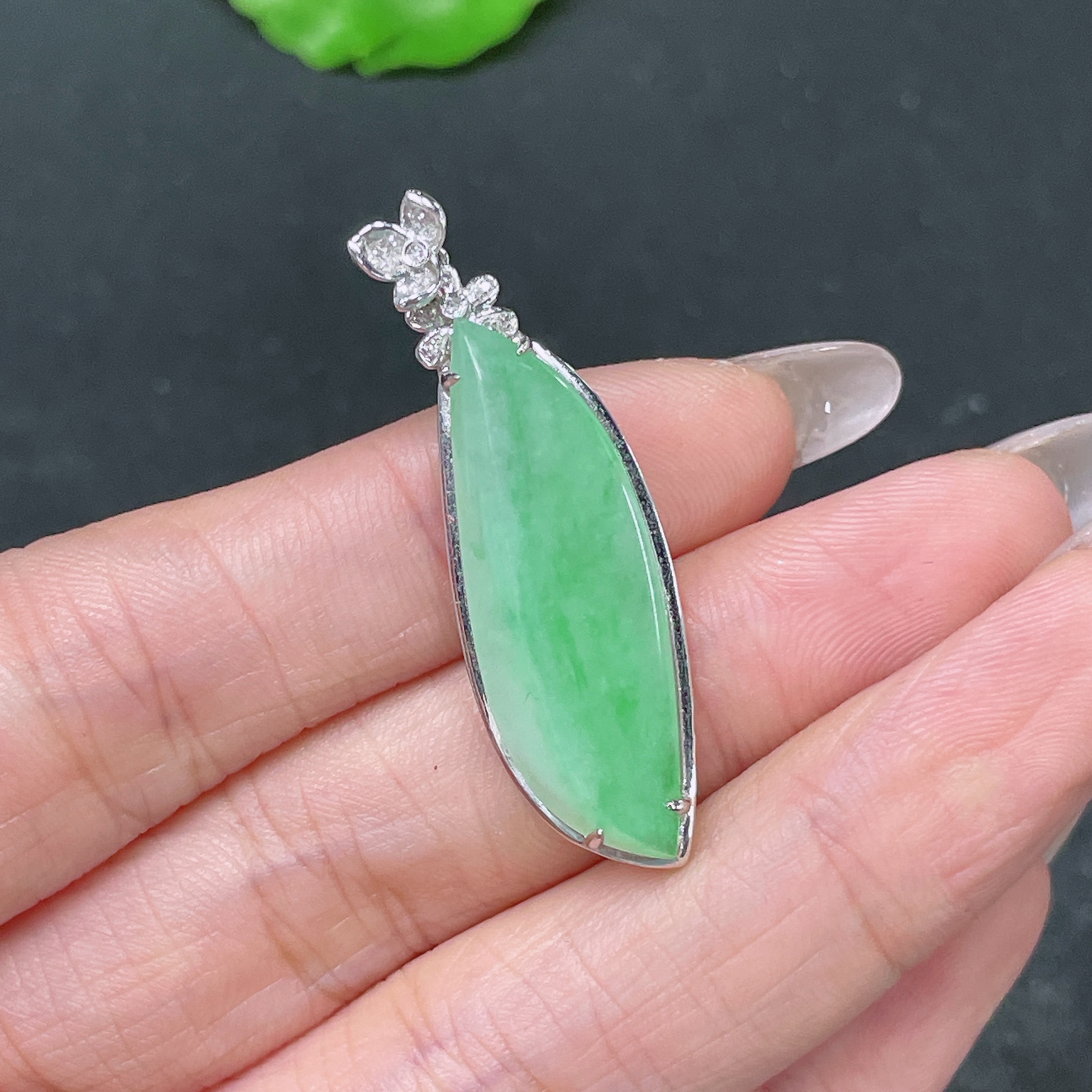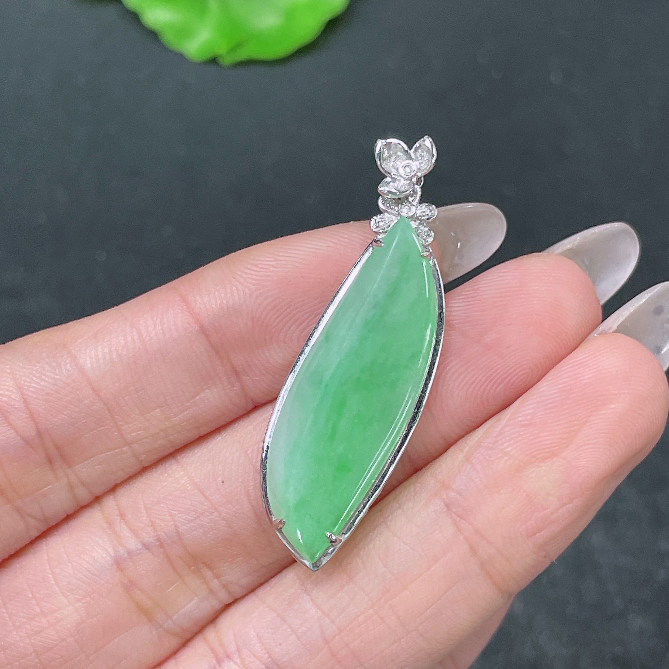 Jadeite Pendant Fu Gua 18K Gold Set with Diamonds Total Weight Approx. 3.7g