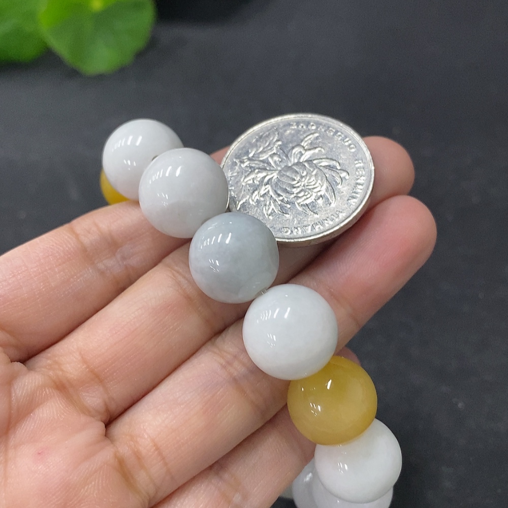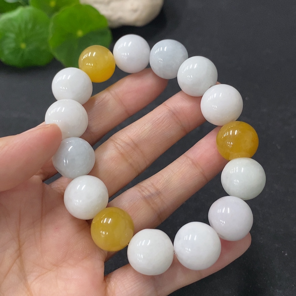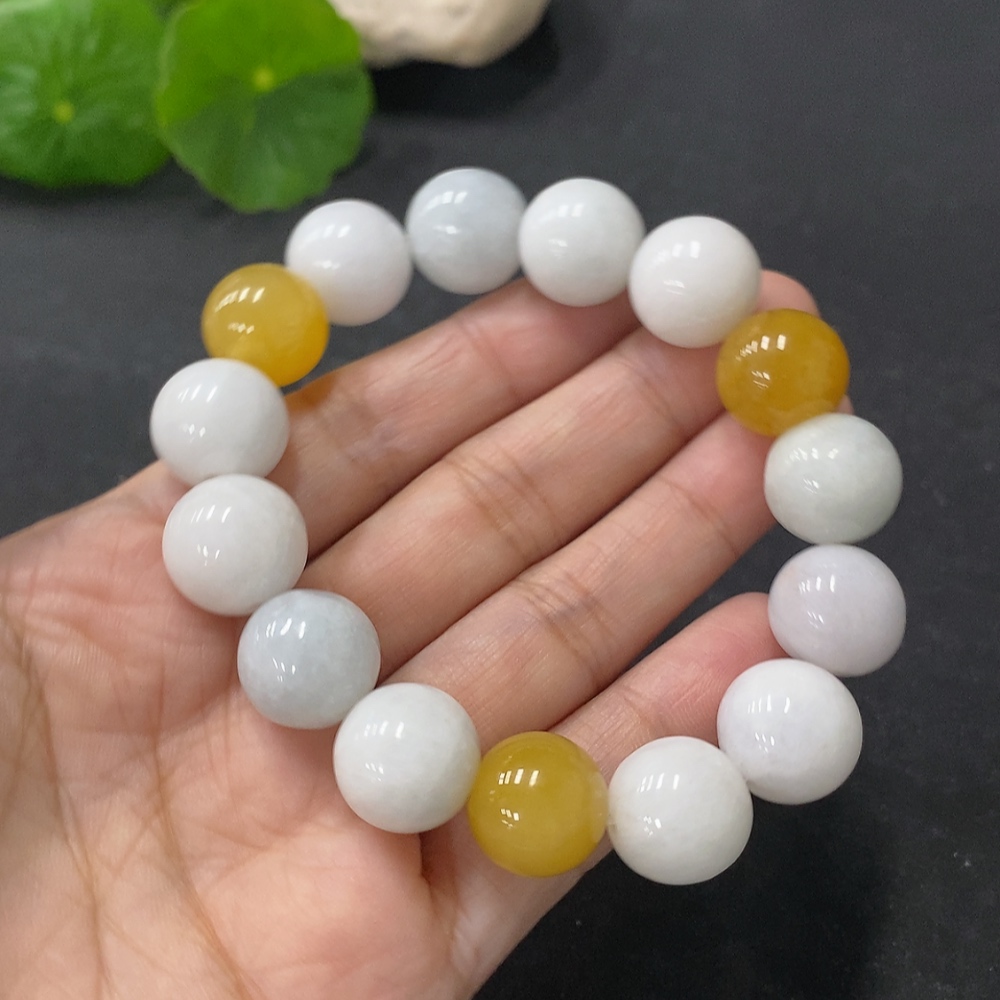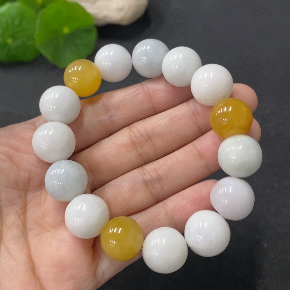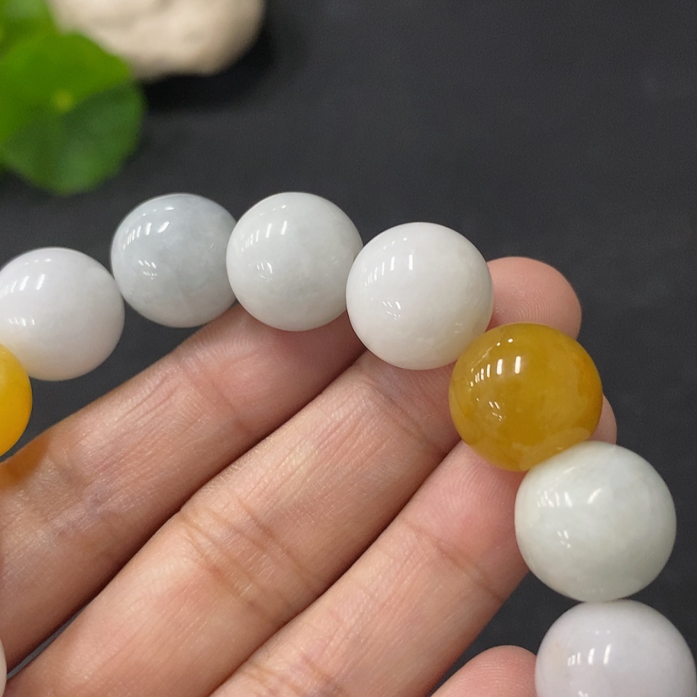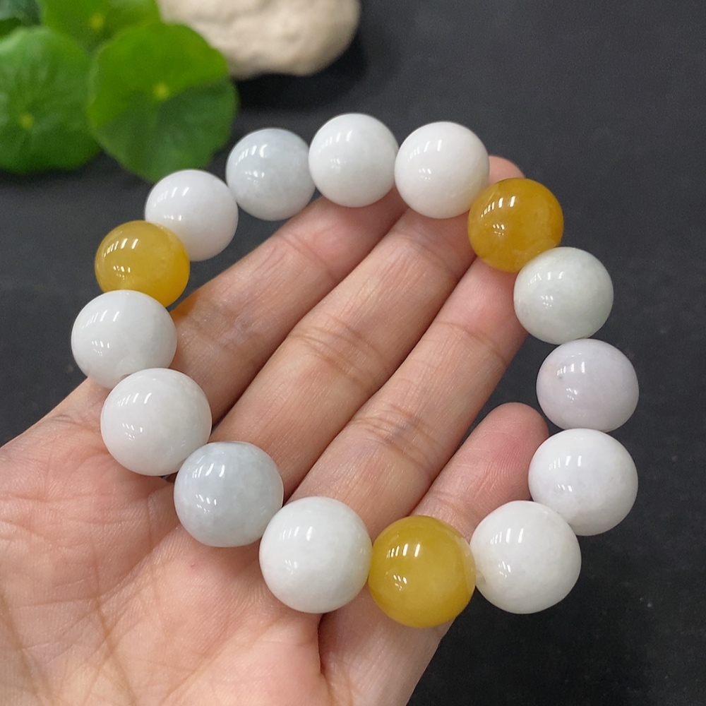 Jadeite Bracelet Approx.13.5mm Total Weight Approx.57.37g Yellow Bead Non-A