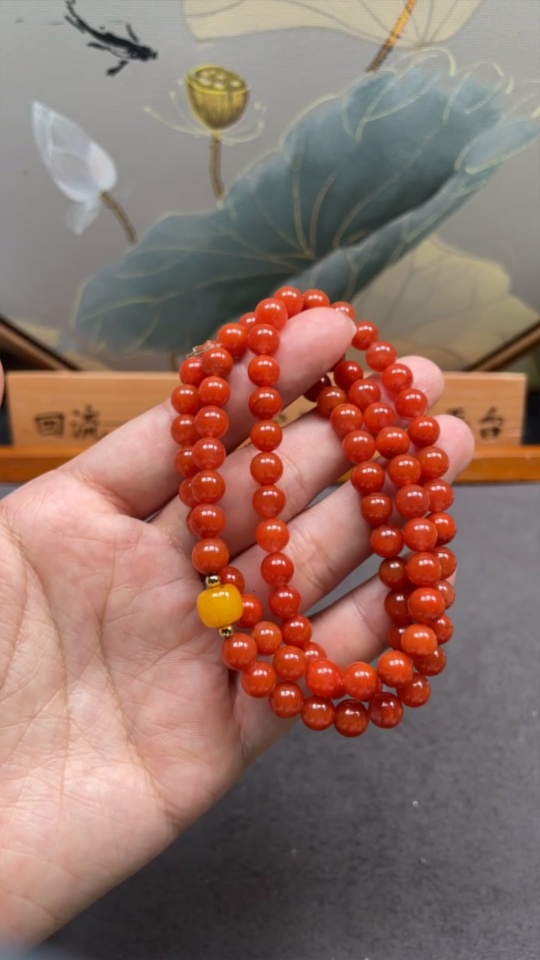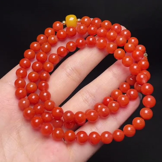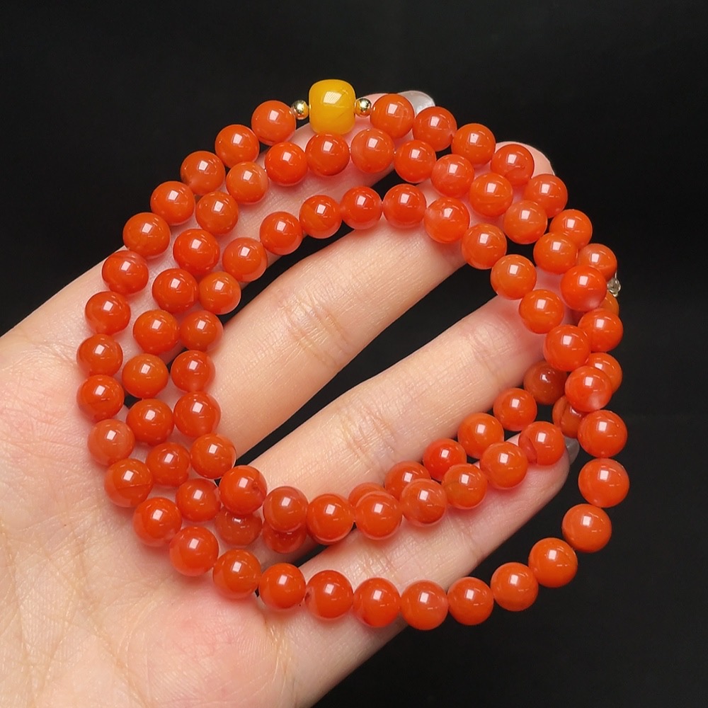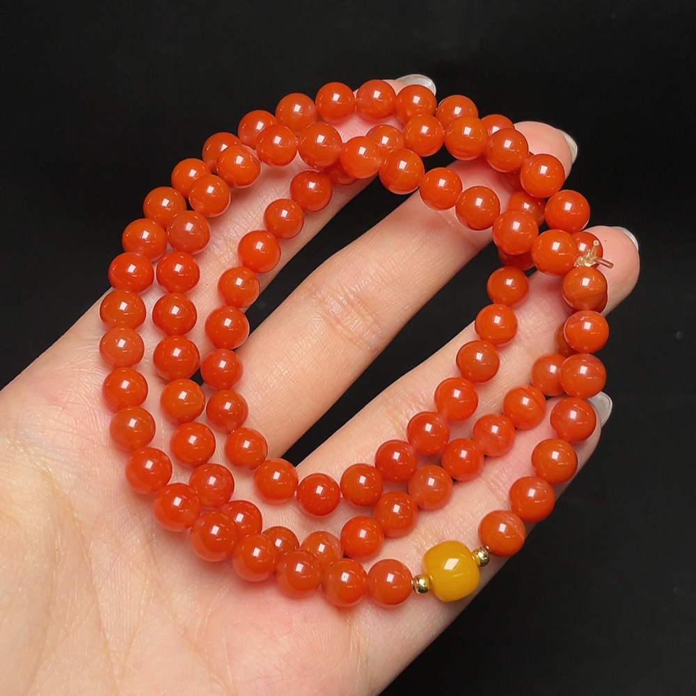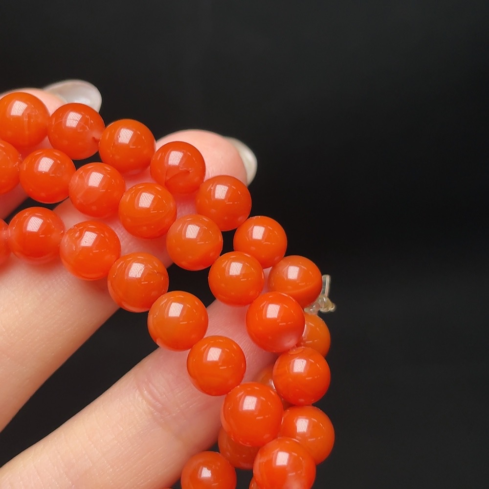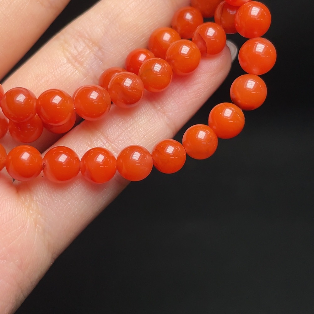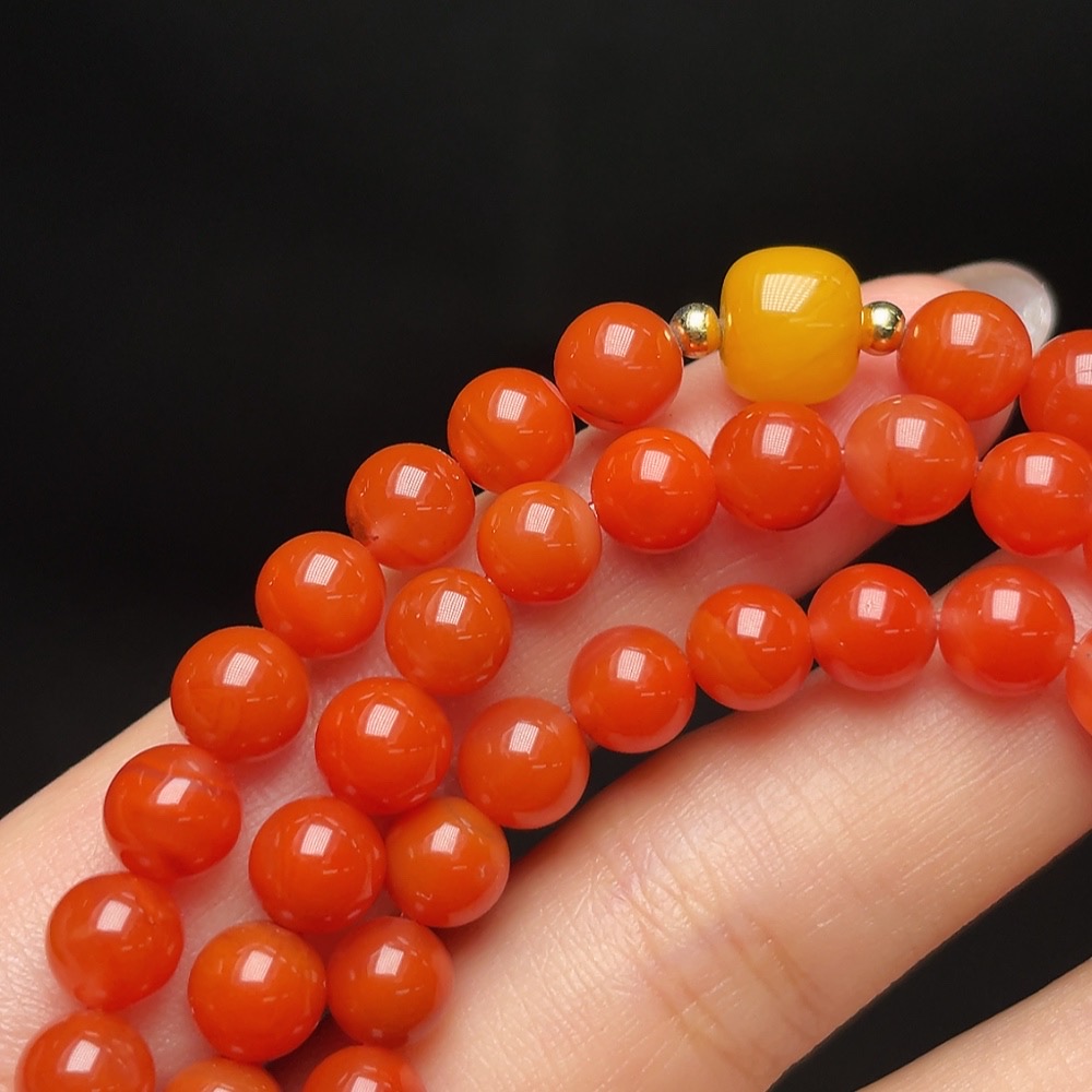Red Agate Bead Necklace with Amber (Visible Organic Inclusions), Non-Gold, Total Weight Approx. 36.2g, Bead Size ~6.6mm