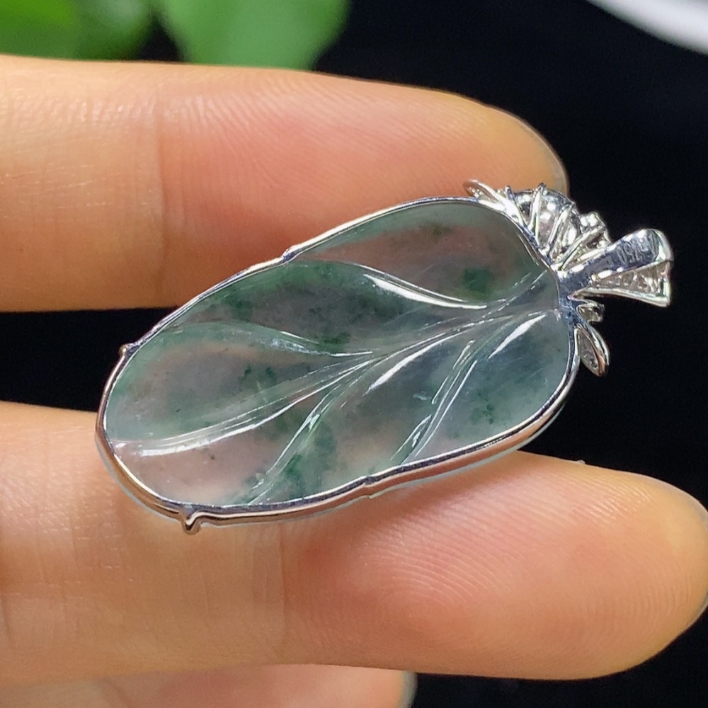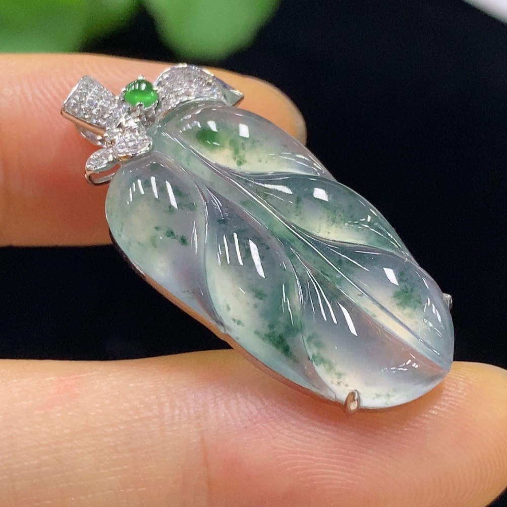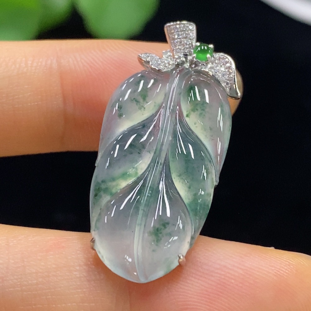 Jadeite Leaf Pendant with 18k Gold and Diamond Accents, Total Weight Approximately 4.77g