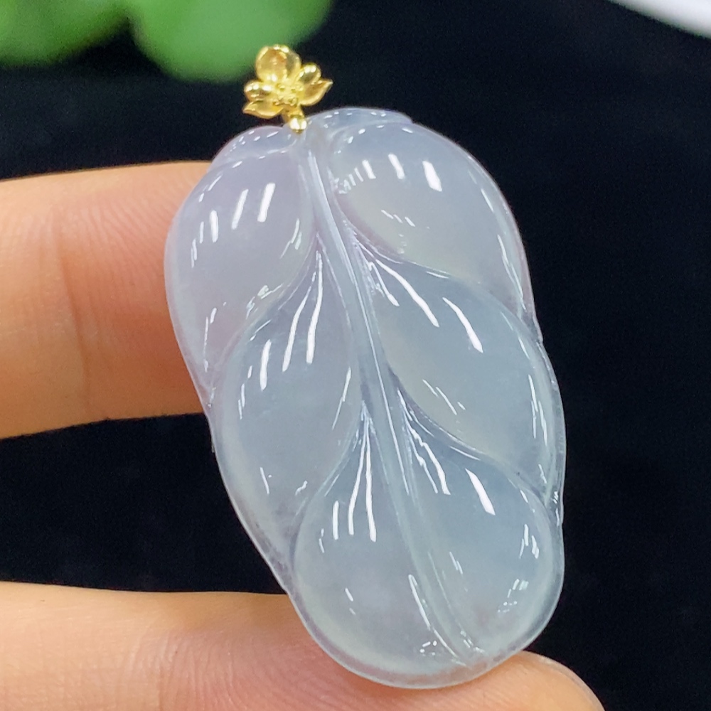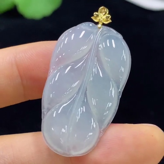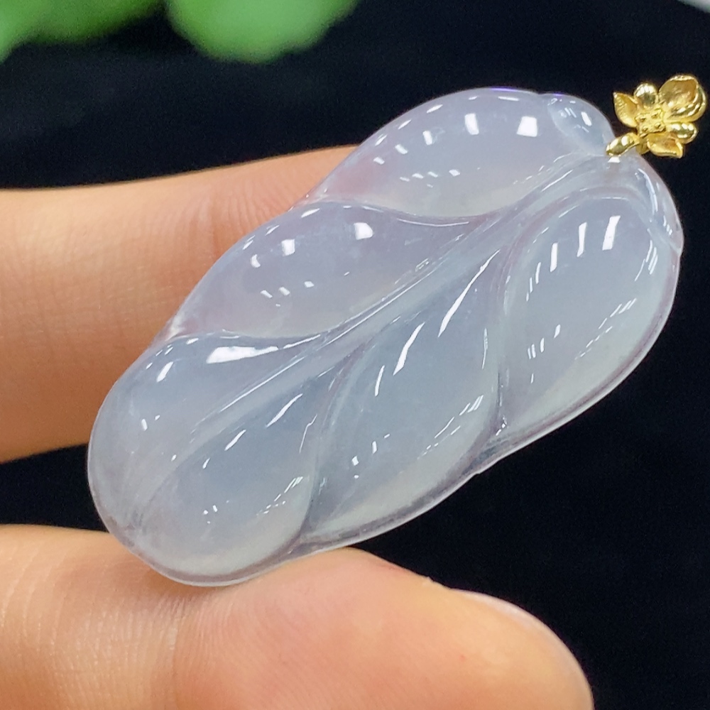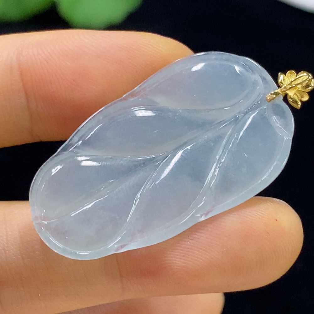 Jadeite Pendant Leaf with 18k Bail Total Weight Approx. 4.91g